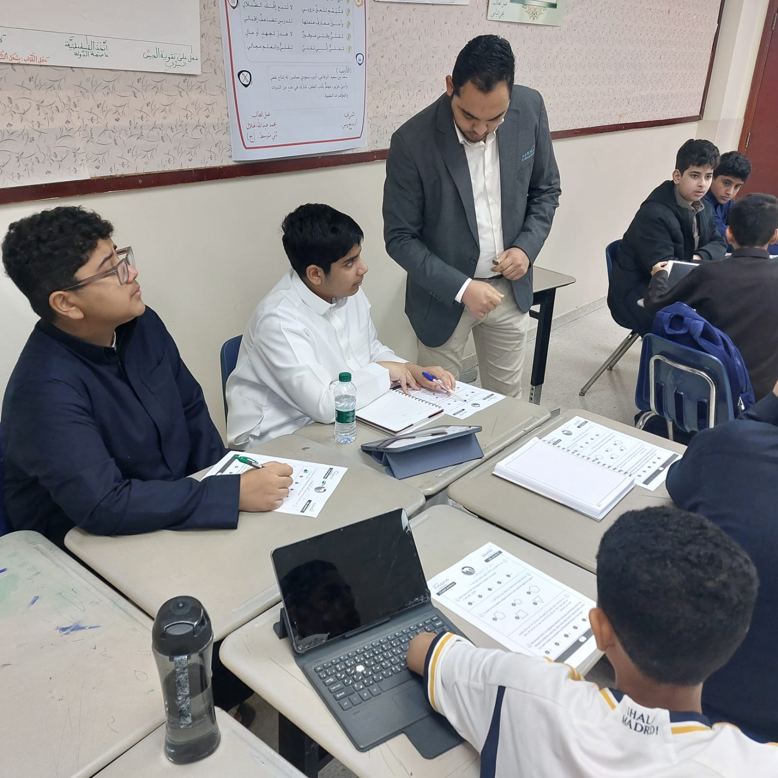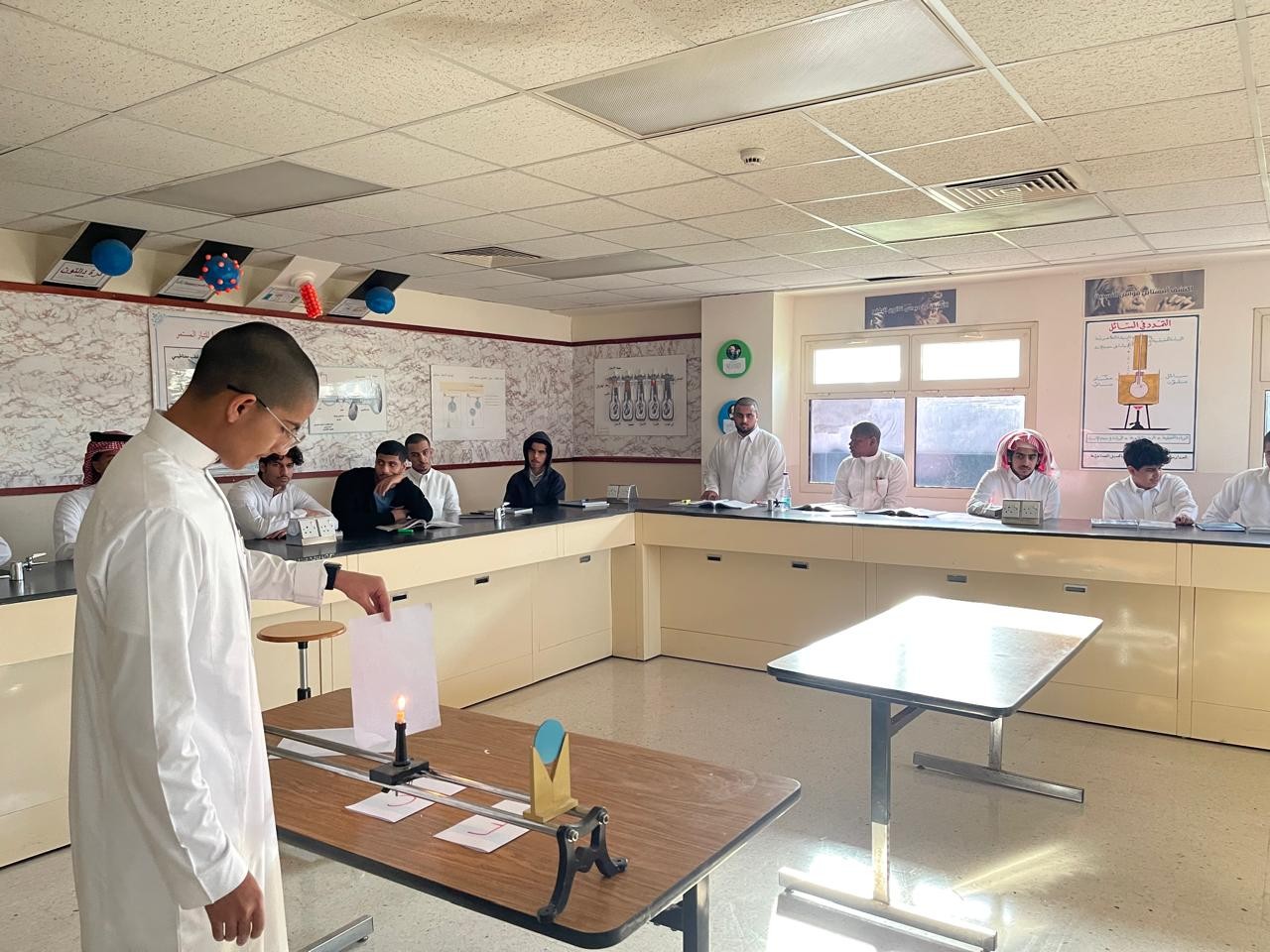 طلابنا يكتشفون بعض خواص العناصر مع أ. حمدي تحيف مشرف النشاط العلمي بالمرحلة المتوسطة