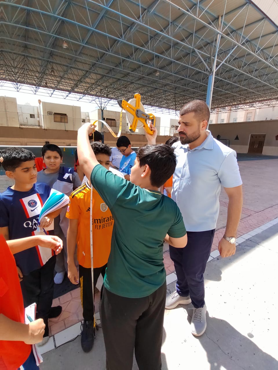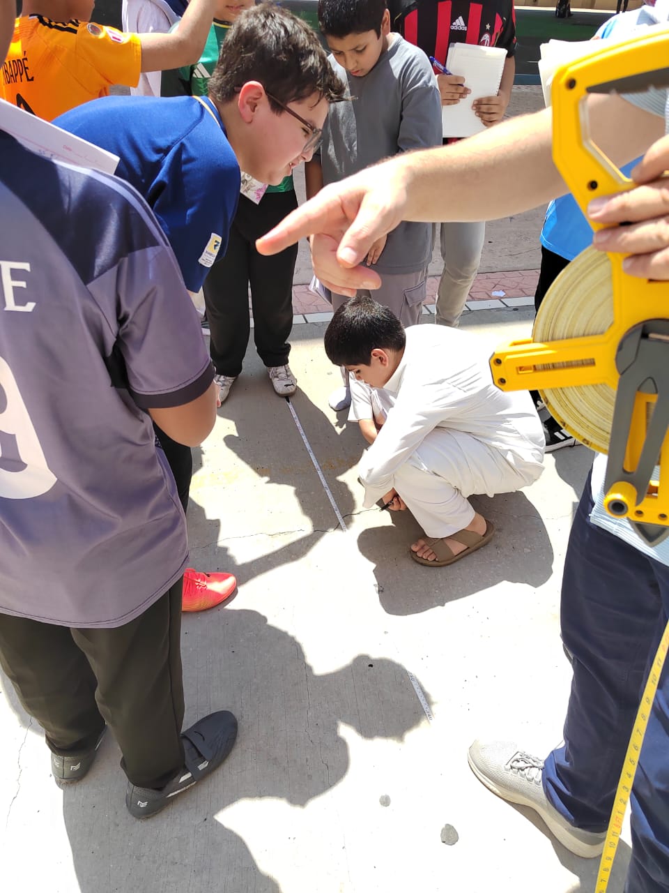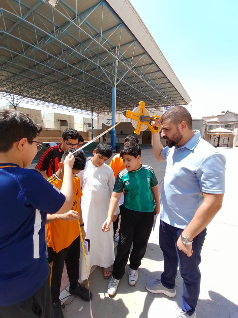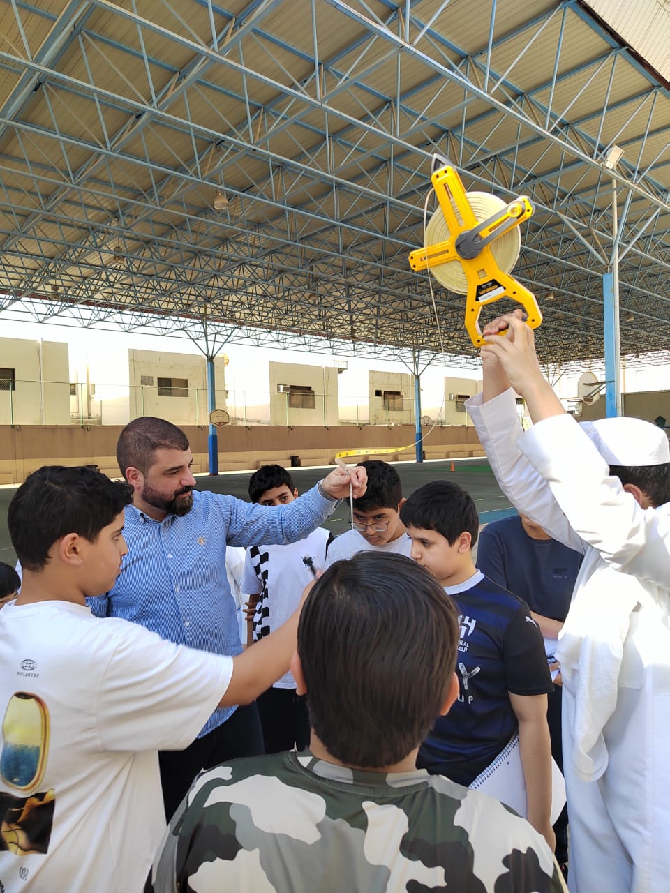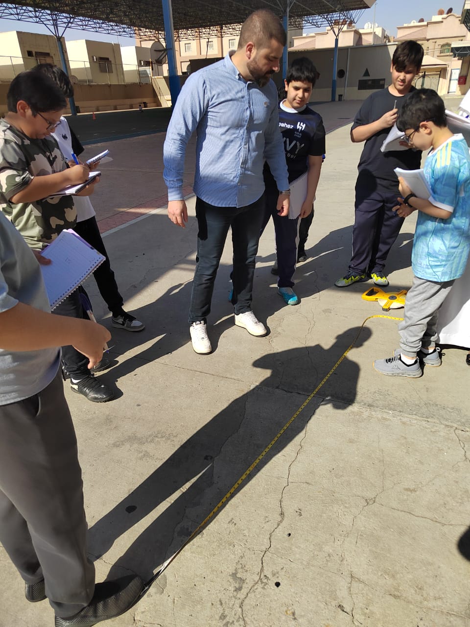 تجربة القياس غير المباشر ضمن تجارب مادة العلوم للمرحلة المتوسطة أقيمت تجربة القياس غير المباشر ، حيث قام الطلاب بإجراء عملية قياس غير مباشرة بالإعتماد على الظل ، وتهدف التجربة إلى إيجاد طول اي شيء لا نستطيع إيجاد طوله بالقياس المباشر .