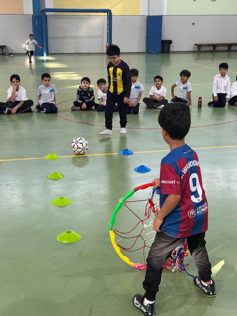 تحسين اللياقة البدنية أقام قسم التربية البدنية بابتدائية الحصان بالجبيل الصناعية نشاطاً رياضياً للصفوف الأولية يهدف إلى تحسين اللياقة البدنية والمهارية بكرة القدم من خلال الألعاب الجماعية باستخدام الأدوات الرياضية