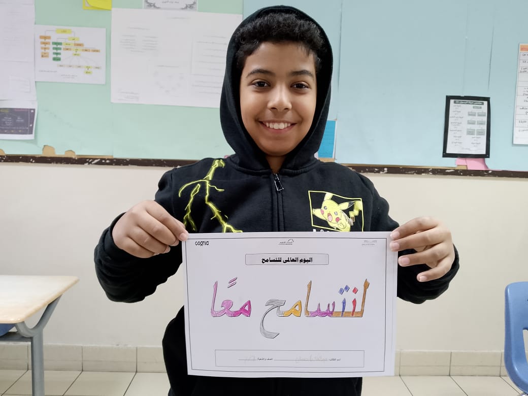 اليوم العالمي للتسامح احتفاء مجمع الحصان التعليمي بنين - الدمام باليوم العالمي للتسامح والذي يهدف إلى نشر ثقافة التسامح والاحترام المتبادل و تشجيع الحوار وغرس القيم الأخلاقية بين الطلاب