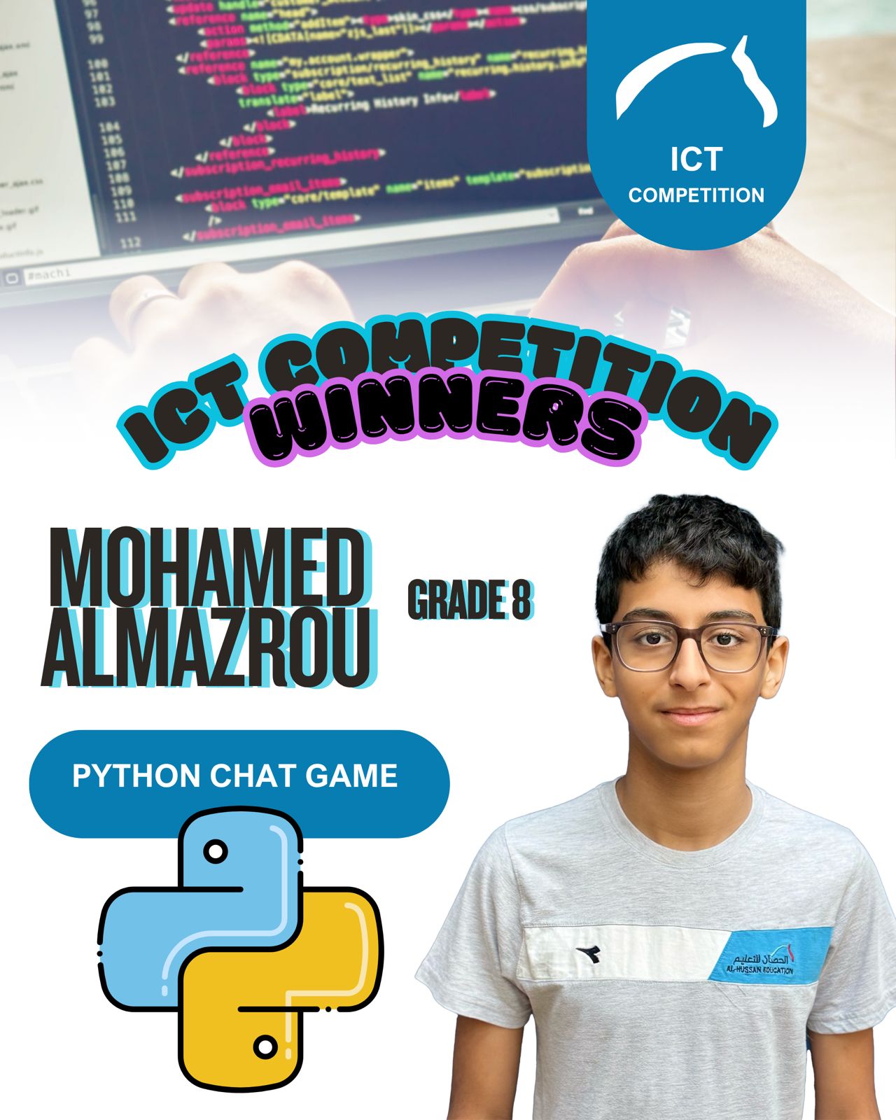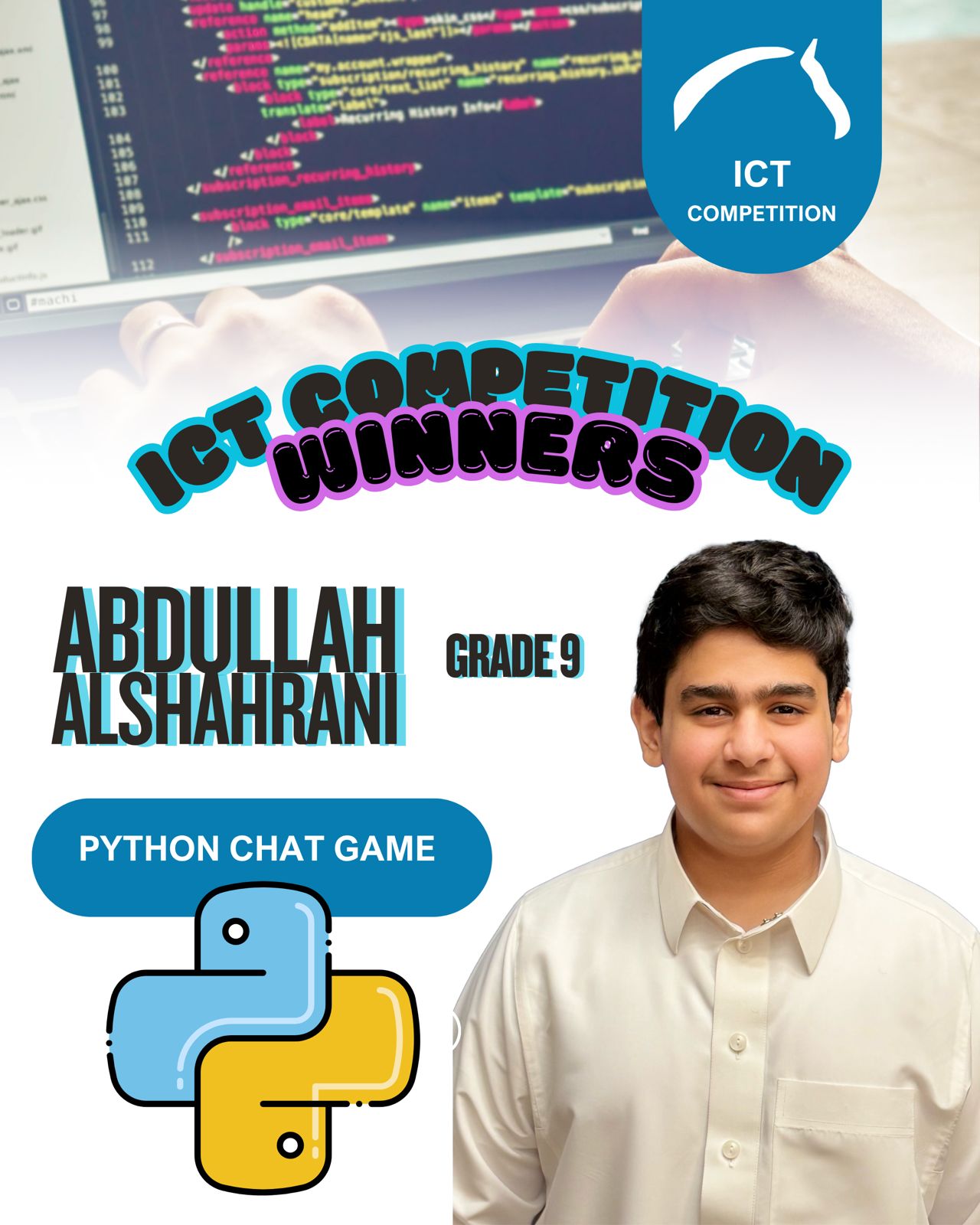 أقامت مدارس الحصان النموذجية العالمية الرياض, "قسم البنين" مسابقة ICT Competition من إعداد قسم الحاسب الآلي والتي قدم من خلالها الطلاب أعمال الكترونية متعلقة باليوم الوطني السعودي الـ 95، وقد تم توزيع الهدايا على الطلاب الفائزين.