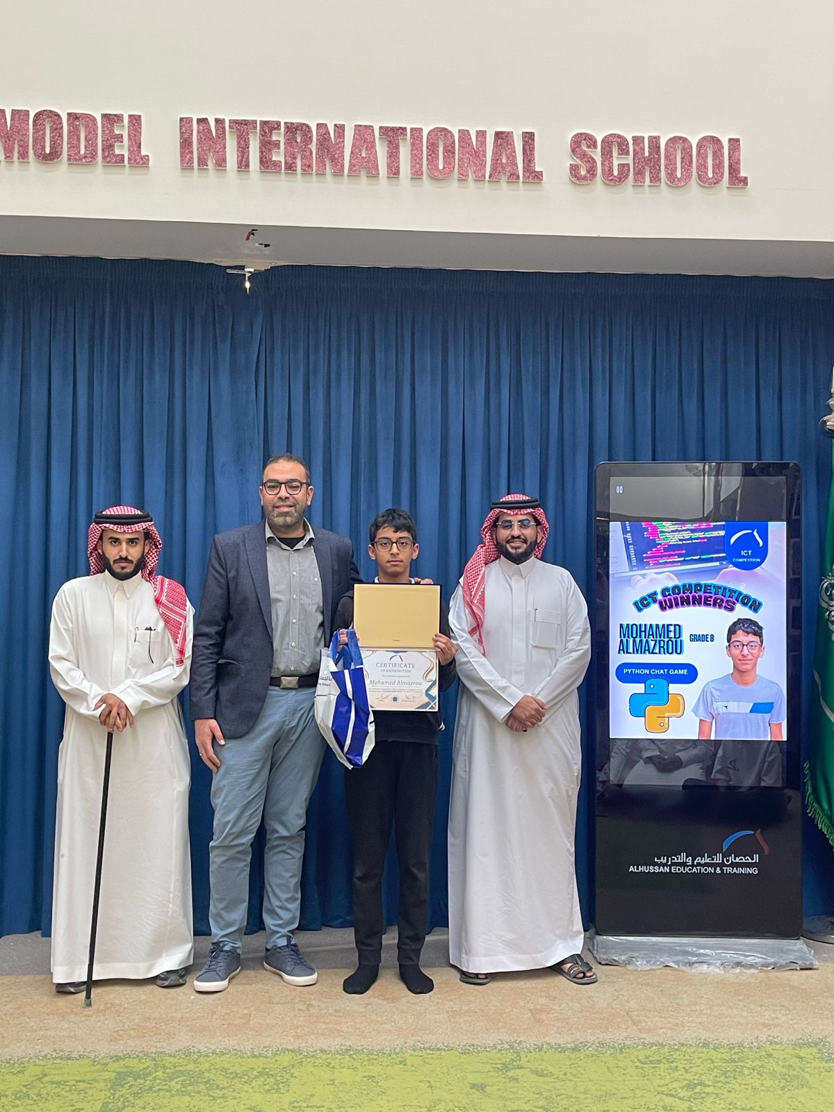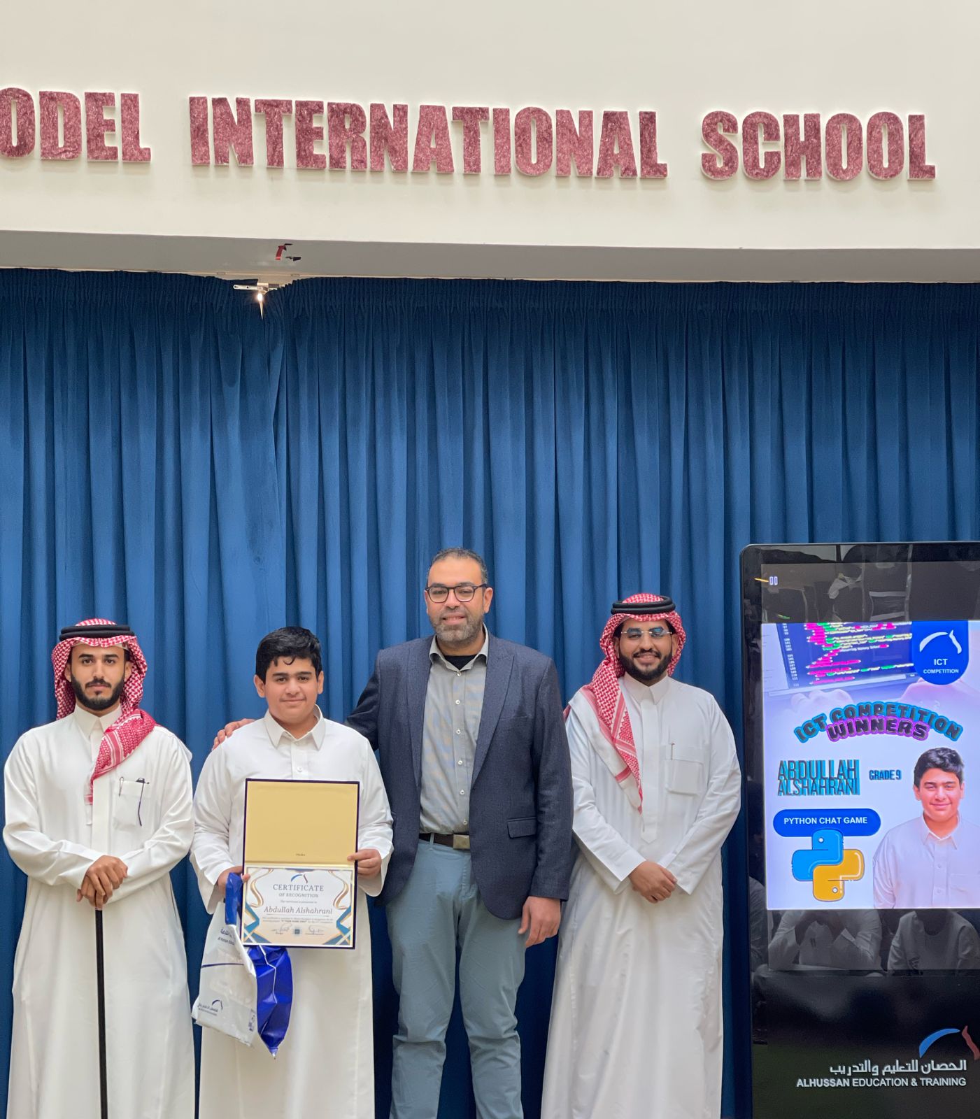 Al-Hussan Model International Schools, Riyadh (Boys' Section) organized the ICT Competition, under the supervision of the Computer Science Department, where students presented outstanding projects related to the Saudi National Day 95, the winners were recognized and awarded prizes.