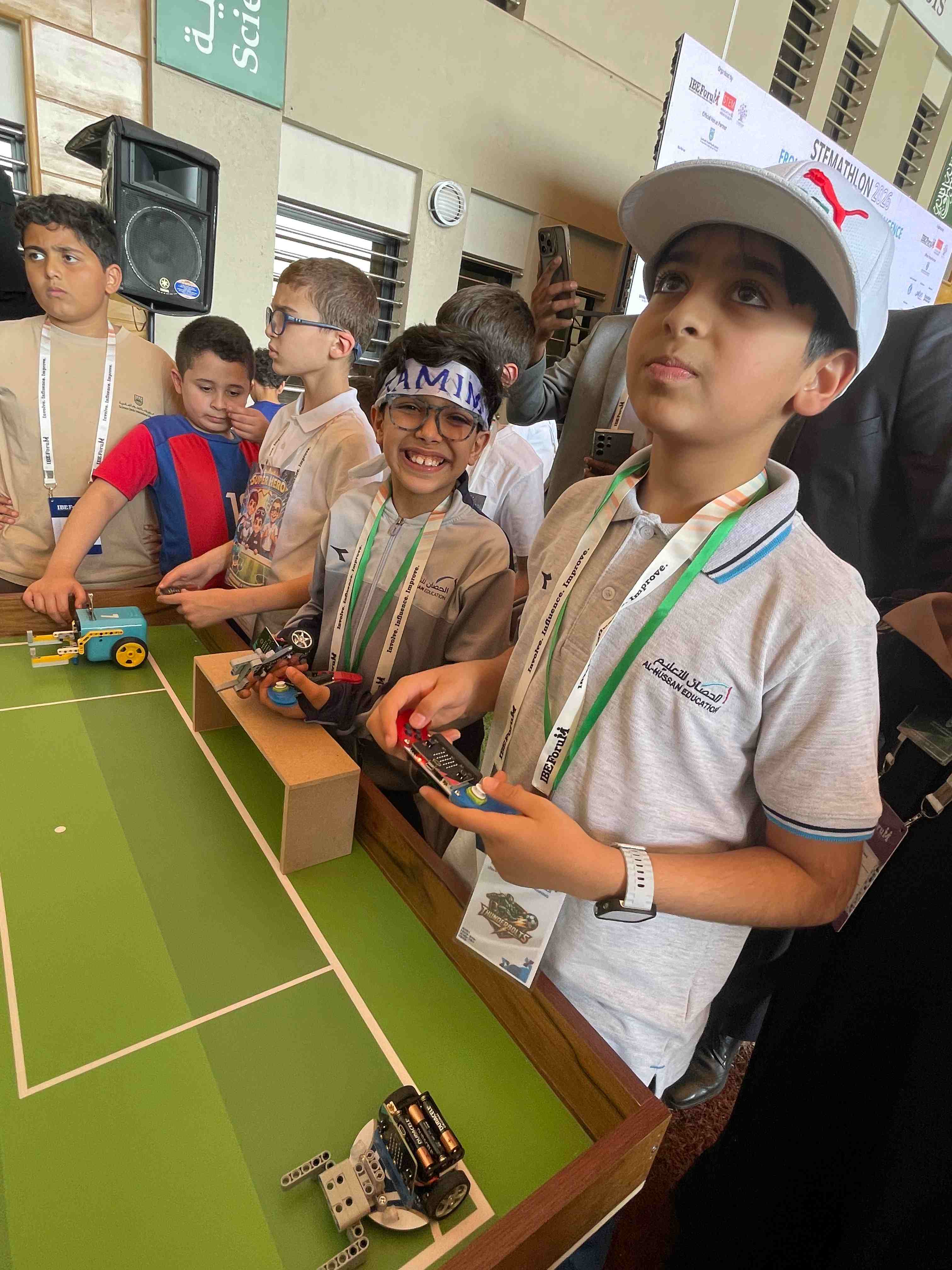 Al-Hussan International Model Schools-Riyadh, “Boys’ Section,” students of the fifth and sixth grades of primary school, participated in the STEMATHLON 2026 football competition using the robot. The students expressed their great happiness for taking on this challenge, which they benefited greatly from, and expressed their desire to take on more similar challenges to learn everything new in the world of robotics and programming.