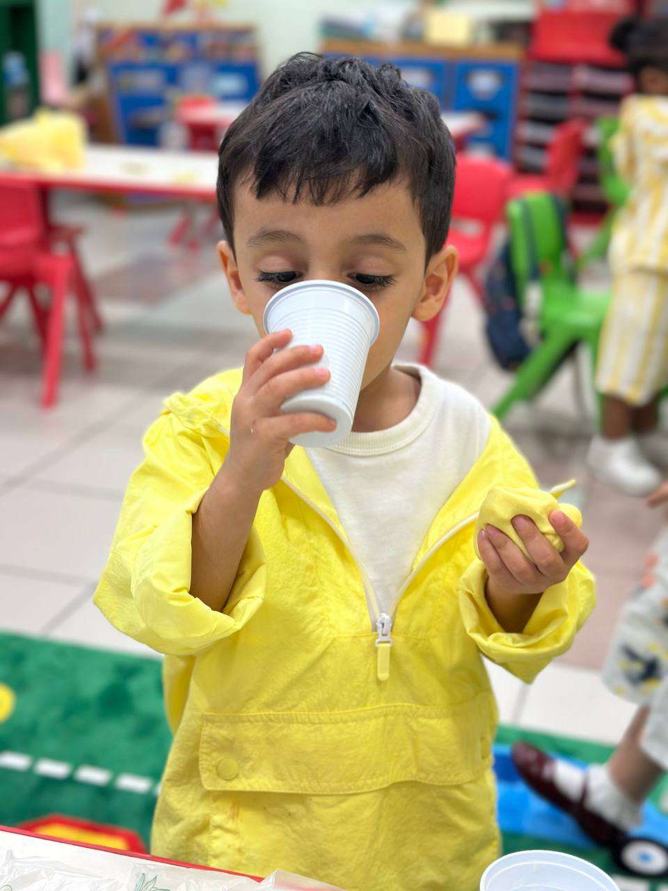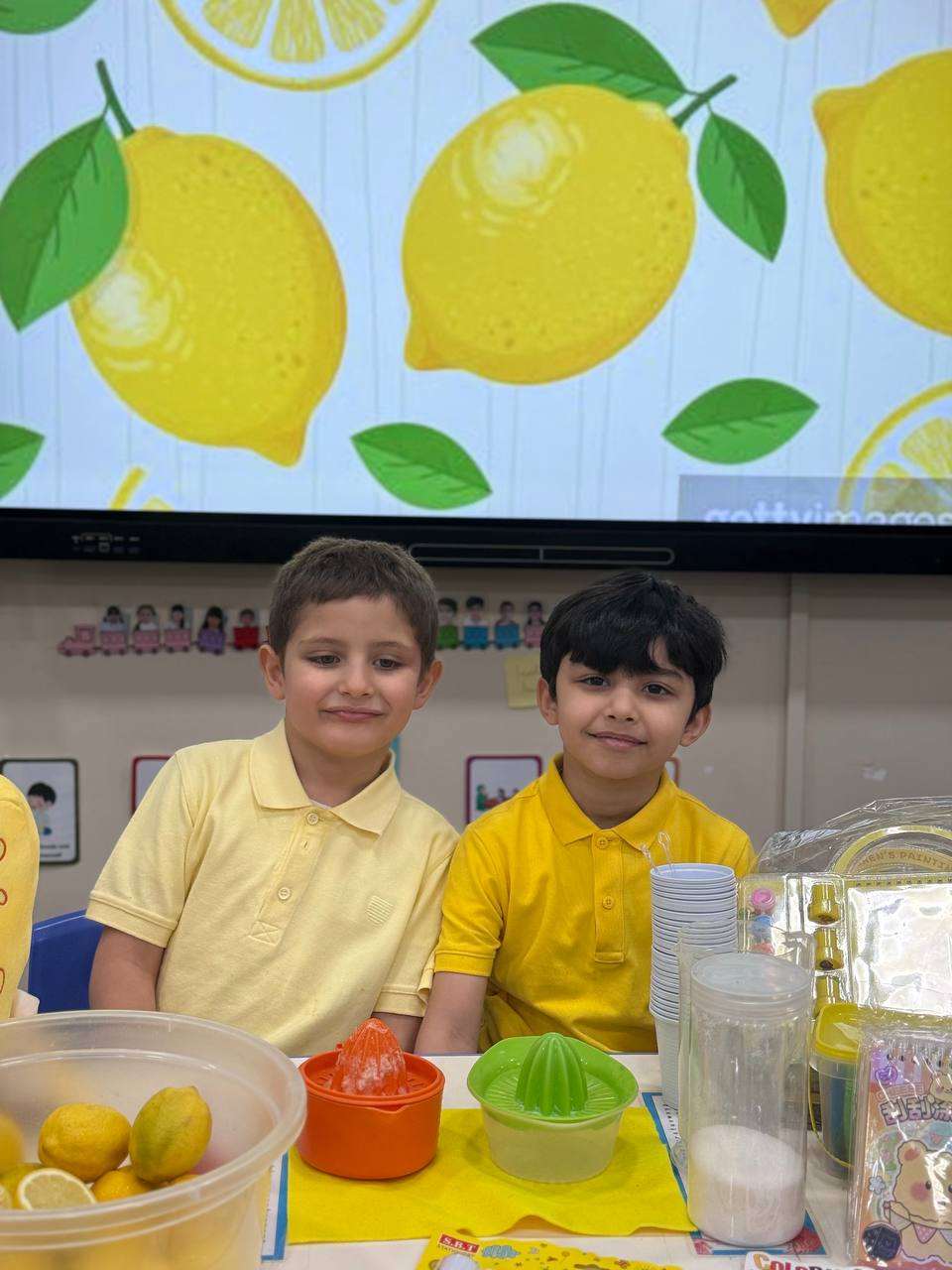 حيث قاموا بعصر الليمون الطازج وتذوقوا العصير ، وقاموا بعمل فني على شكل أناناس 🍍.