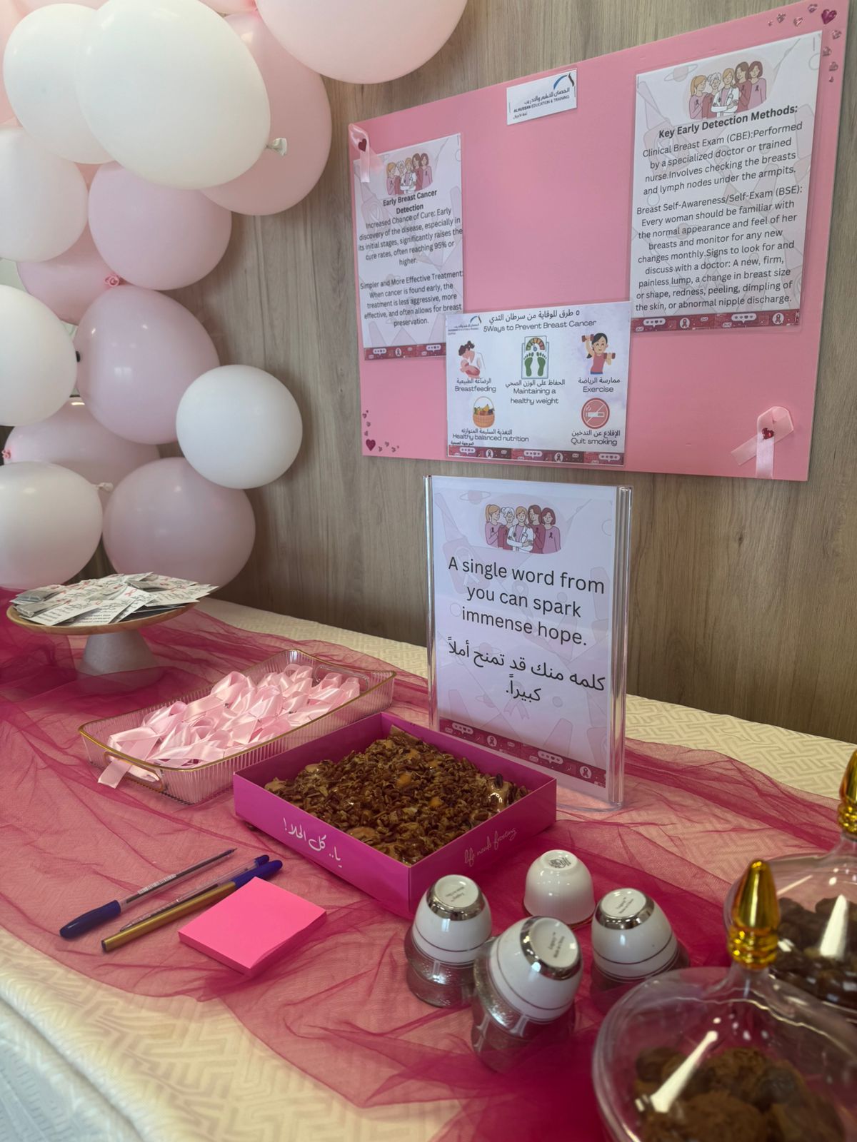 The Pink October event was organized at Al Hussan School, International Program- Khobar, Al Aziziyah to raise awareness about the importance of early breast cancer detection.