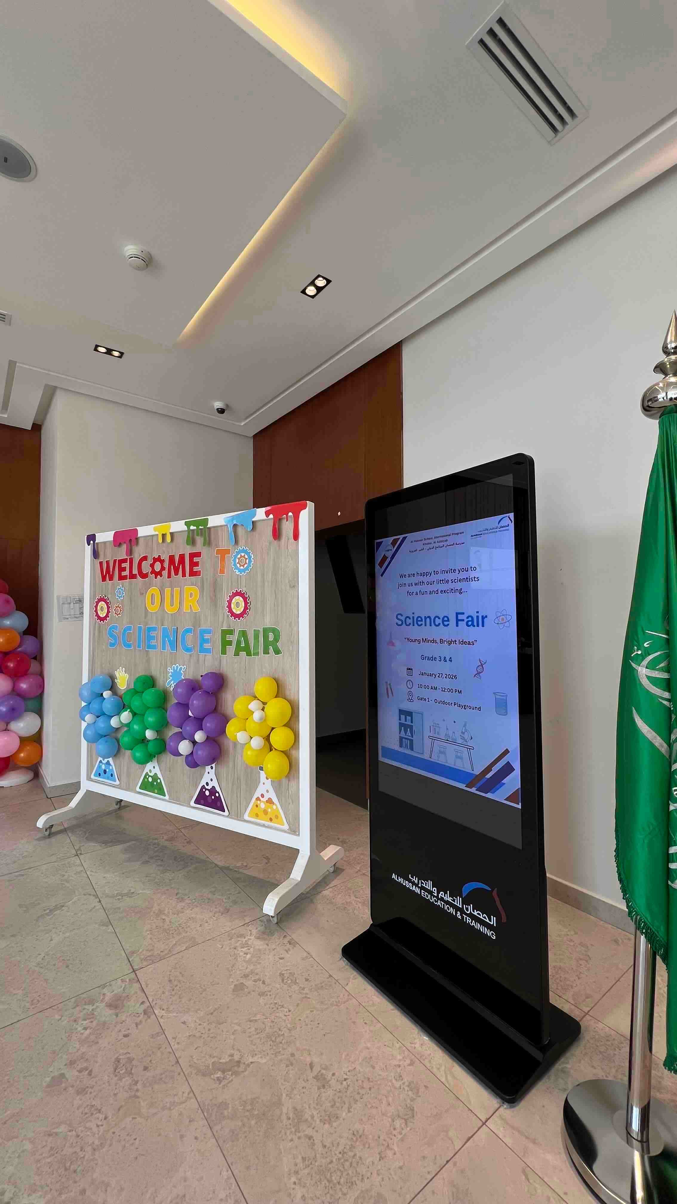 The exhibition was also honored by a visit from Al Hussan Model National Schools for Boys – Dammam, where the visiting guests explored the displayed projects and experiments and expressed their appreciation for the high level of organization and the quality of the students’ work.