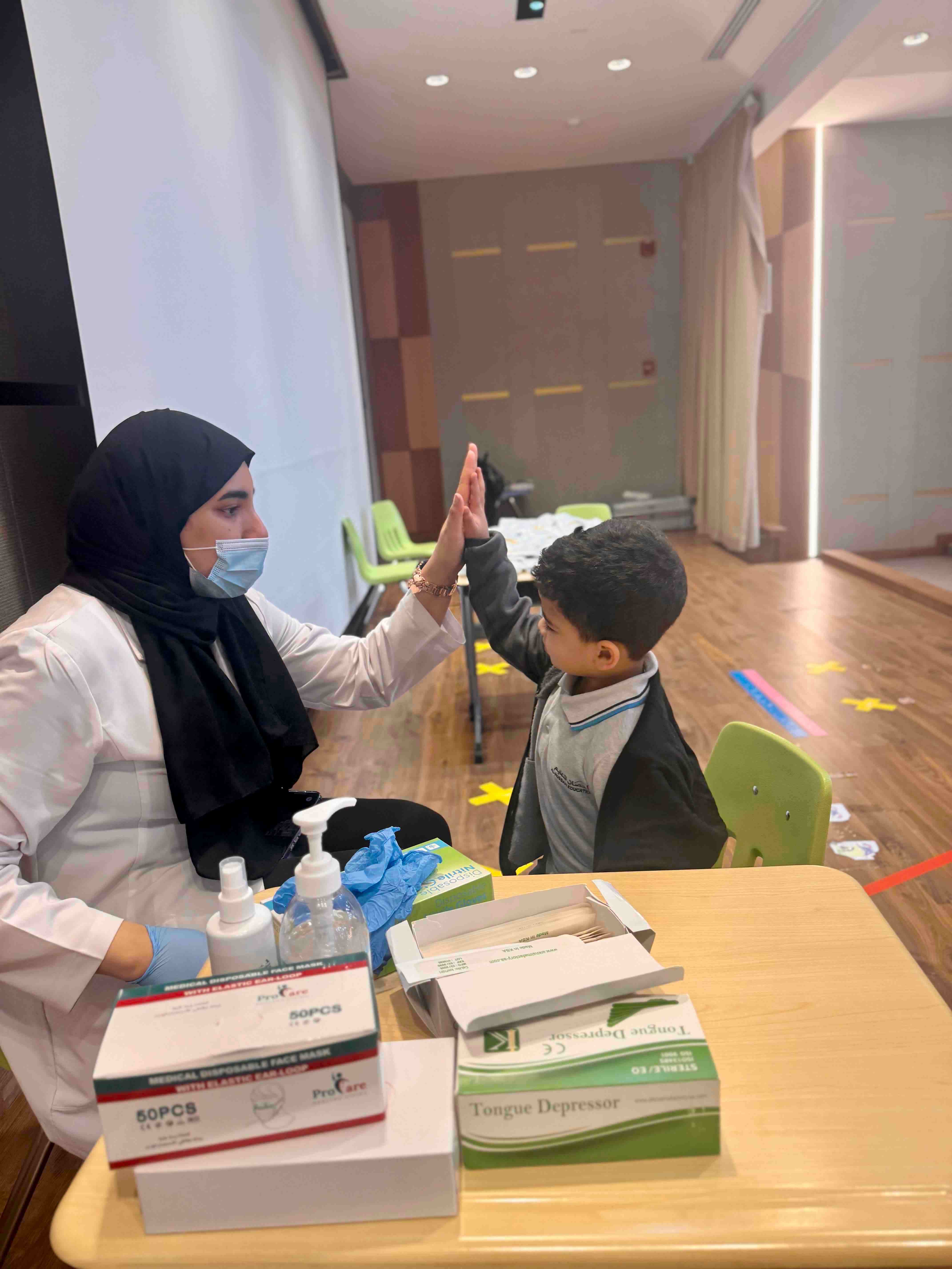 وتتقدم إدارة المدرسة بخالص الشكر والتقدير للفريق الطبي على تعاونهم وجهودهم المتميزة.