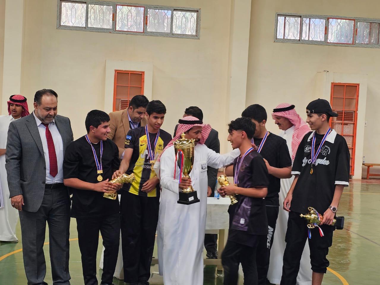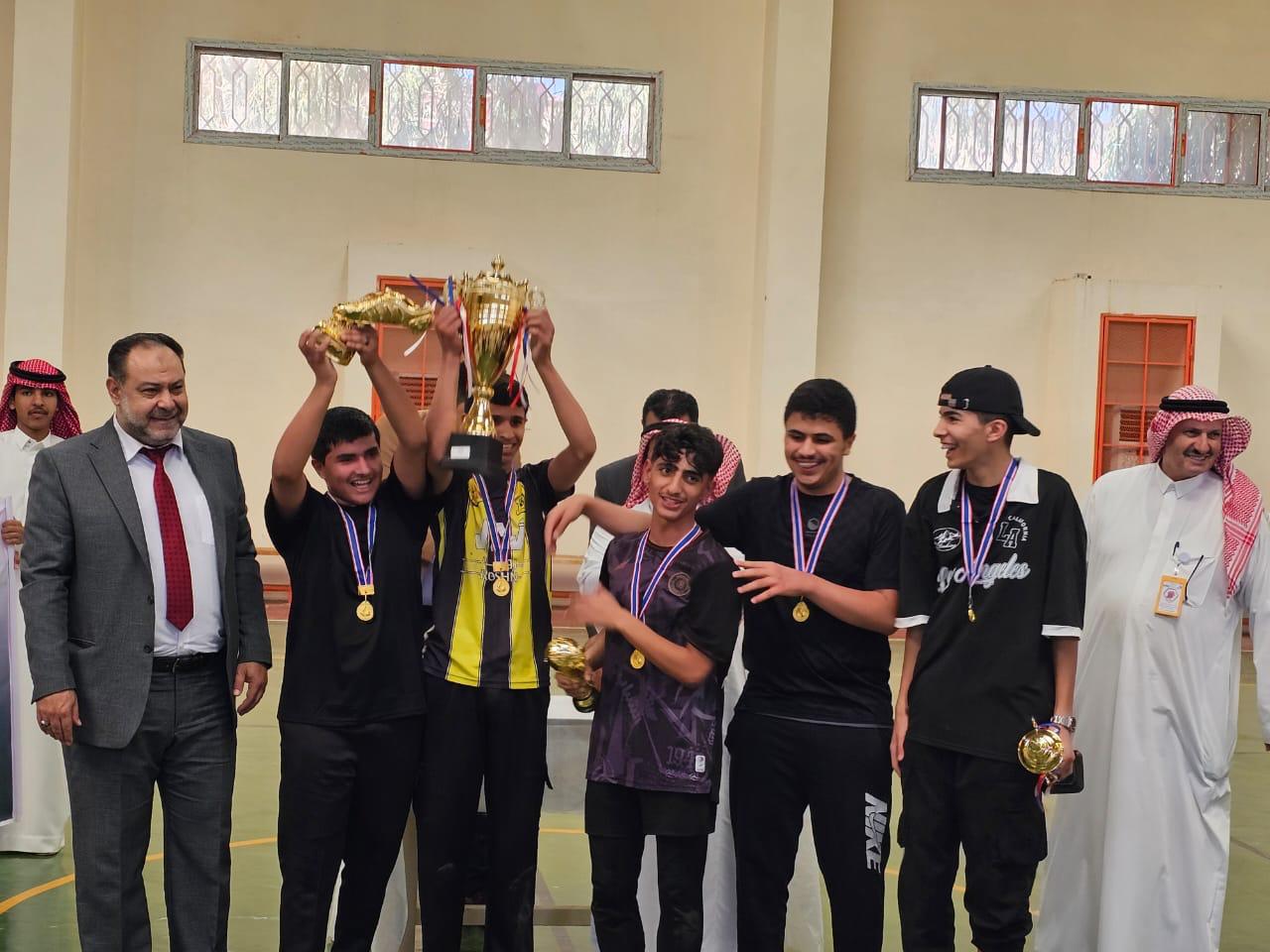 وقد شهدت المباراة النهائية منافسة قوية بين الفريقين قدّما خلالها أداءً مميزًا يعكس روح التحدي والمهارة الرياضية العالية لدى الطلاب، وسط حضور من المعلمين والطلاب الذين أضفوا على الحدث طابعًا من التشجيع والمتعة الرياضية.