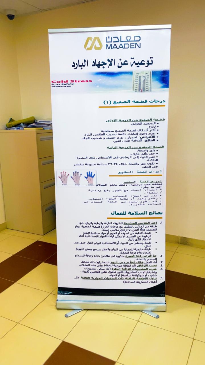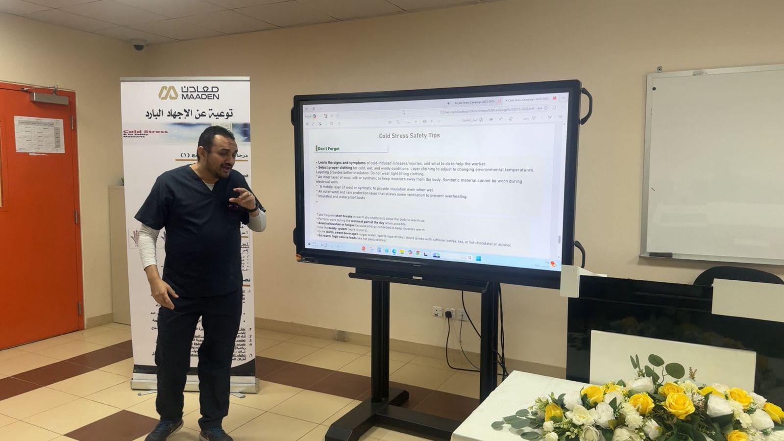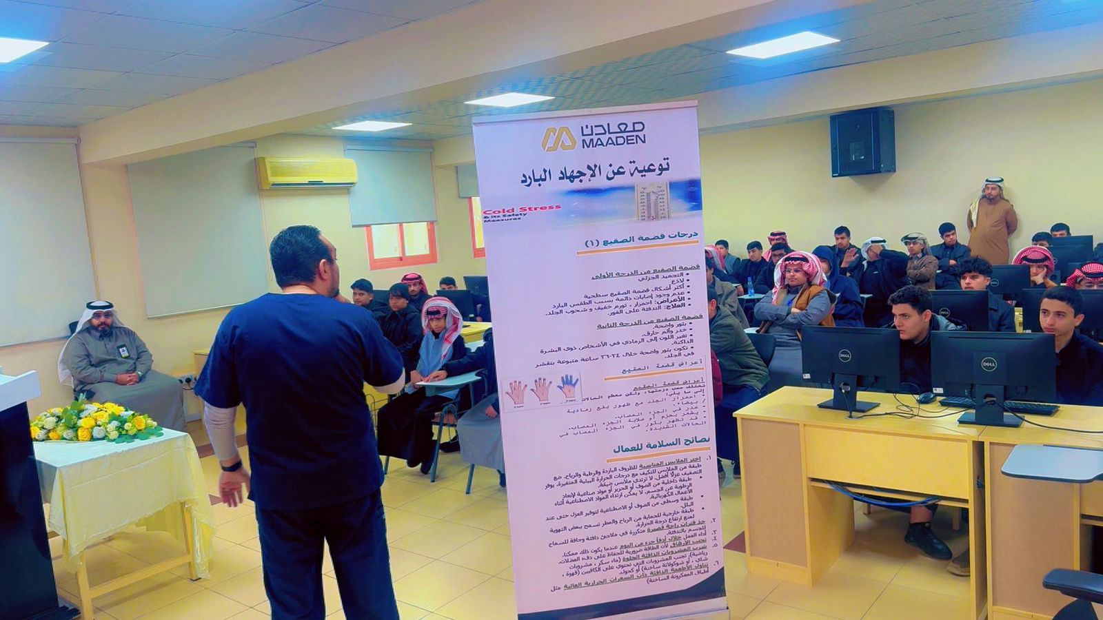 قدمت إدارة الاستدامة بشركة معادن يوم الإثنين 23-12-2025م محاضرة توعوية لطلاب ثانوية التميز العلمي بمحافظة طريف عن الإجهاد البارد، بهدف تعزيز الوعي بمخاطر التعرض للبرد الشديد وطرق الوقاية منه.