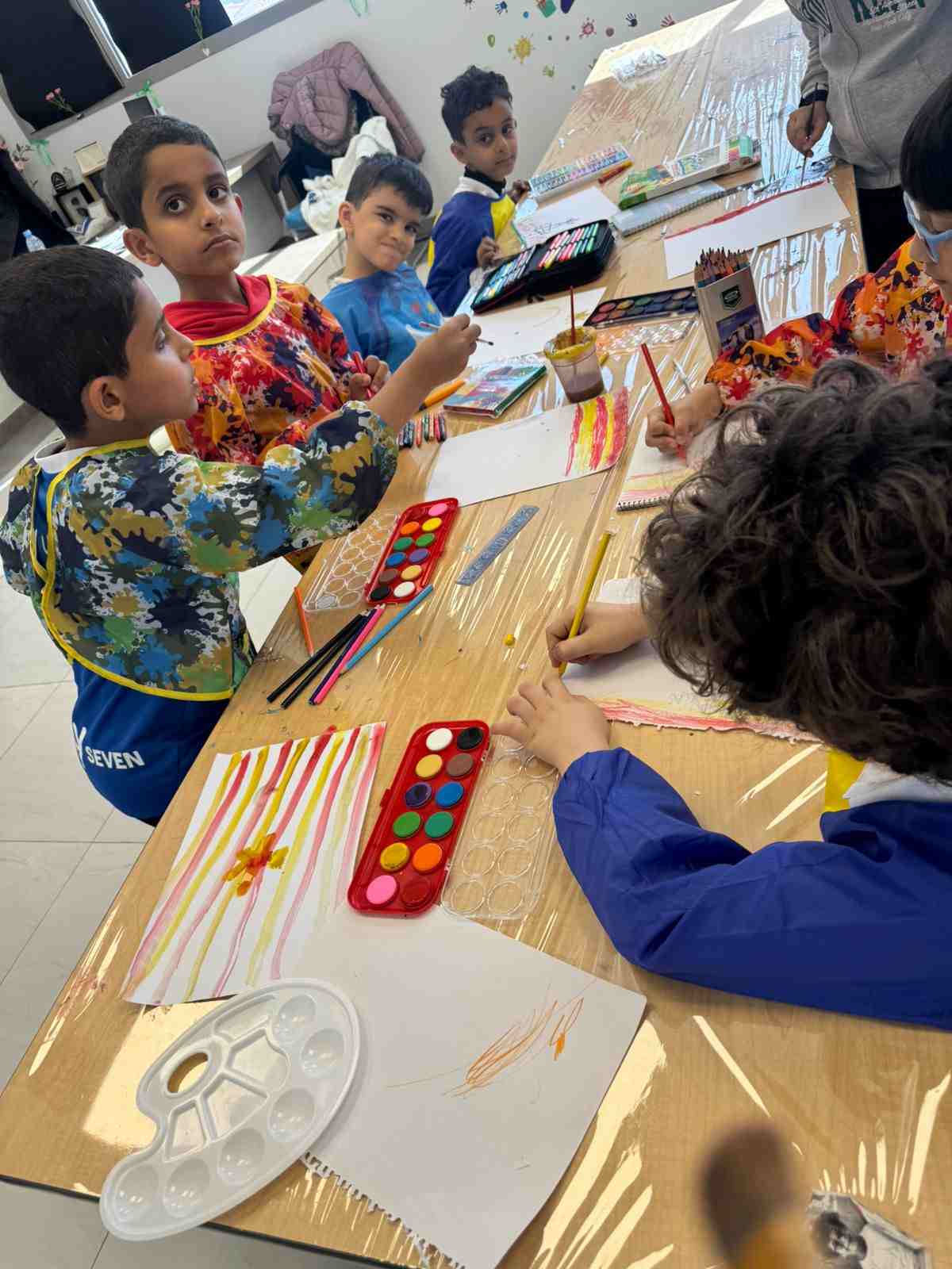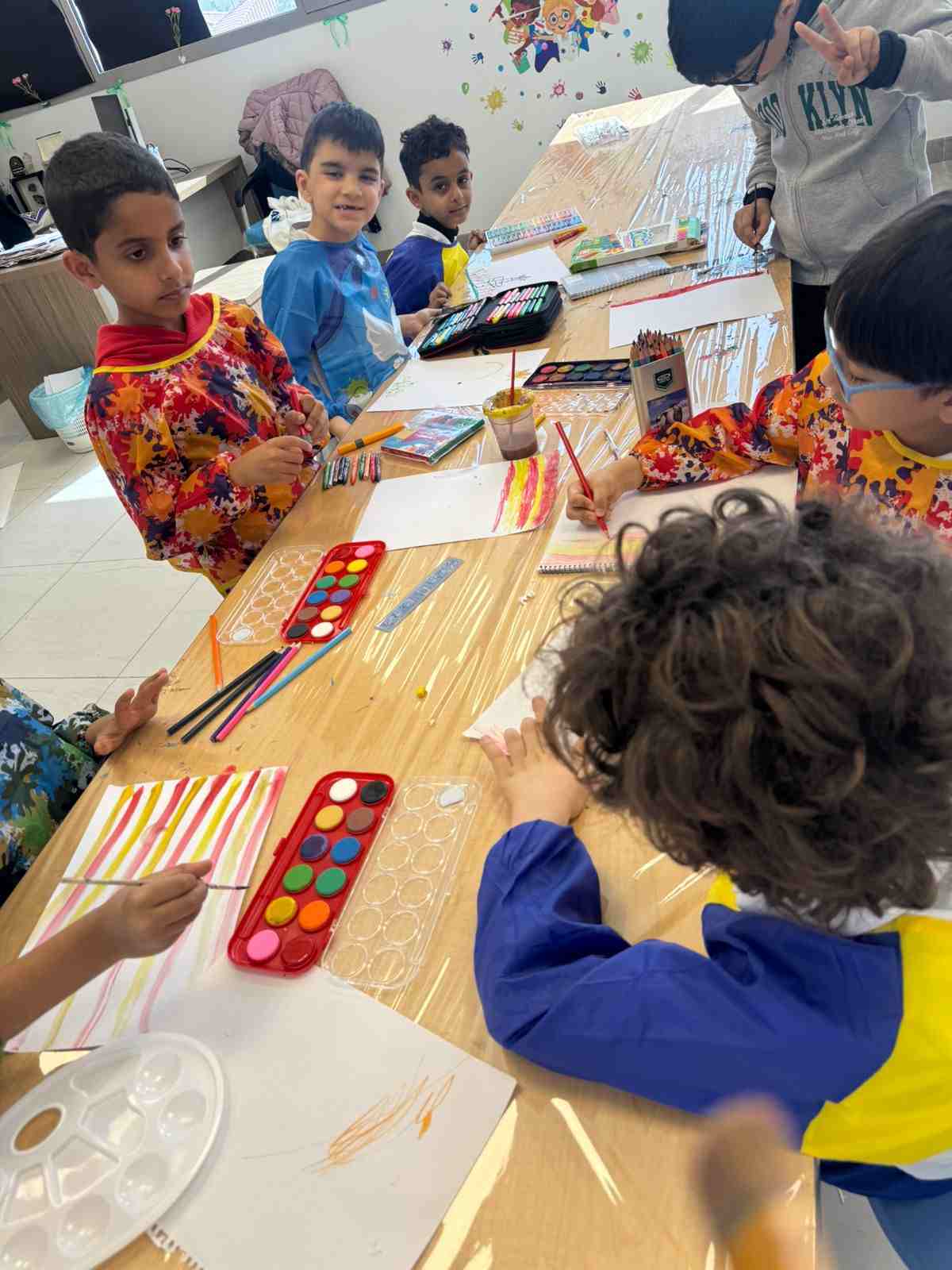 درس الألوان الباردة والدافئة ويظهر إبداعات طلاب الصف الثاني الابتدائي بمدارس الحصان الأهلية والدولية في المدينة المنورة, خلال حصة التربية الفنية؛ حيث استكشفنا سحر الألوان الدافئة والباردة.