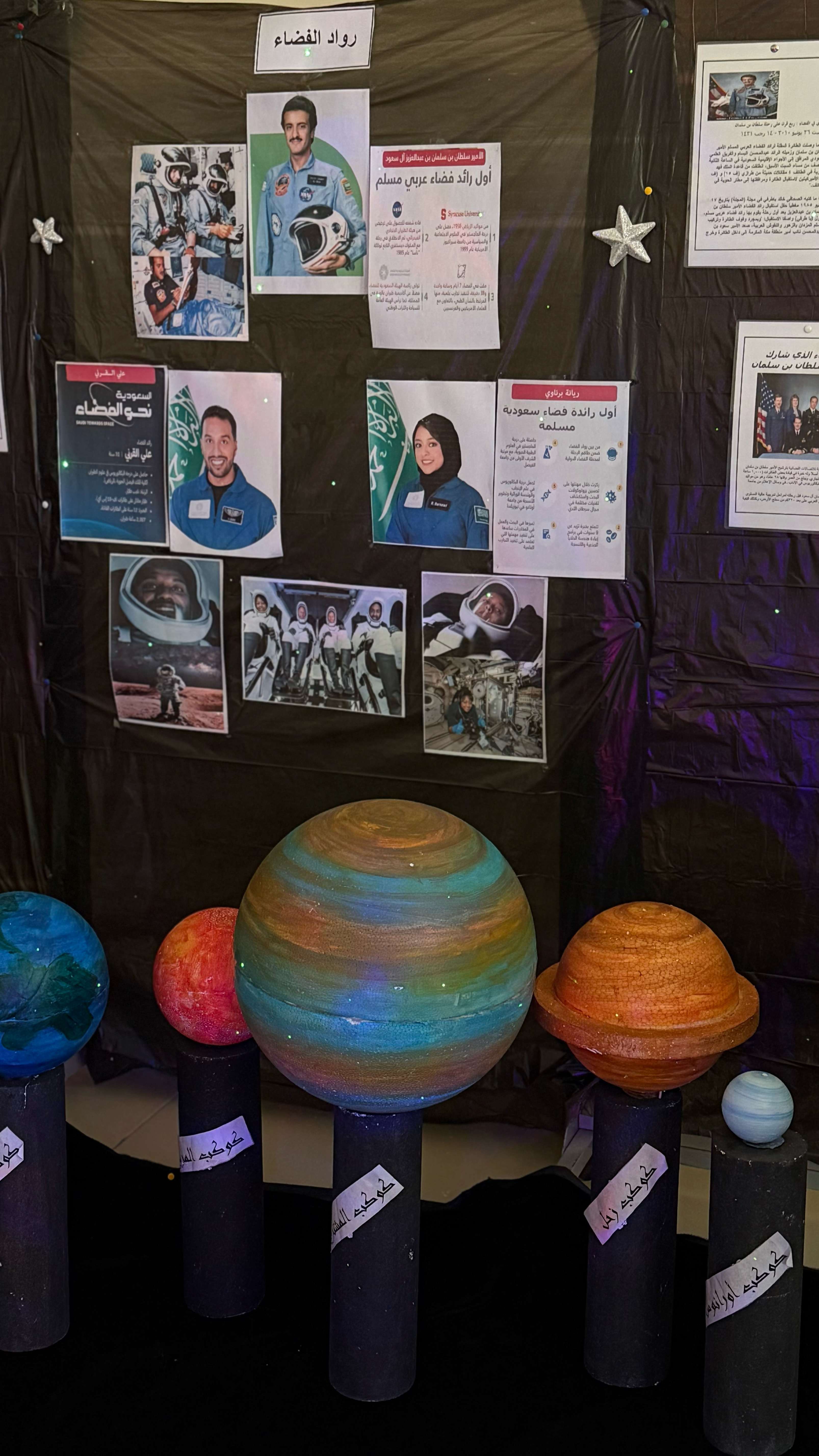 وتضمّنت الفعاليات عروضًا مرئية، وتجارب علمية تفاعلية، بالإضافة إلى مجسمات متنوعة تجسّد جمال وروعة هذا الكون الواسع. كما شاركت الطالبات بعرض أعمالهن المتميزة التي تعكس مدى فهمهن واهتمامهن بموضوع الفضاء، وتُبرز قدراتهن الفنية والعلمية.