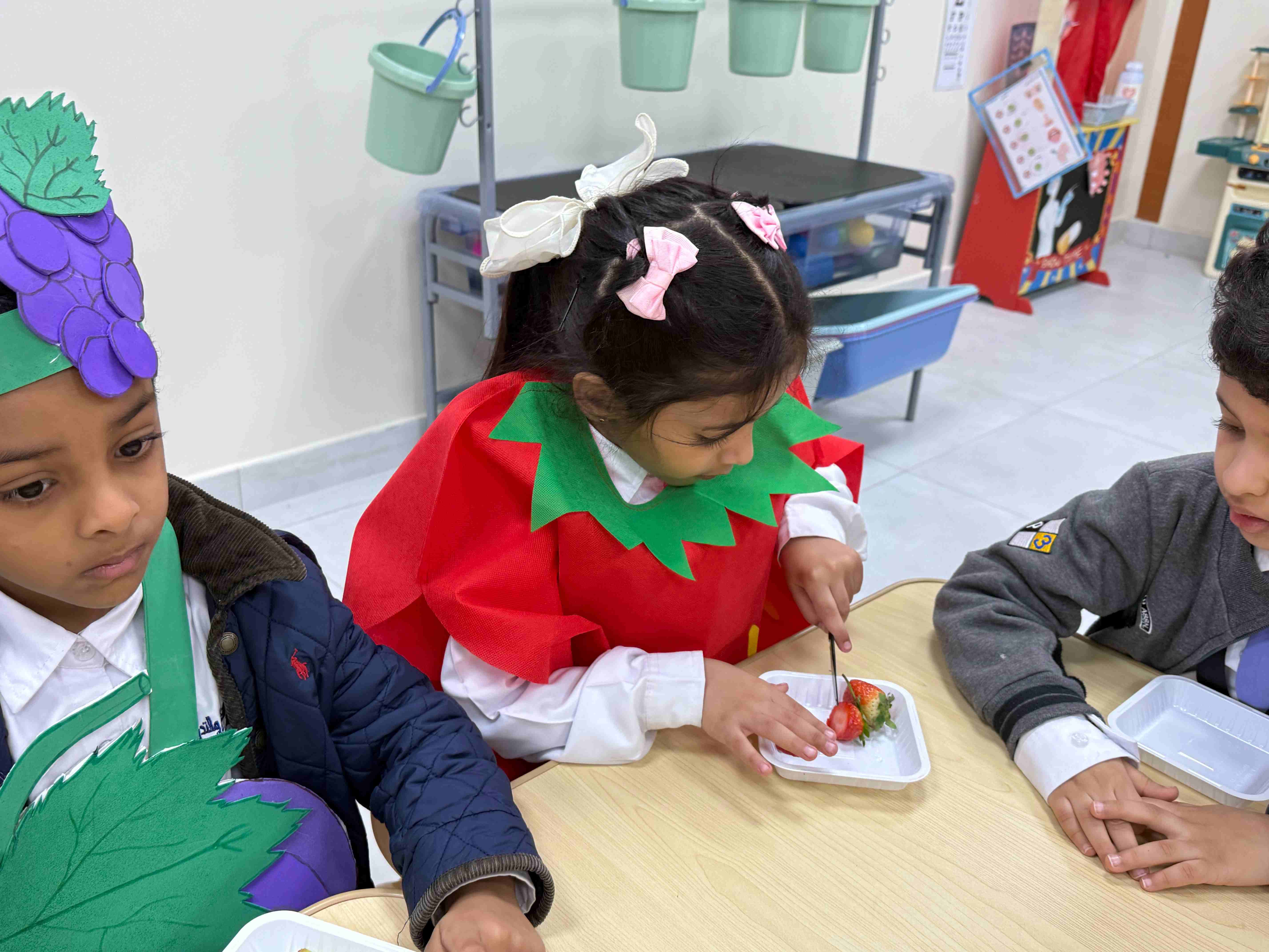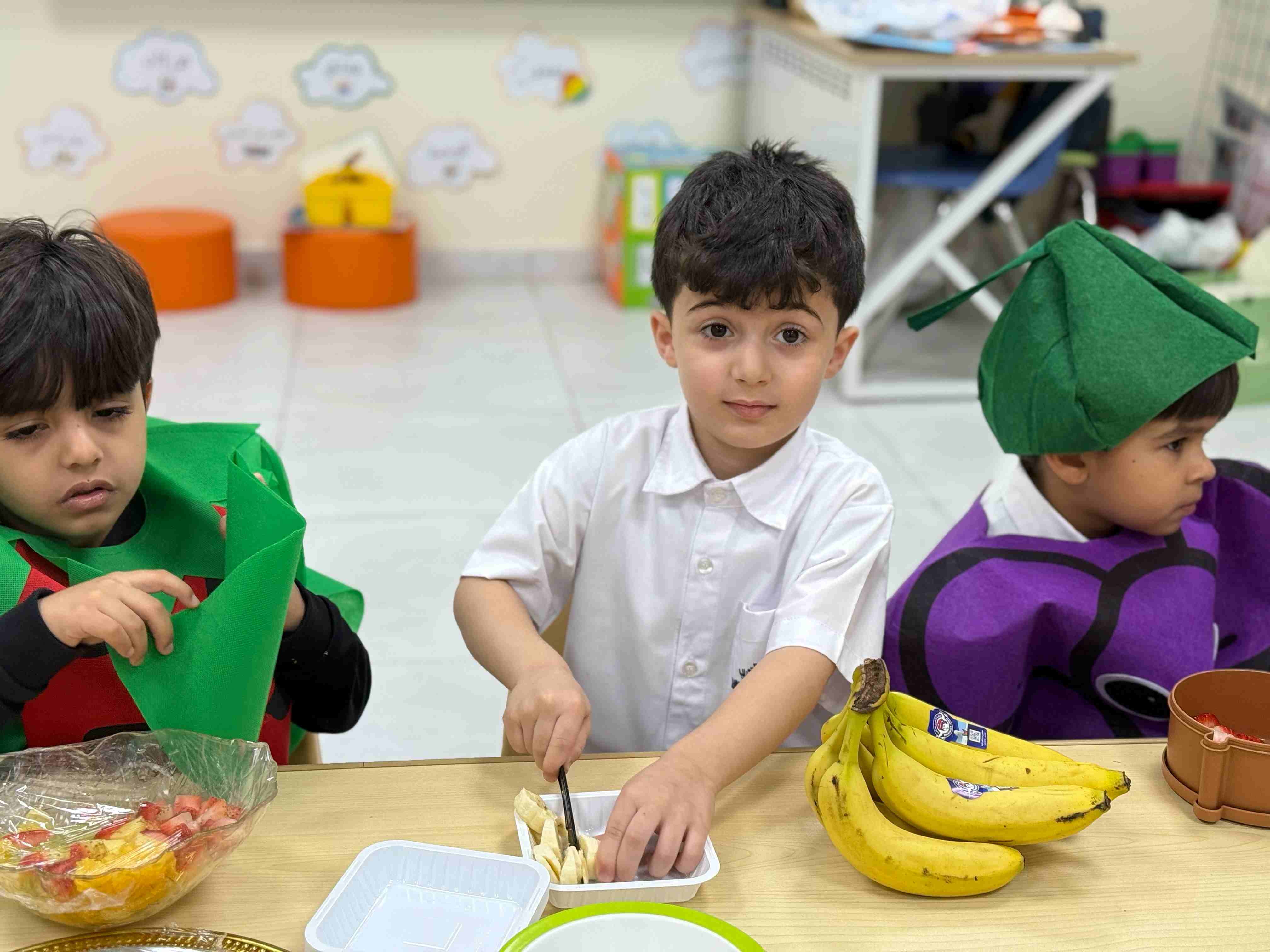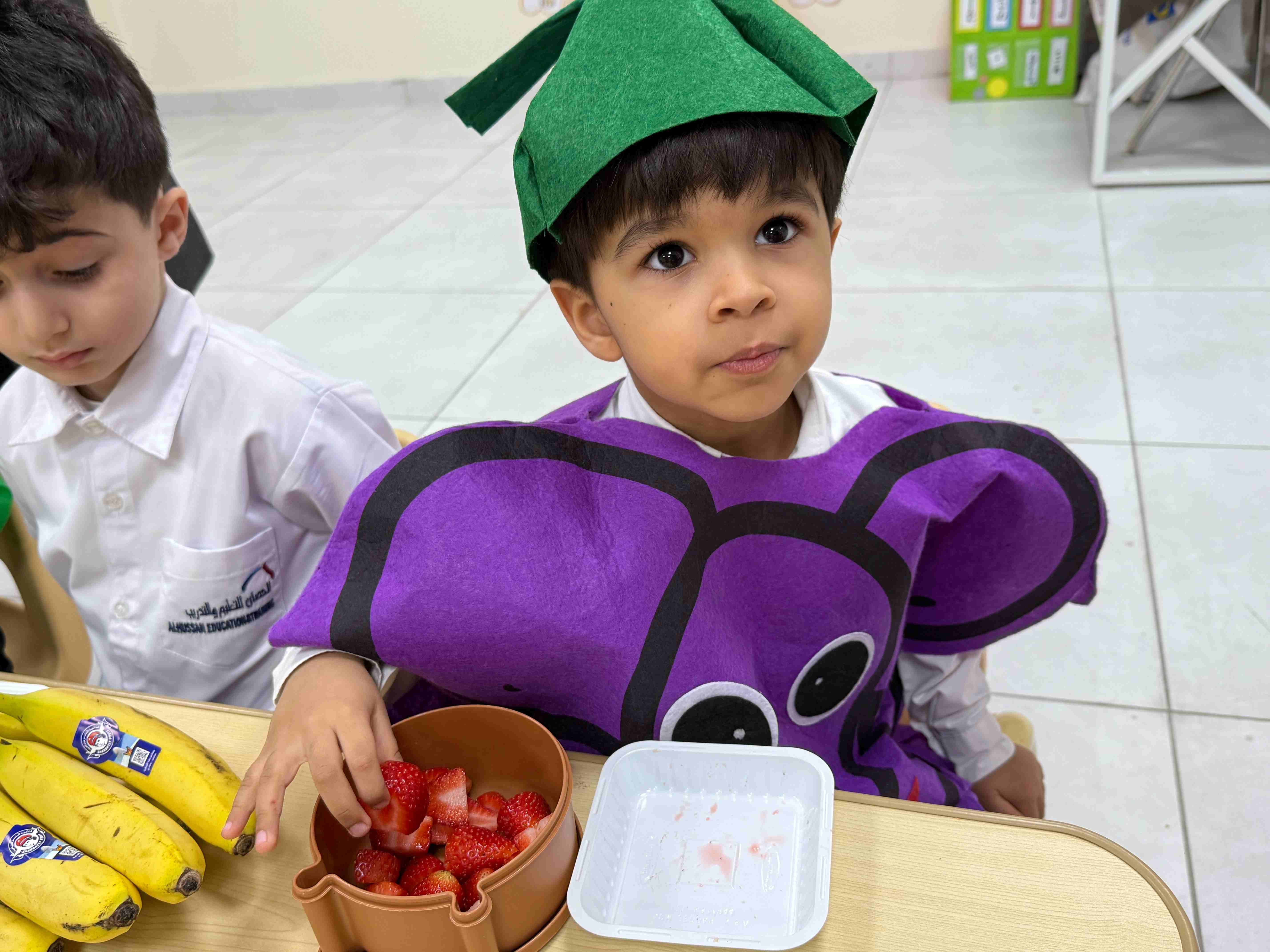Al-Hussan National School (International Program) – Al Rrakah celebrated Fruit Day for kg with fun and interactive activities, where children enjoyed learning about different types of fruits and their health benefits by participating in fruit cutting.