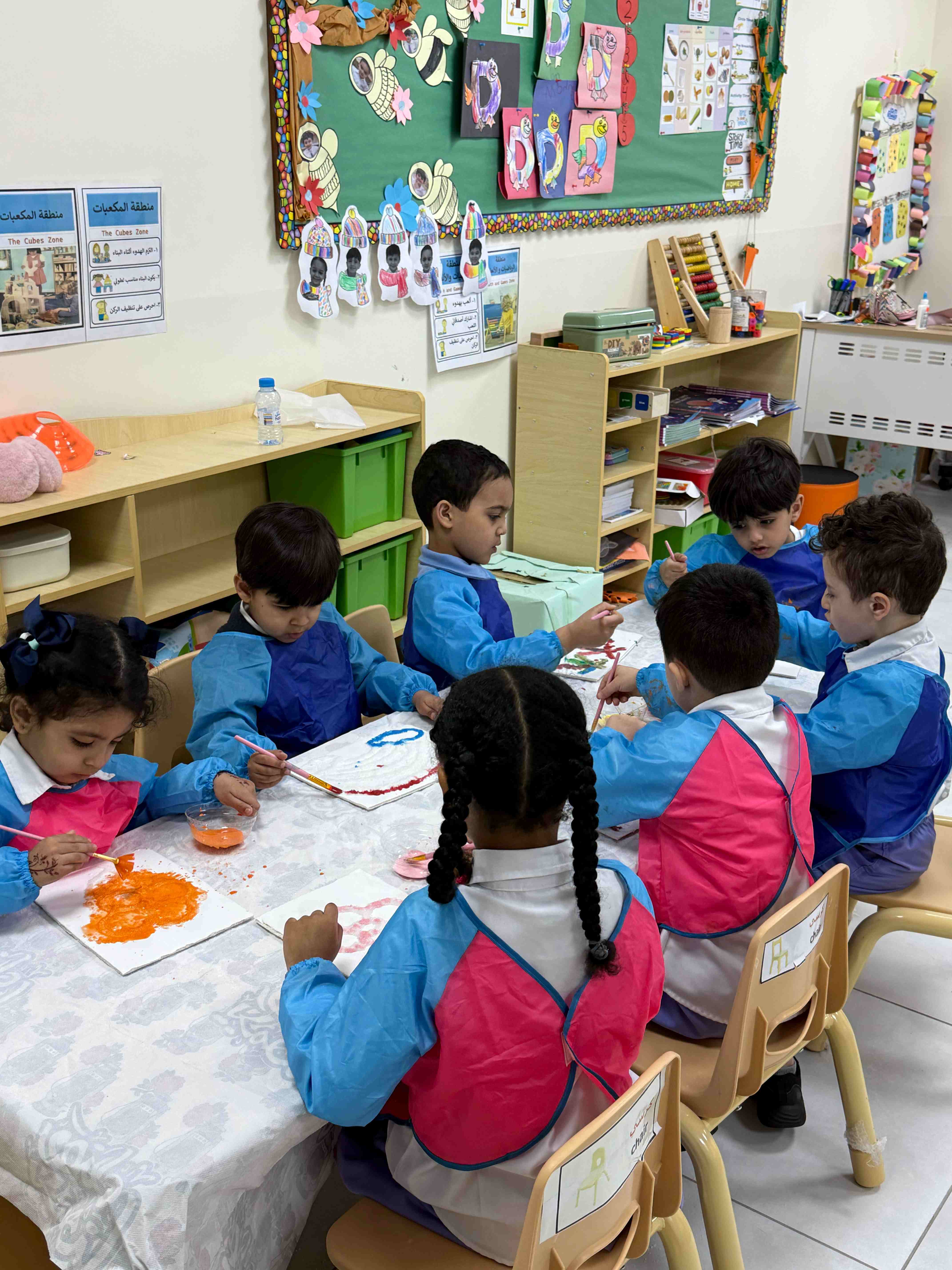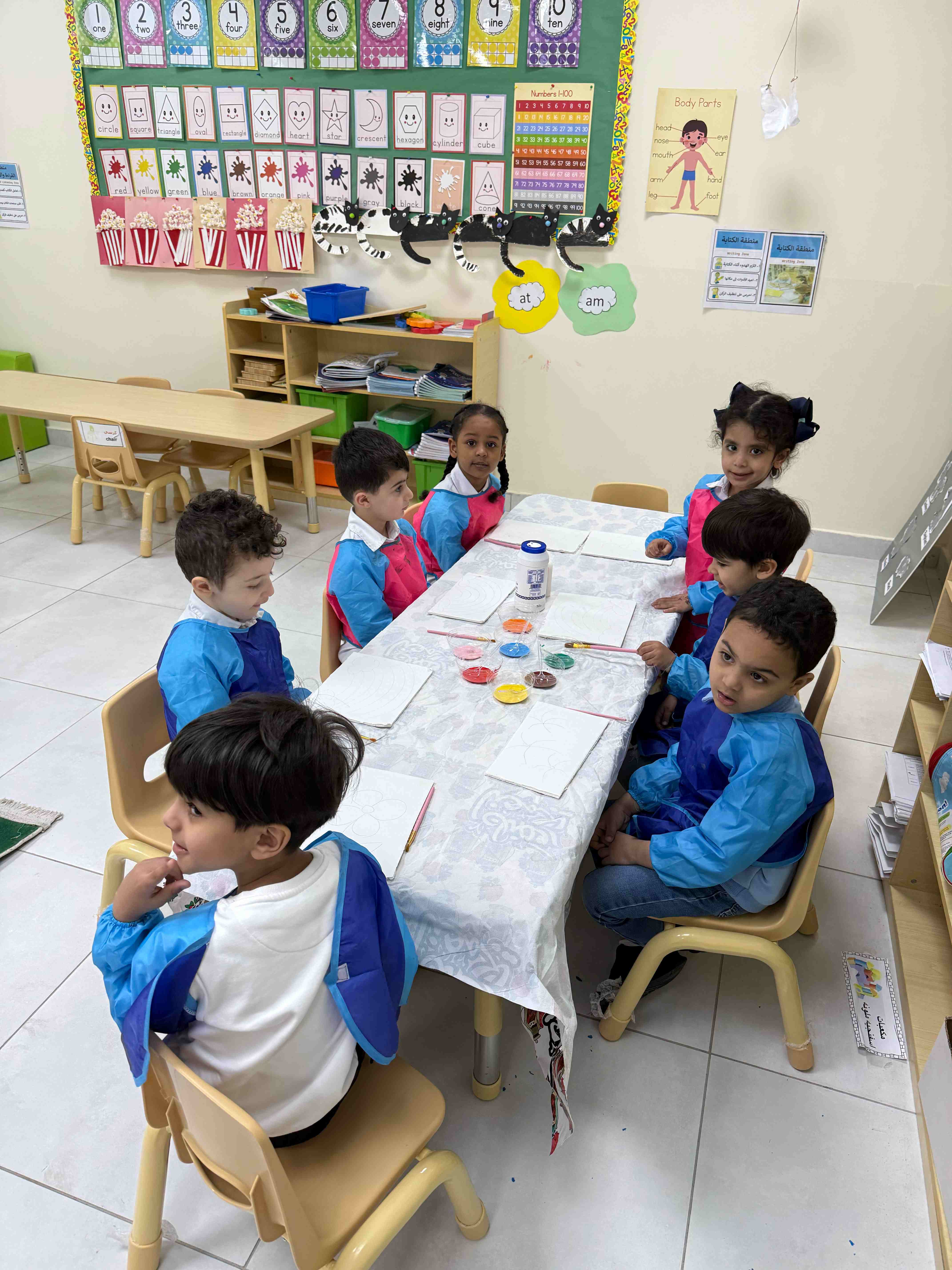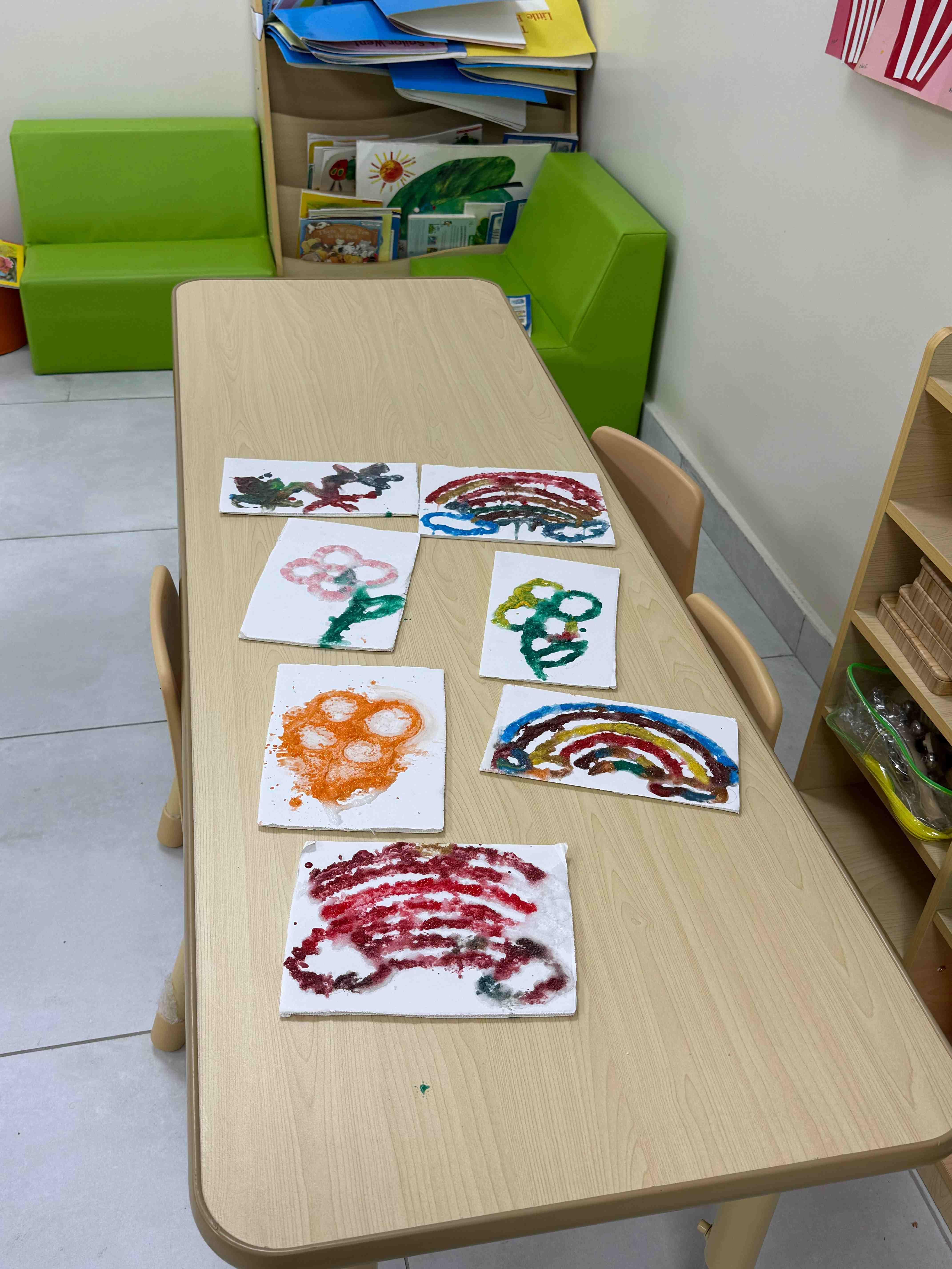 Al Hussan National school (International Program) Al Rakkah implemented an art activity based on the use of salt and its interaction with colours for kindergarten students as part of the Art class. This activity plays a prominent role in developing students’ creative sense, as it provides them with opportunities for free experimentation and exploration of unconventional results resulting from the interaction between salt and colour. Such experiences enhance students’ curiosity and encourage innovative and creative thinking