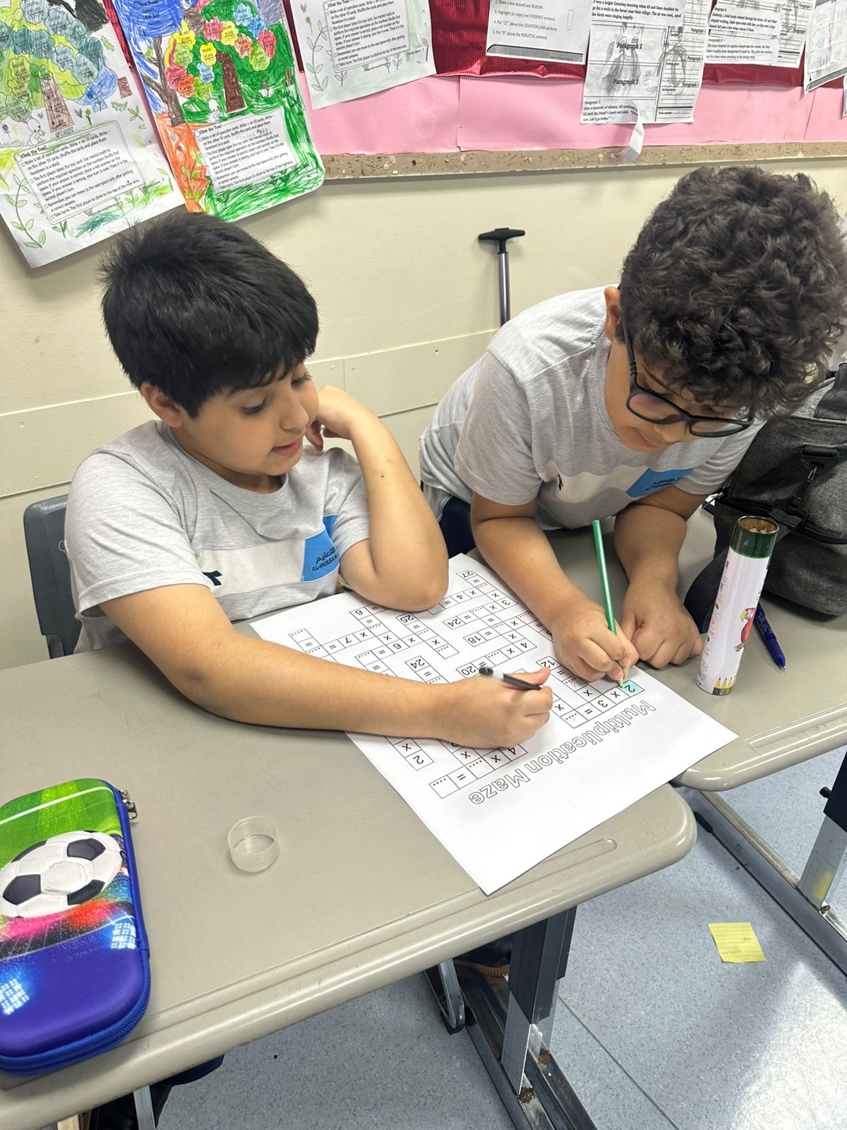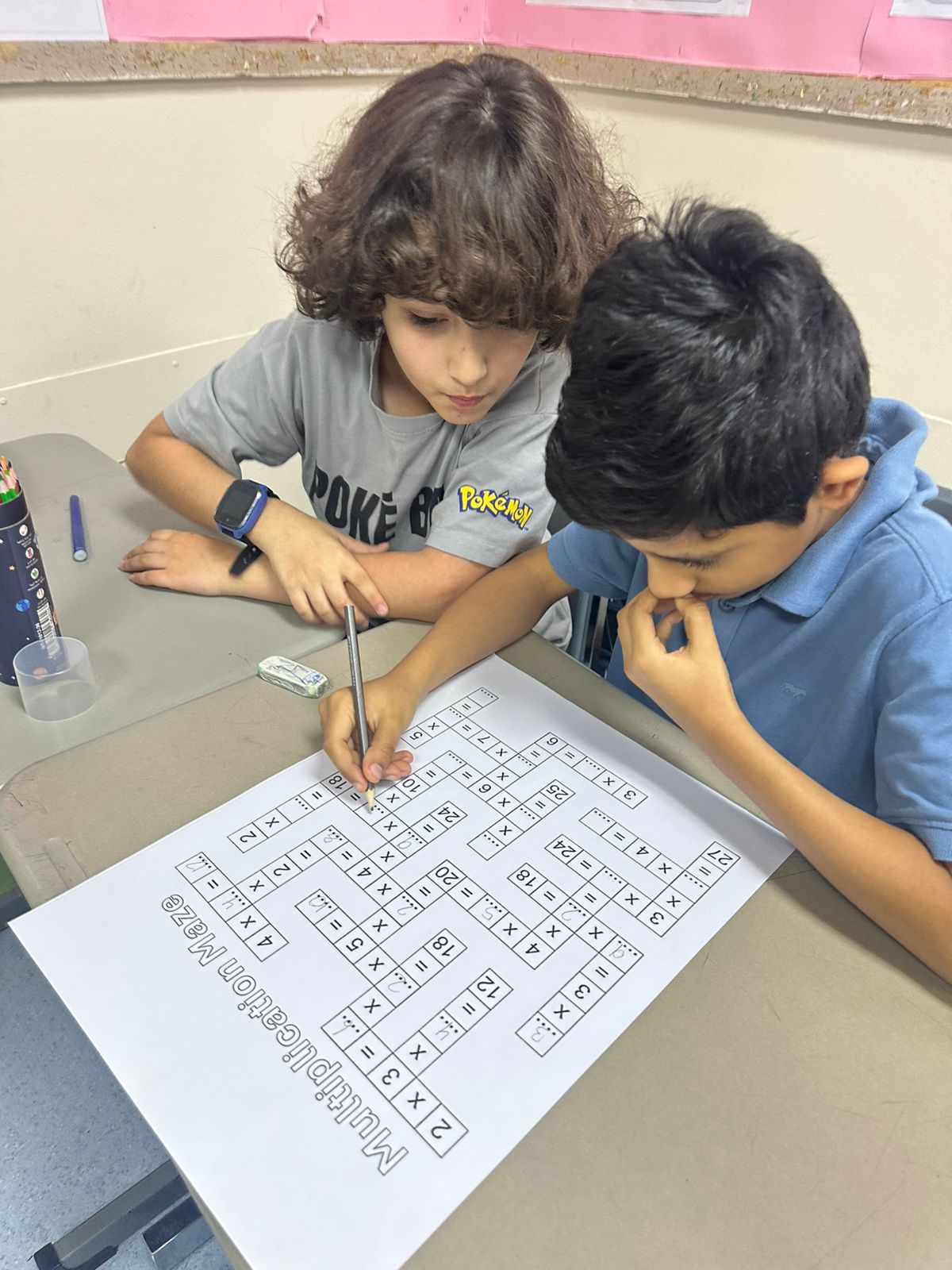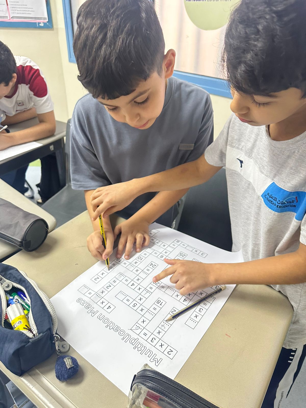 Our Grade 4 students at Al-Hussan National School - Dammam, International Section enjoyed a fun and engaging Multiplication Maze activity today! 🎯 Working together in pairs, they solved multiplication problems to find their way through the maze — combining teamwork, problem-solving, and math fluency in one exciting challenge