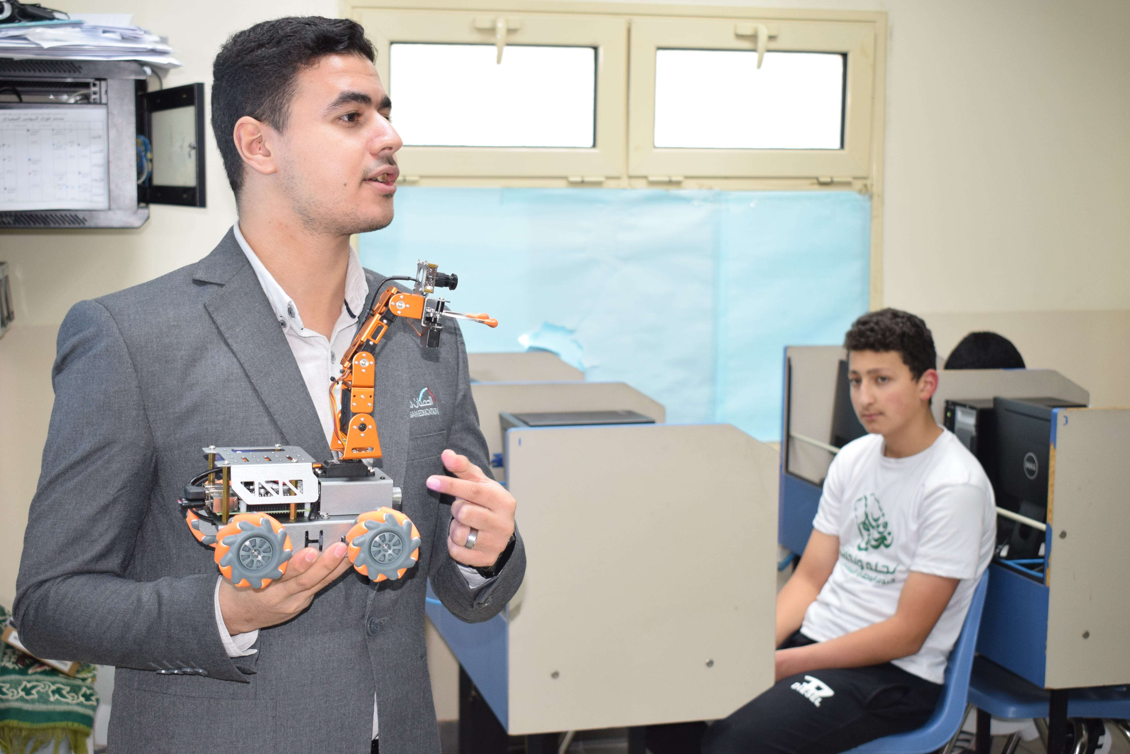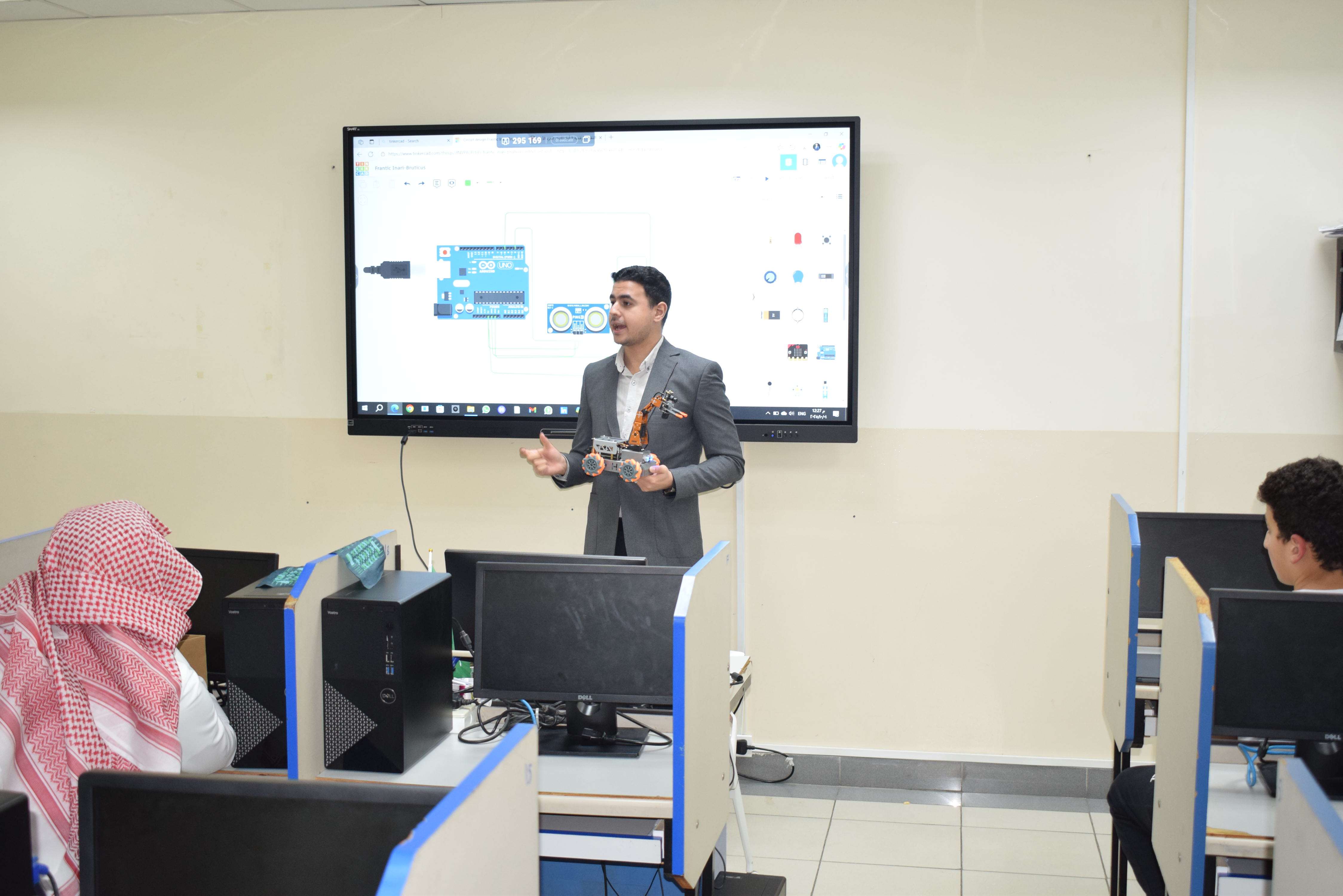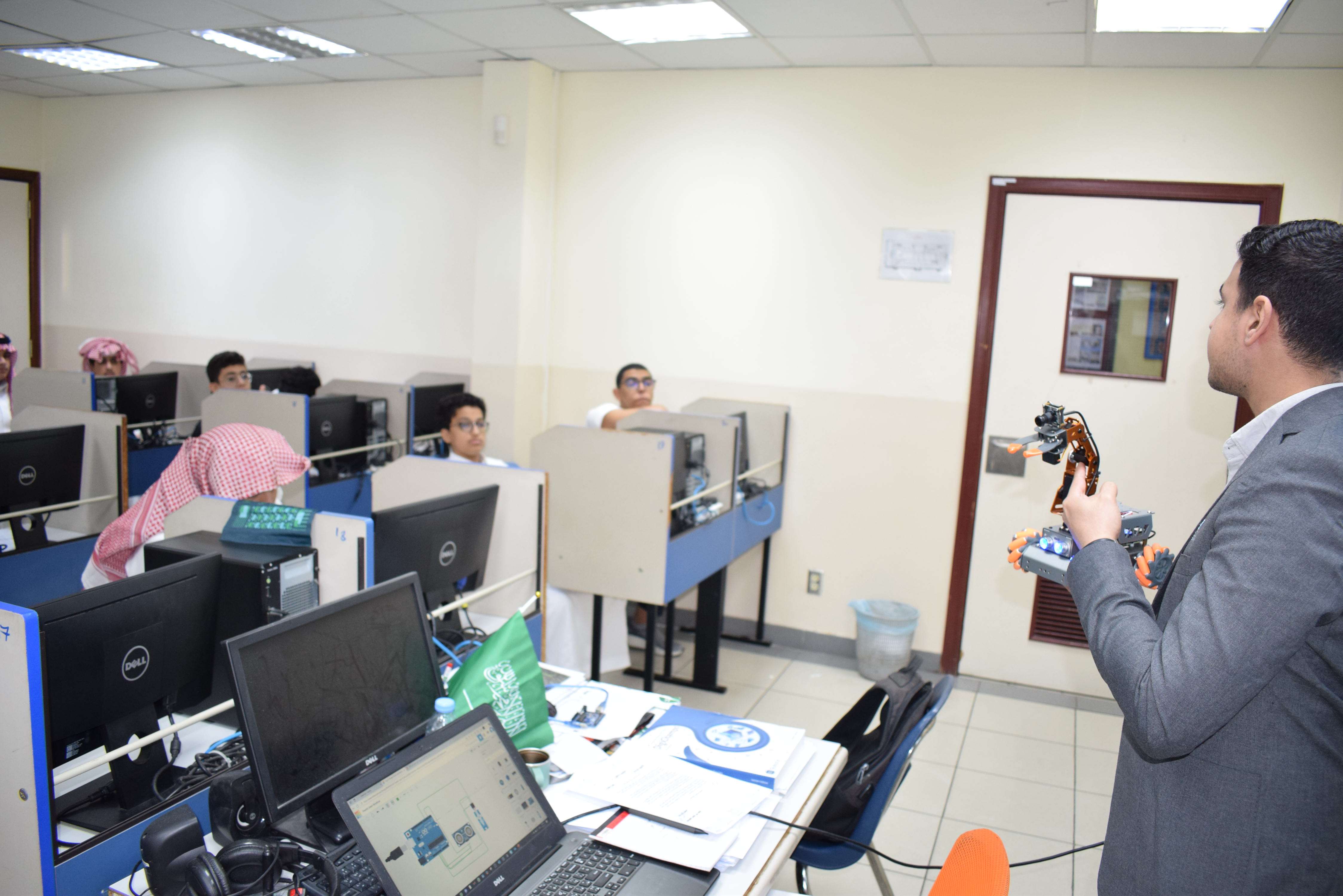 The ICT department at Al-Hussan Secondary School for Boys in Dammam held on Wednesday 1/10/2025 the first STEM sessions, where students learned how to use the Tinker cad simulation program to design and program electronic parts. The students then moved to the STEM lab to learn about the main components of sensors, motors, and other tools that they will use in STEM projects. They were also briefed on modern robots and tried them out practically, and their main parts were explained, which sparked the students’ interest and enthusiasm to start implementing project ideas