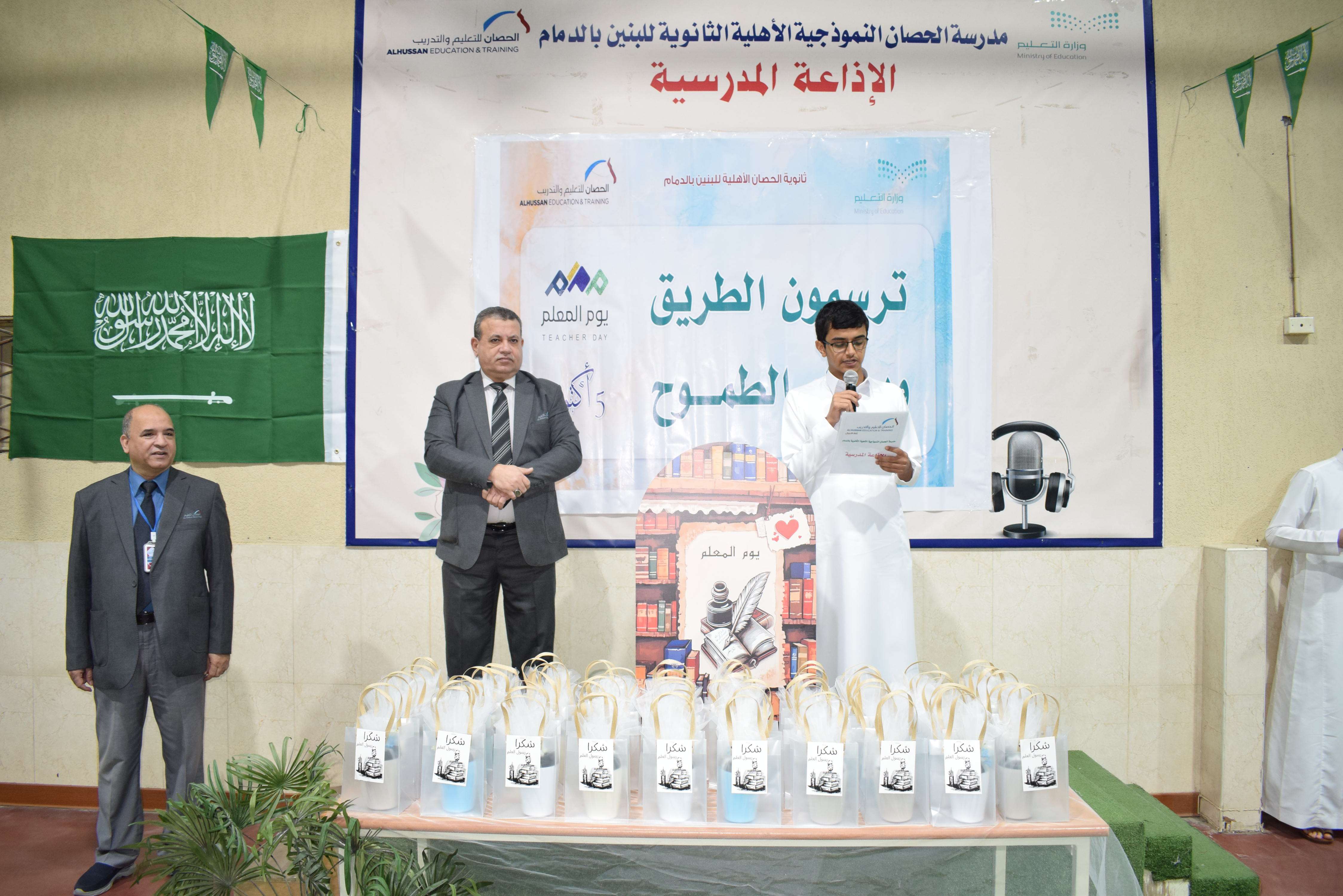 احتفت ثانوية الحصان الأهلية للبنين يوم الأحد الموافق الخامس من أكتوبر لعام 2025م، بالدمام باليوم العالمي للمعلم، تقديرًا لعطائهم وجهودهم في بناء الأجيال وصناعة المستقبل.جاء الاحتفاء عرفانًا بمكانة المعلم ودوره في غرس القيم وتعزيز العلم والخلق، فهو ركيزة النهضة وعماد التقدم. وقد تخلل الاحتفال أجواء من الفرح والتقدير.