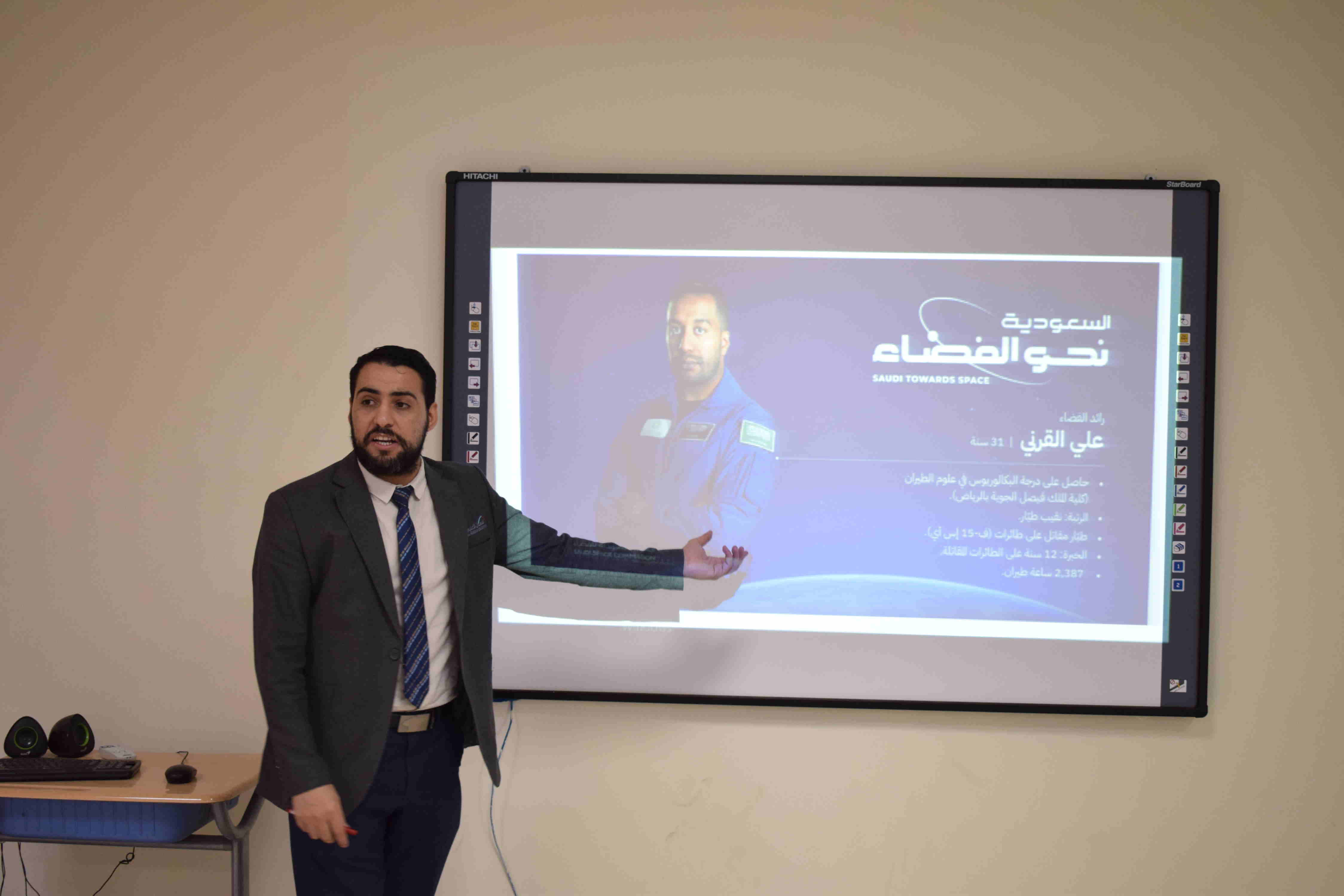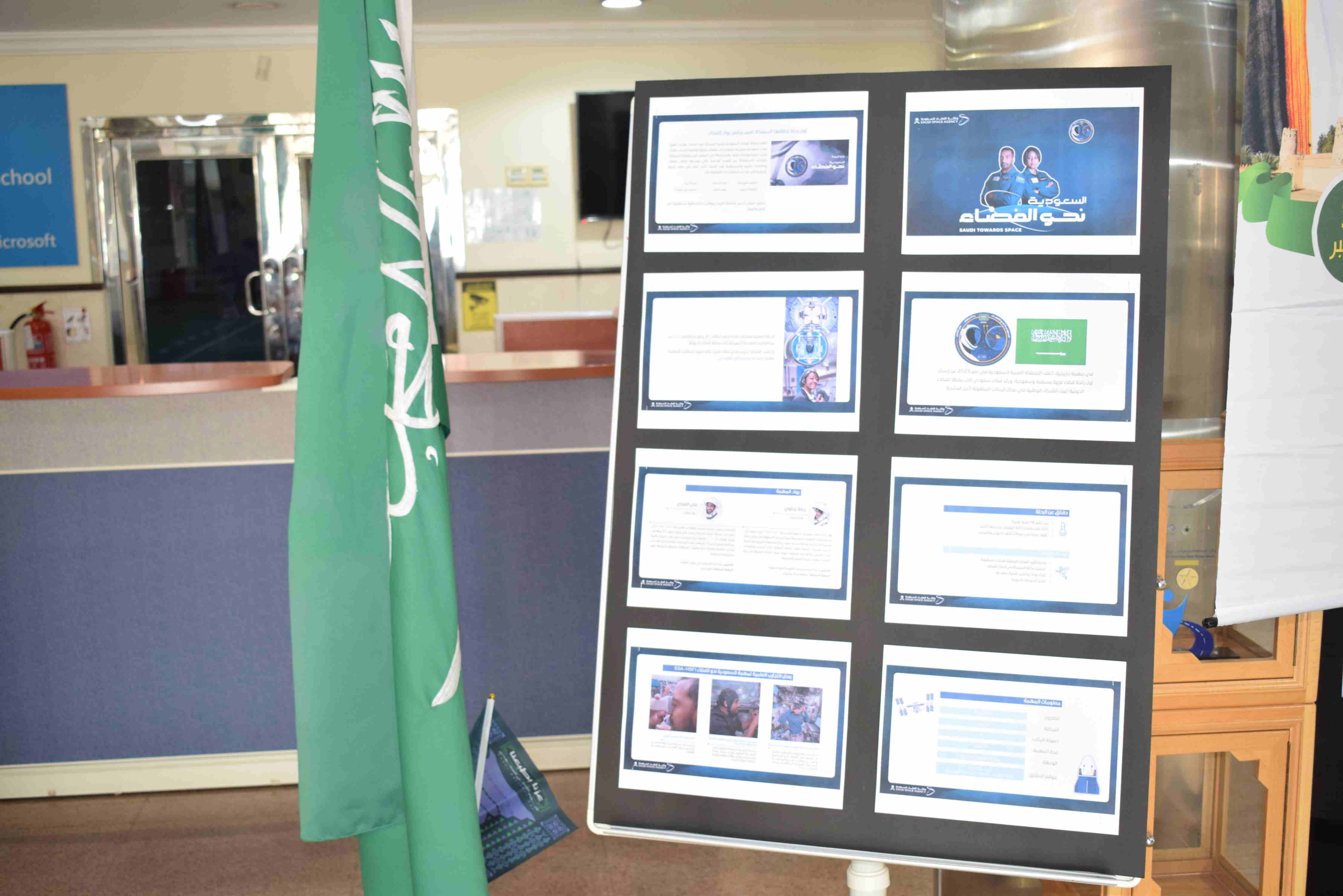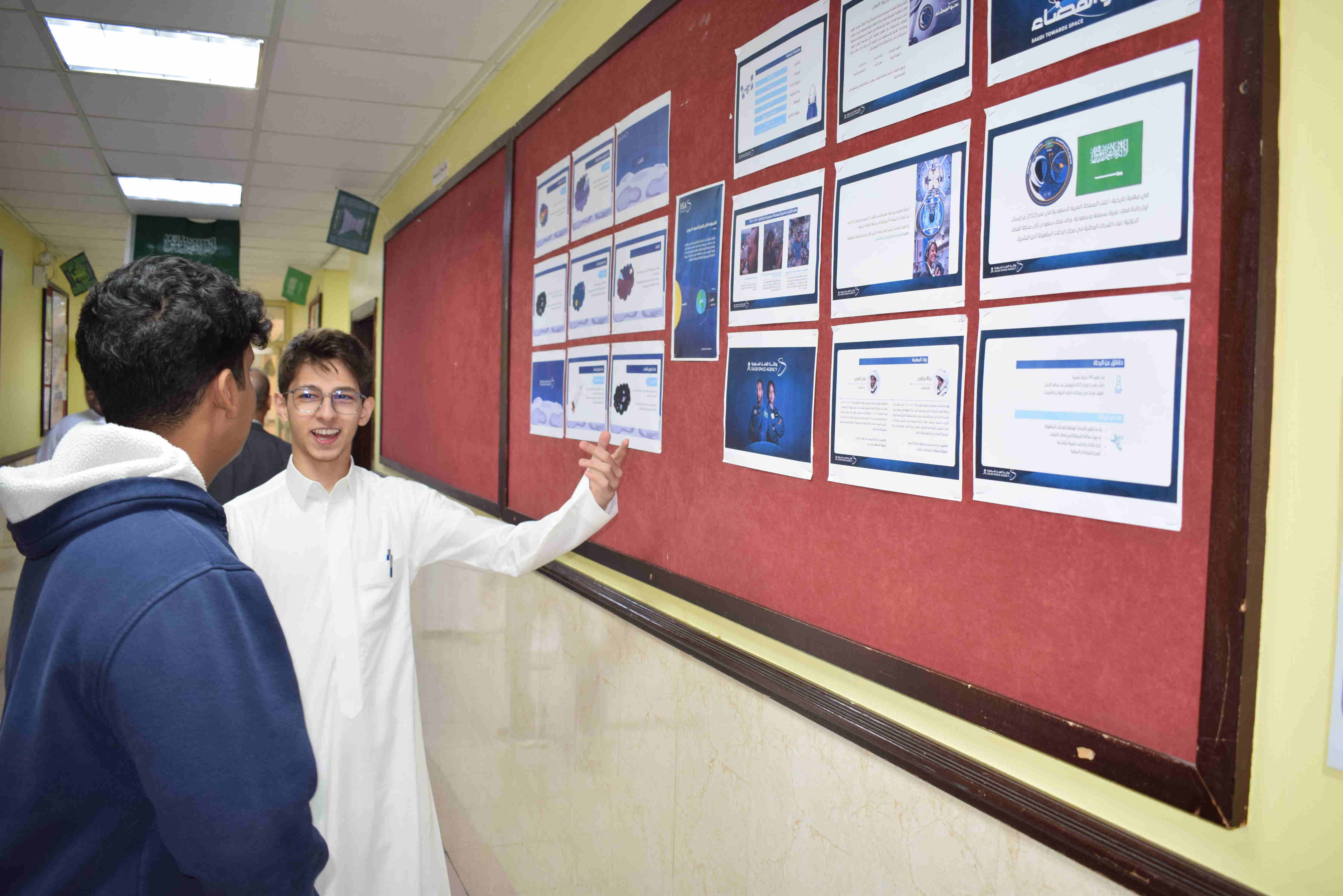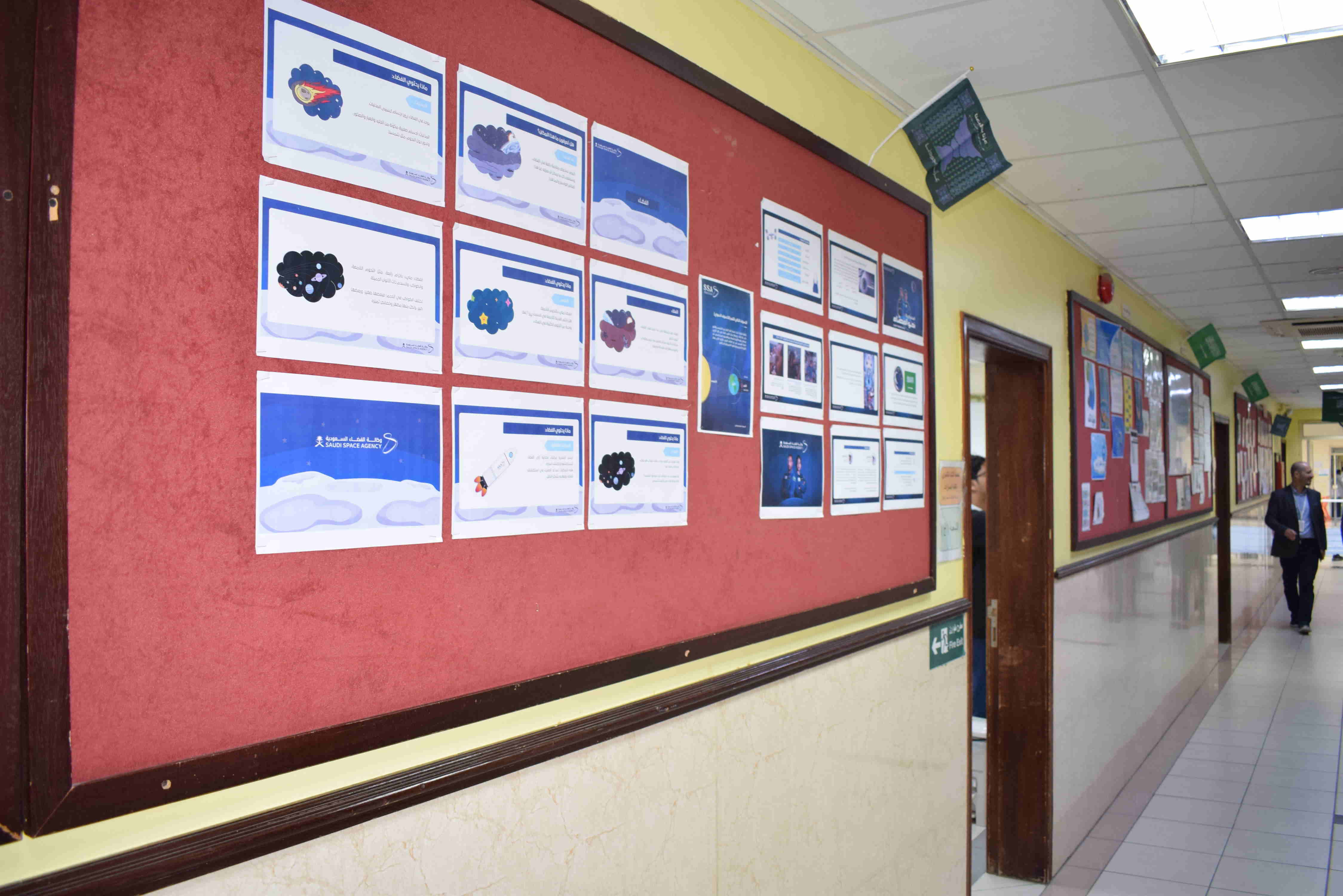 كما أعدّت المدرسة لوحة تثقيفية في مدخل المدرسة بعنوان "السعودية نحو الفضاء"، إلى جانب نشرات ومقالات توعوية عُلقت في الممرات لإثراء الوعي العلمي وتعزيز الفخر بإنجازات المملكة في مجال الفضاء.