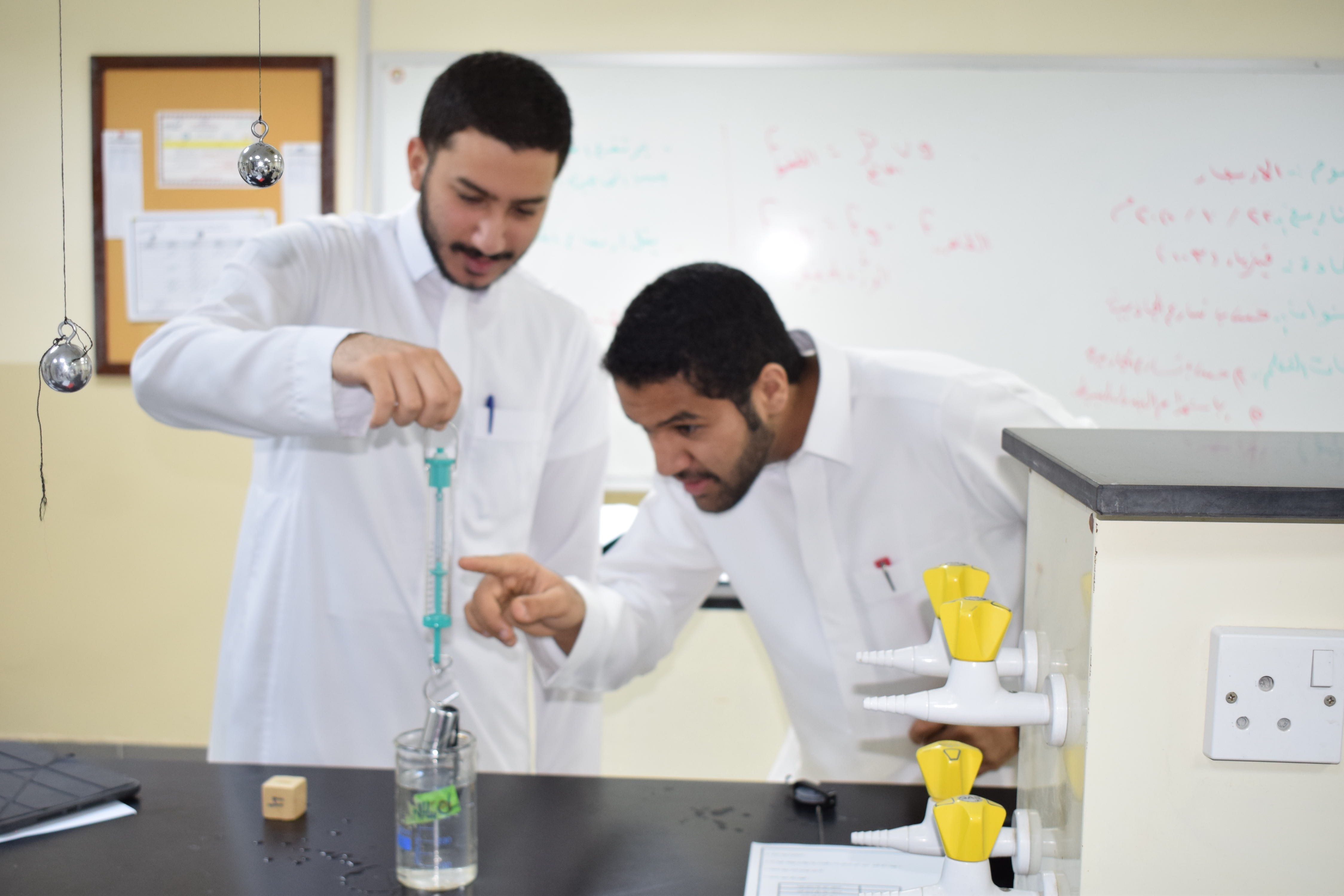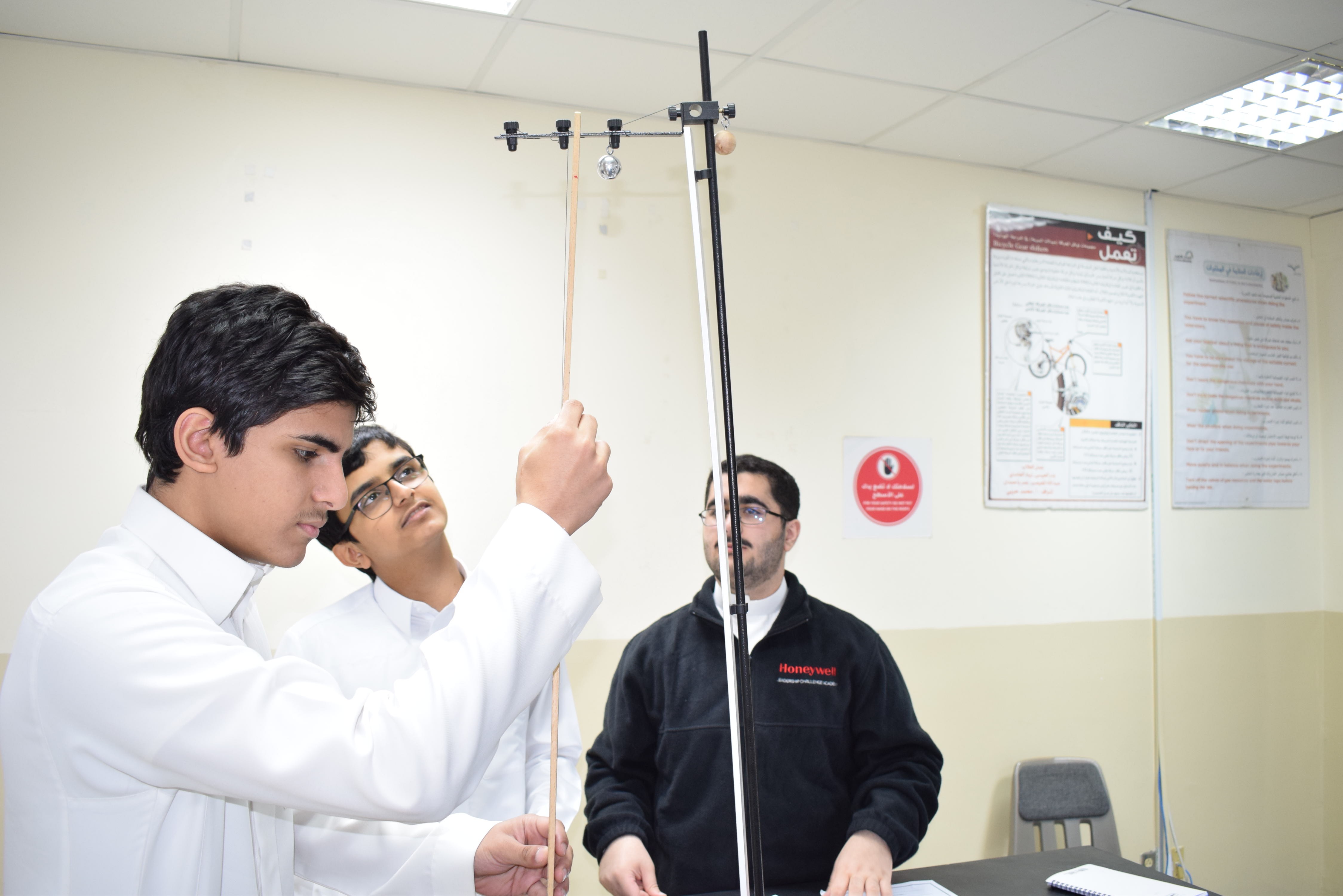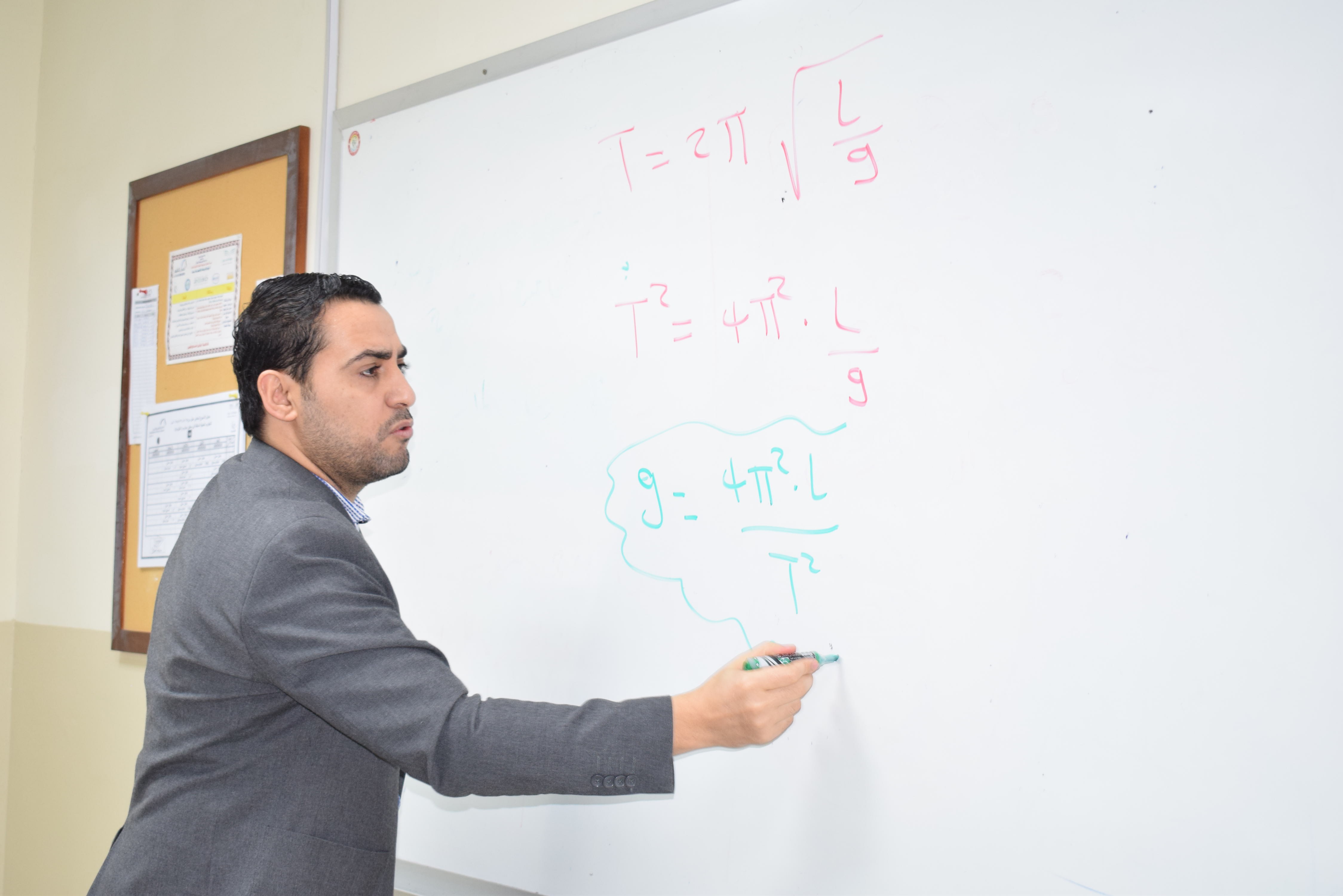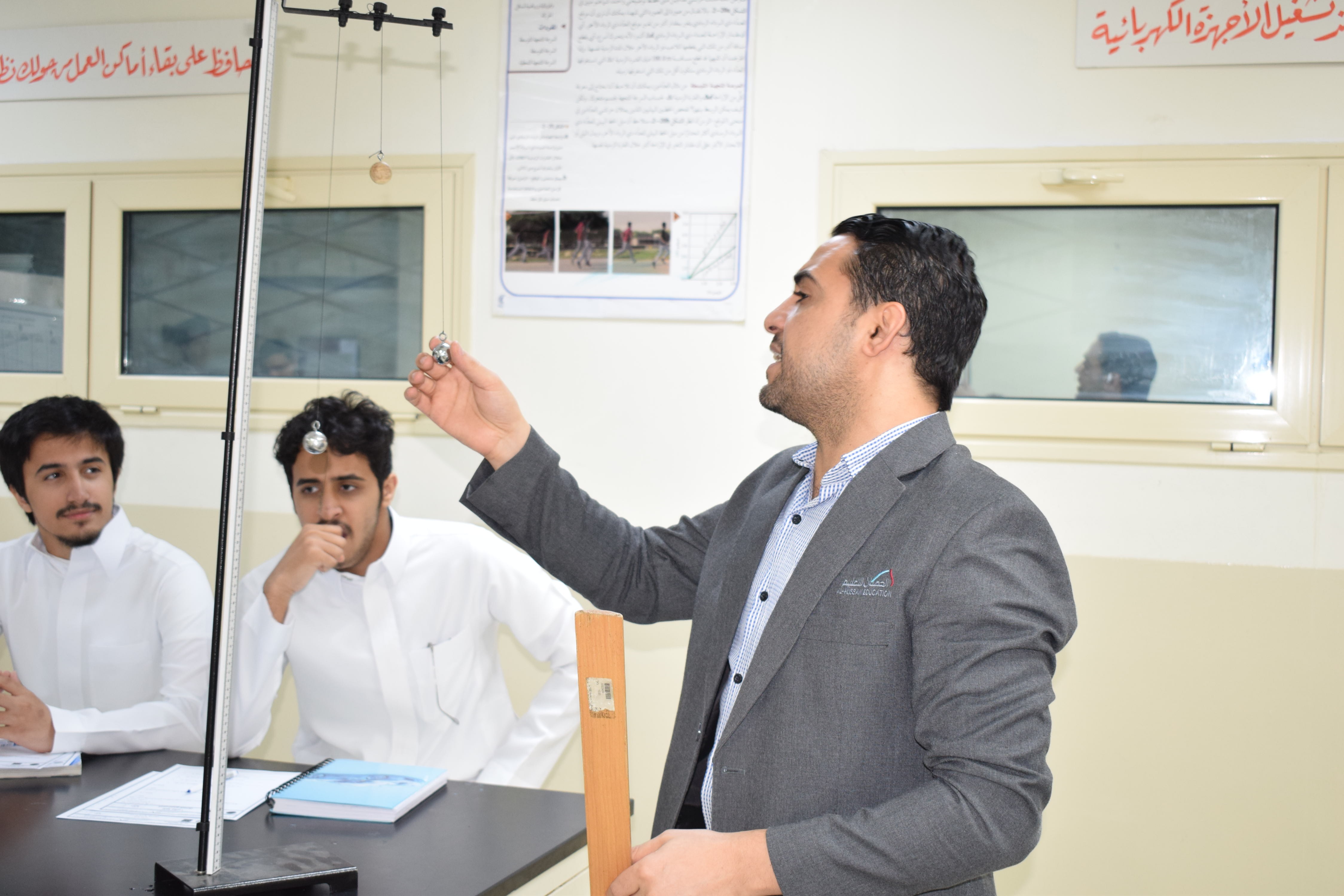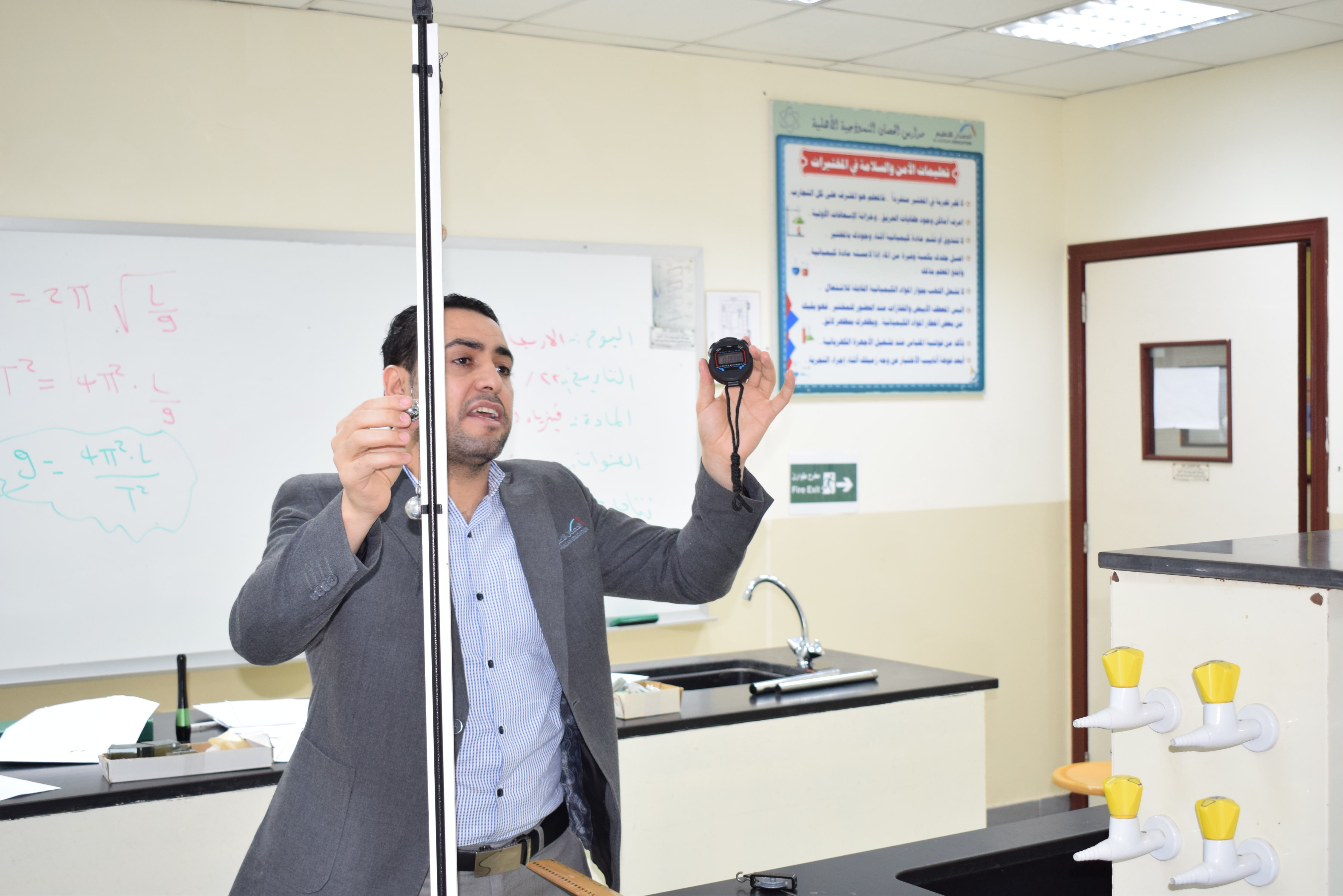 استخدم الطلاب البندول البسيط لقياس طول الخيط والزمن الدوري بواسطة ساعة الإيقاف، ومن خلال معادلة الزمن الدوري للبندول تم حساب تسارع الجاذبية الأرضية عمليًا.