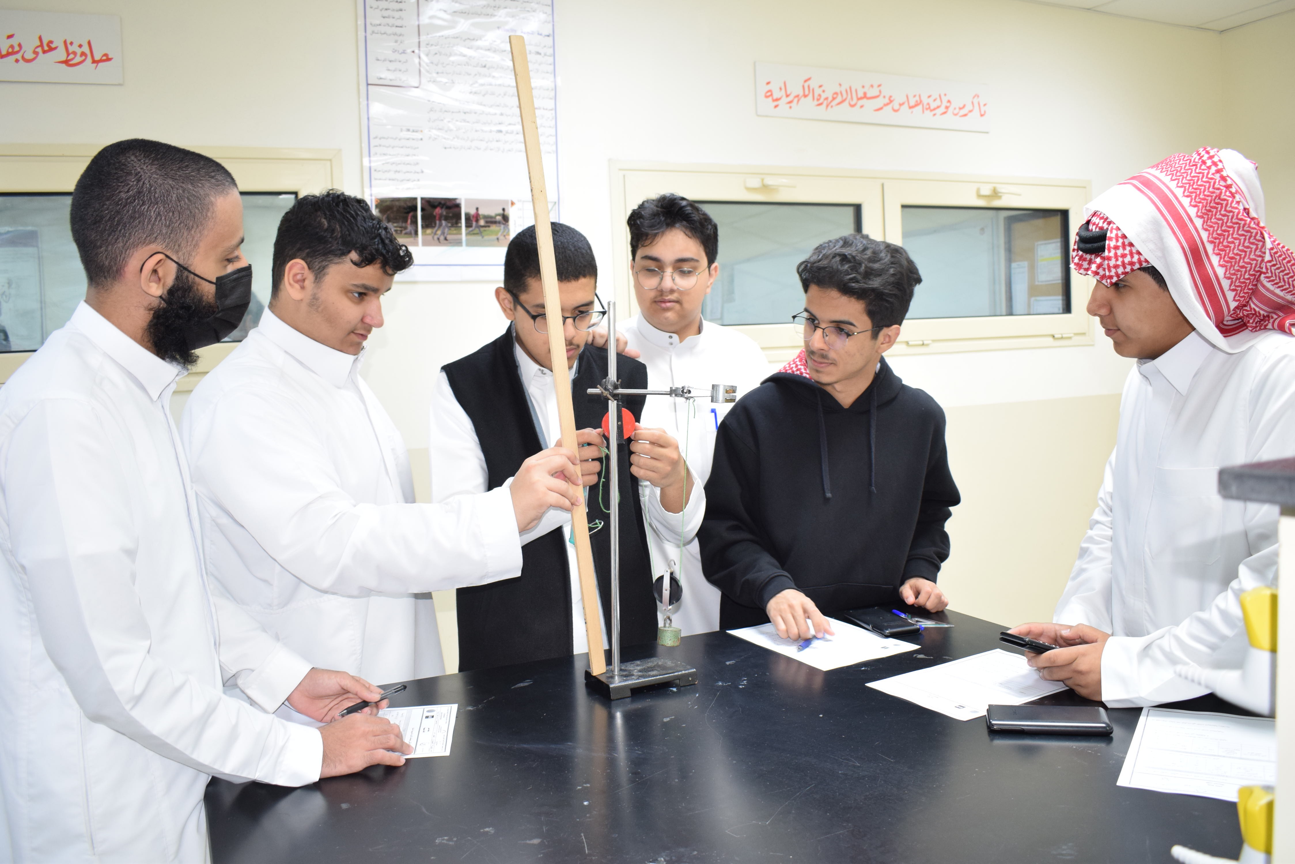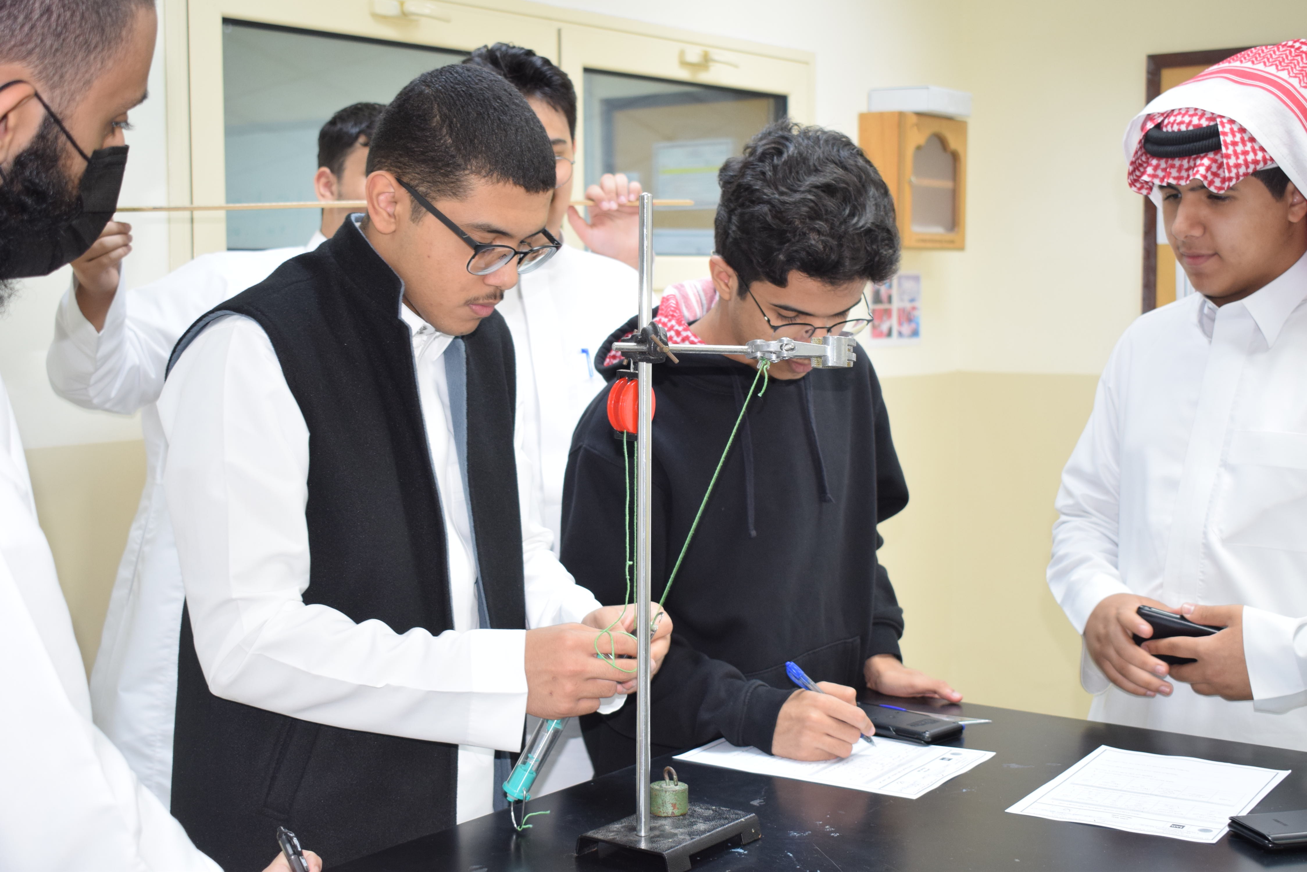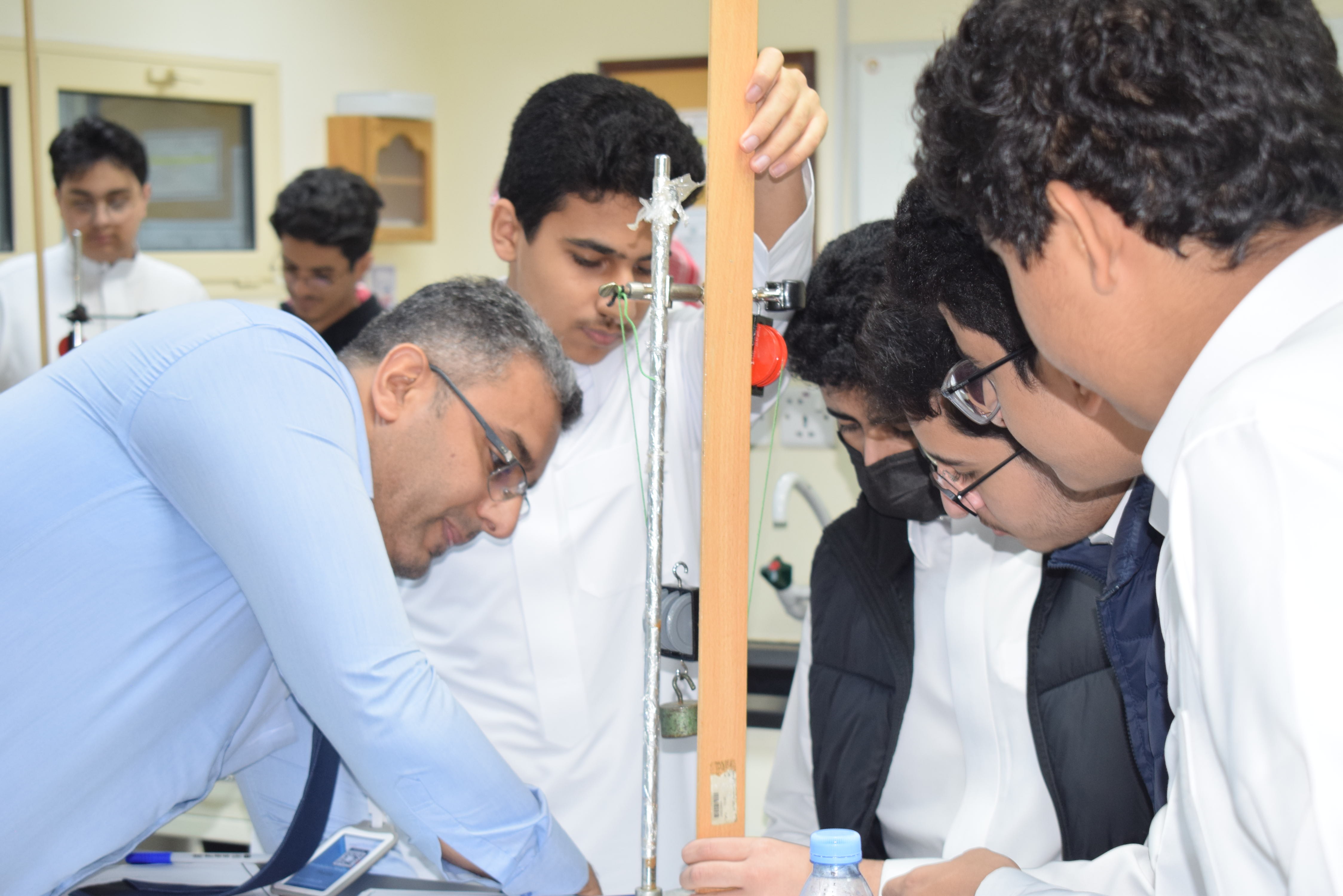 قام قسم الفيزياء بثانوية الحصان الأهلية للبنين بالدمام يوم الأربعاء الموافق 5-11-2025م بعمل تجربة علمية لطلاب الصف الثاني الثانوي حيث أجرى الطلاب تجربة الآلات البسيطة وكان الهدف منها قياس كفاءة رافعة من بكرتين حيث قام الطلاب بقياس الشغل الناتج والمبذول ومنها تم حساب الكفاءة .