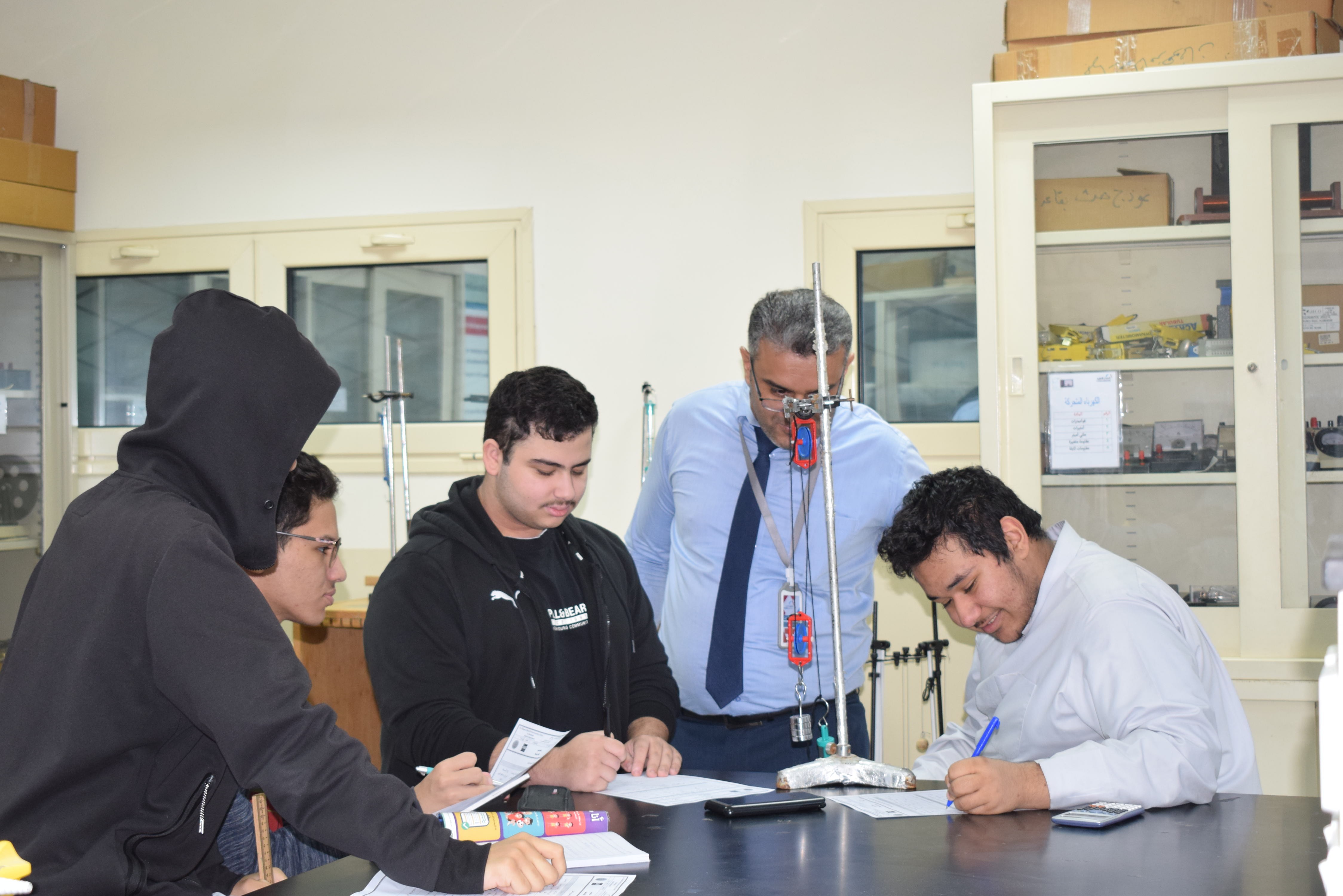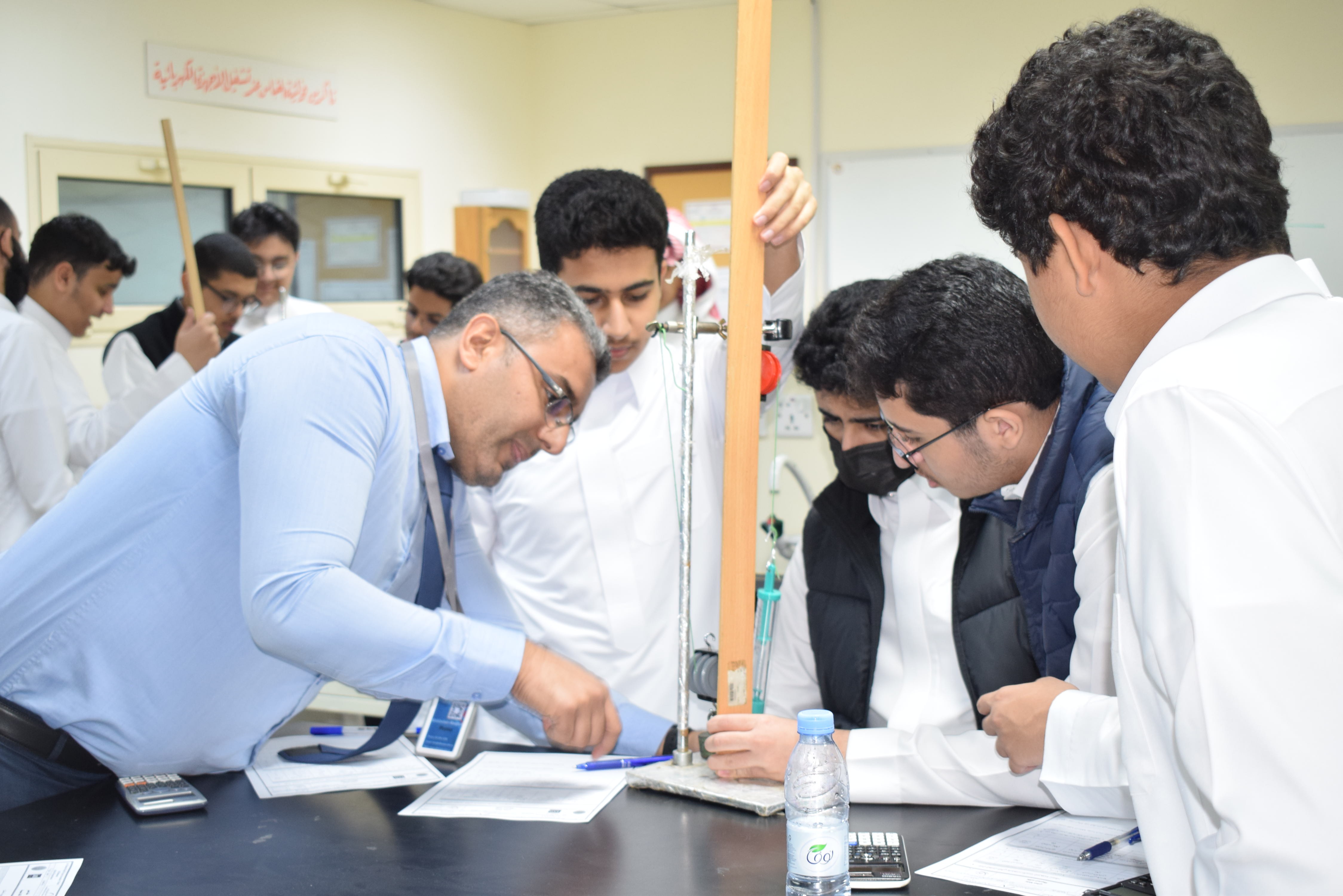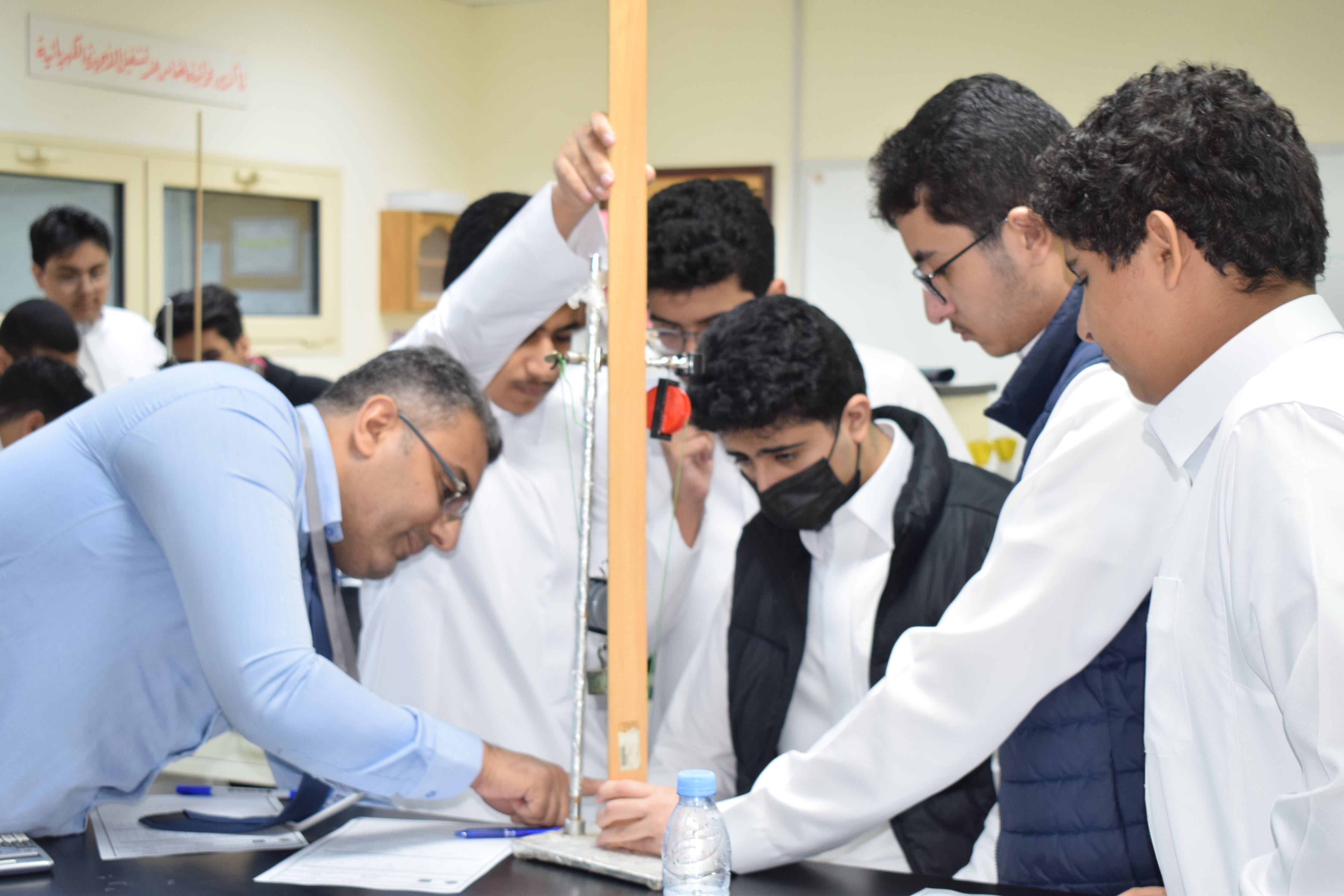 قام قسم الفيزياء بثانوية الحصان الأهلية للبنين بالدمام يوم الأربعاء الموافق 5-11-2025م بعمل تجربة علمية لطلاب الصف الثاني الثانوي حيث أجرى الطلاب تجربة الآلات البسيطة وكان الهدف منها قياس كفاءة رافعة من بكرتين حيث قام الطلاب بقياس الشغل الناتج والمبذول ومنها تم حساب الكفاءة .