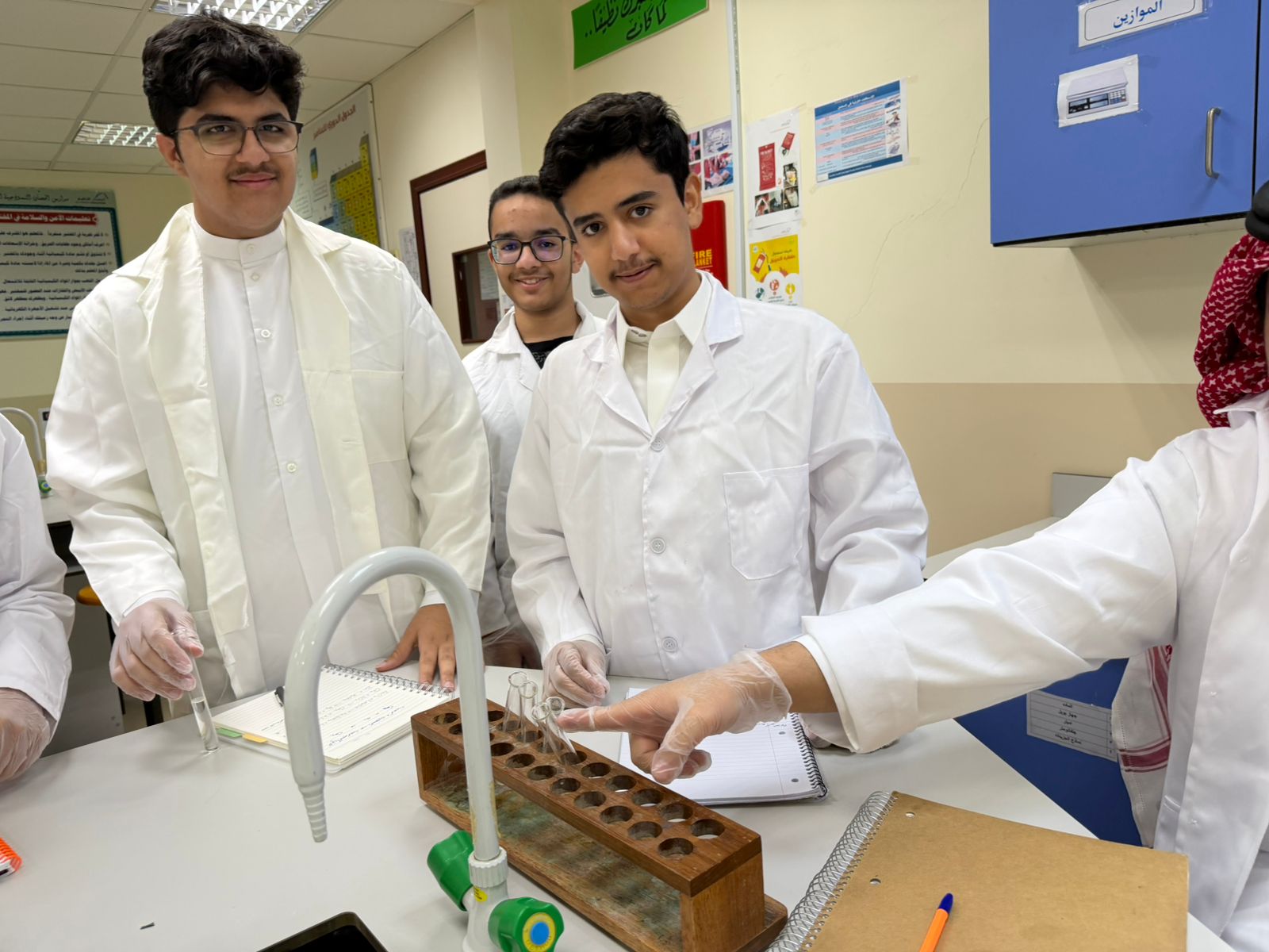 قام قسم الكيمياء بثانوية الحصان الأهلية للبنين بالدمام يوم الخميس الموافق 6-11-2025م بعمل تجربة علمية لطلاب الصف الثاني الثانوي حيث قام الطلاب بإجراء تفاعلات الاحلال البسيط وإلاحلال المزدوج ومشاهدة تصاعد الغاز وتكون الراسب من خلال إضافة كبريتات النحاس الثنائي إلى هيدروكسيد الصوديوم.