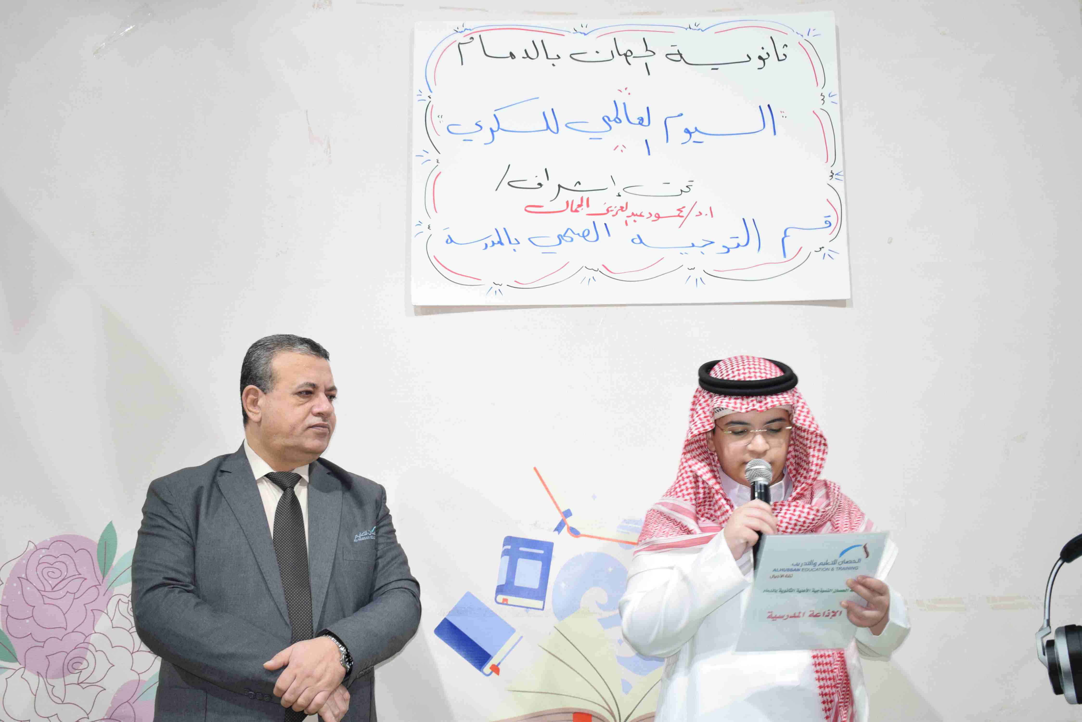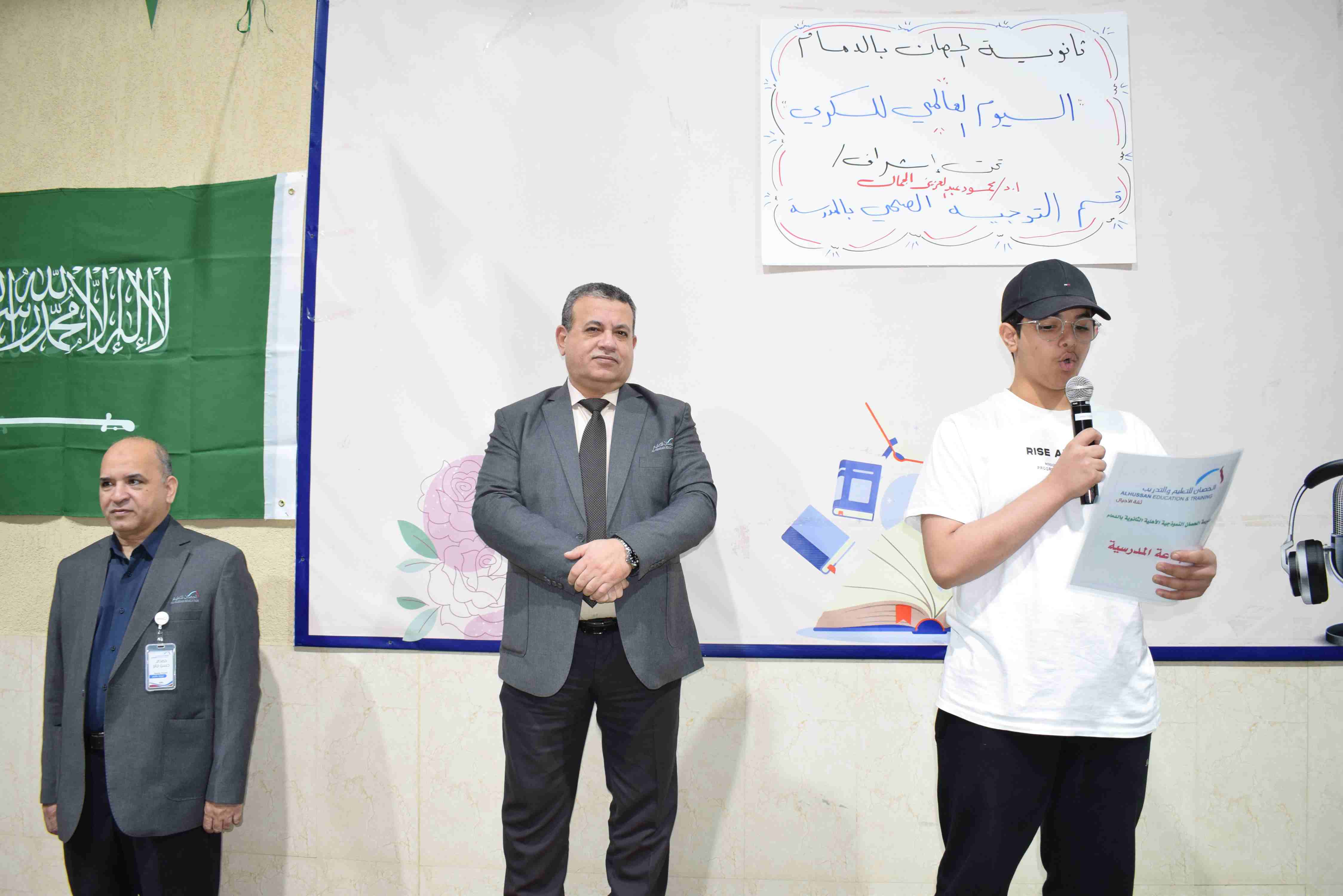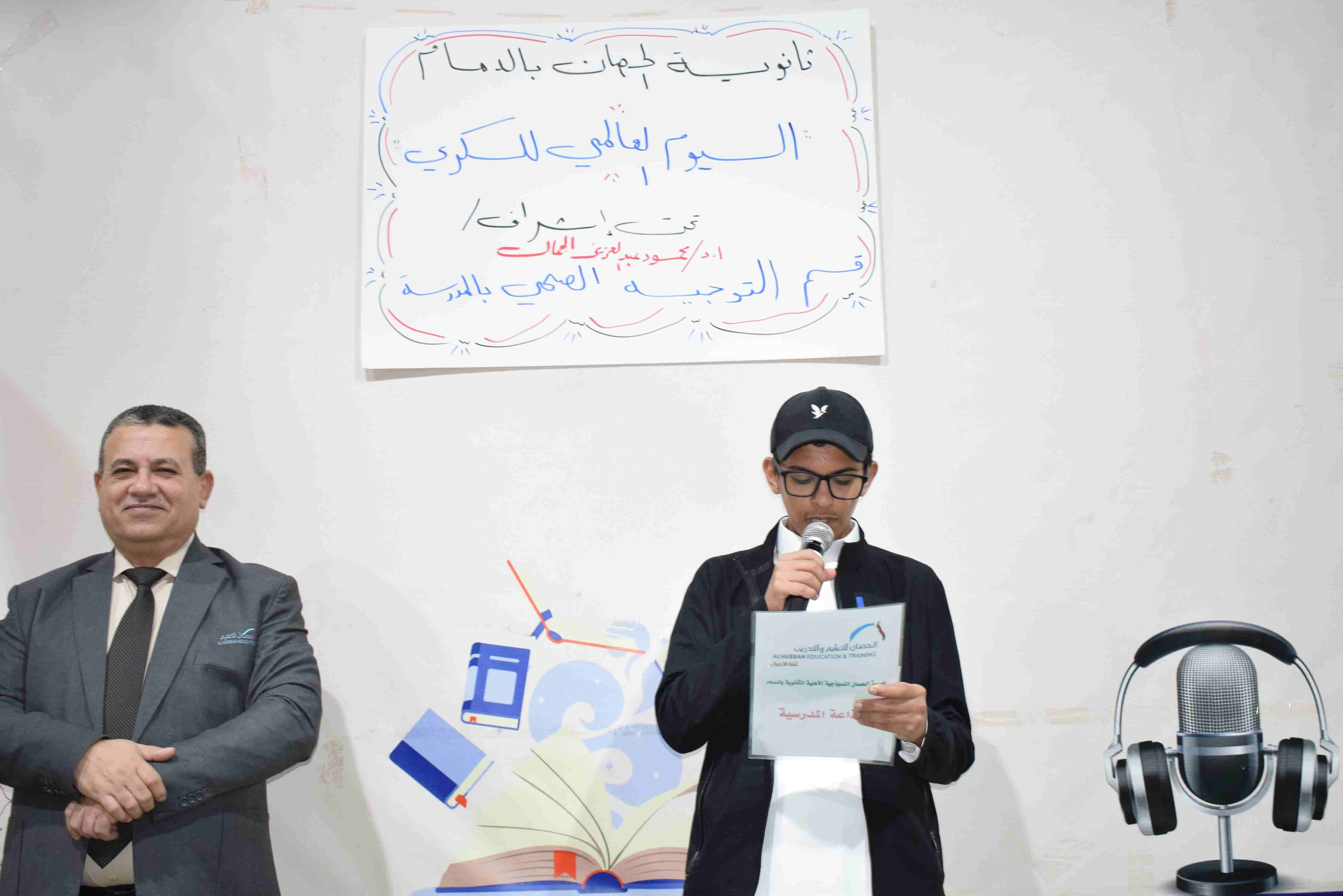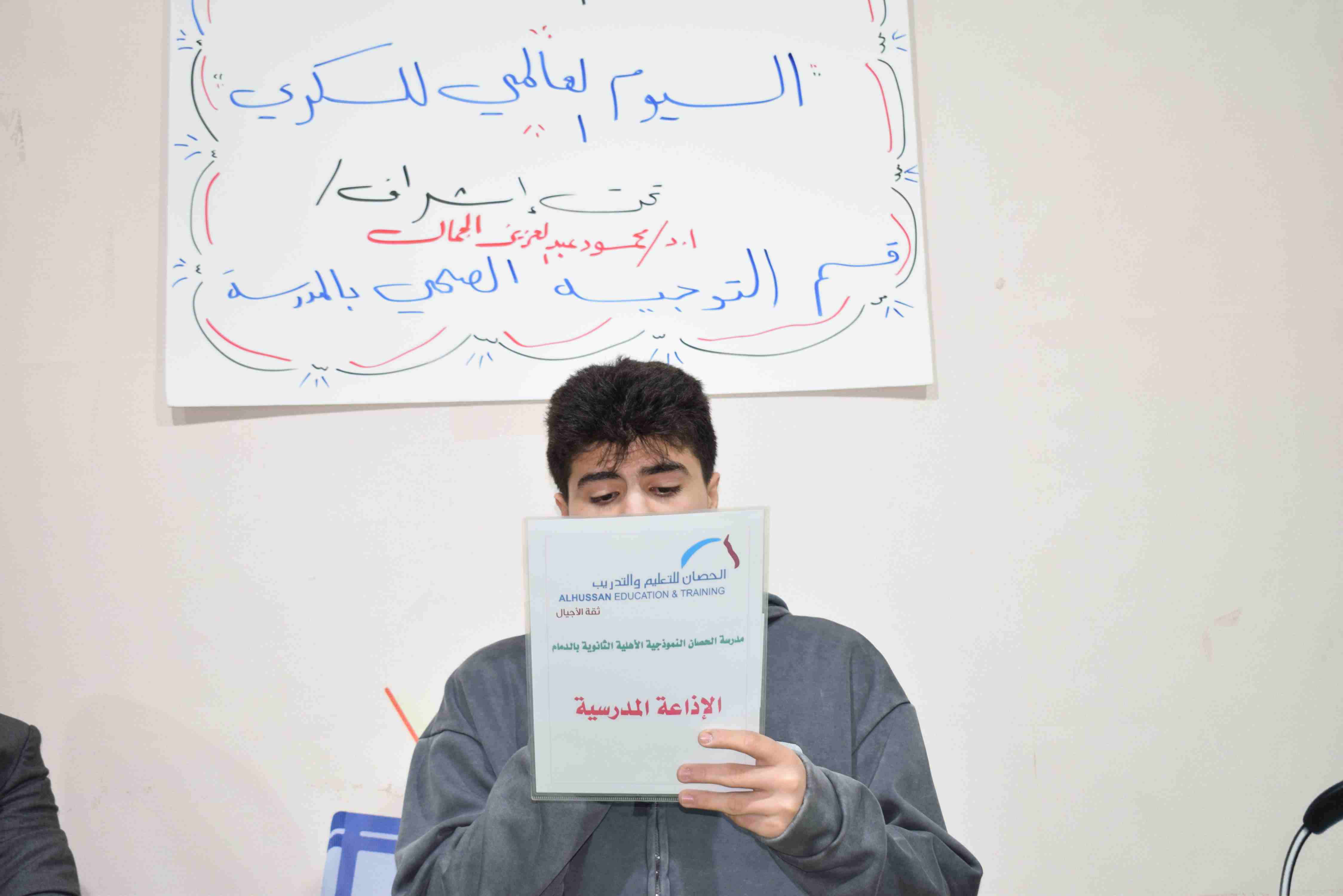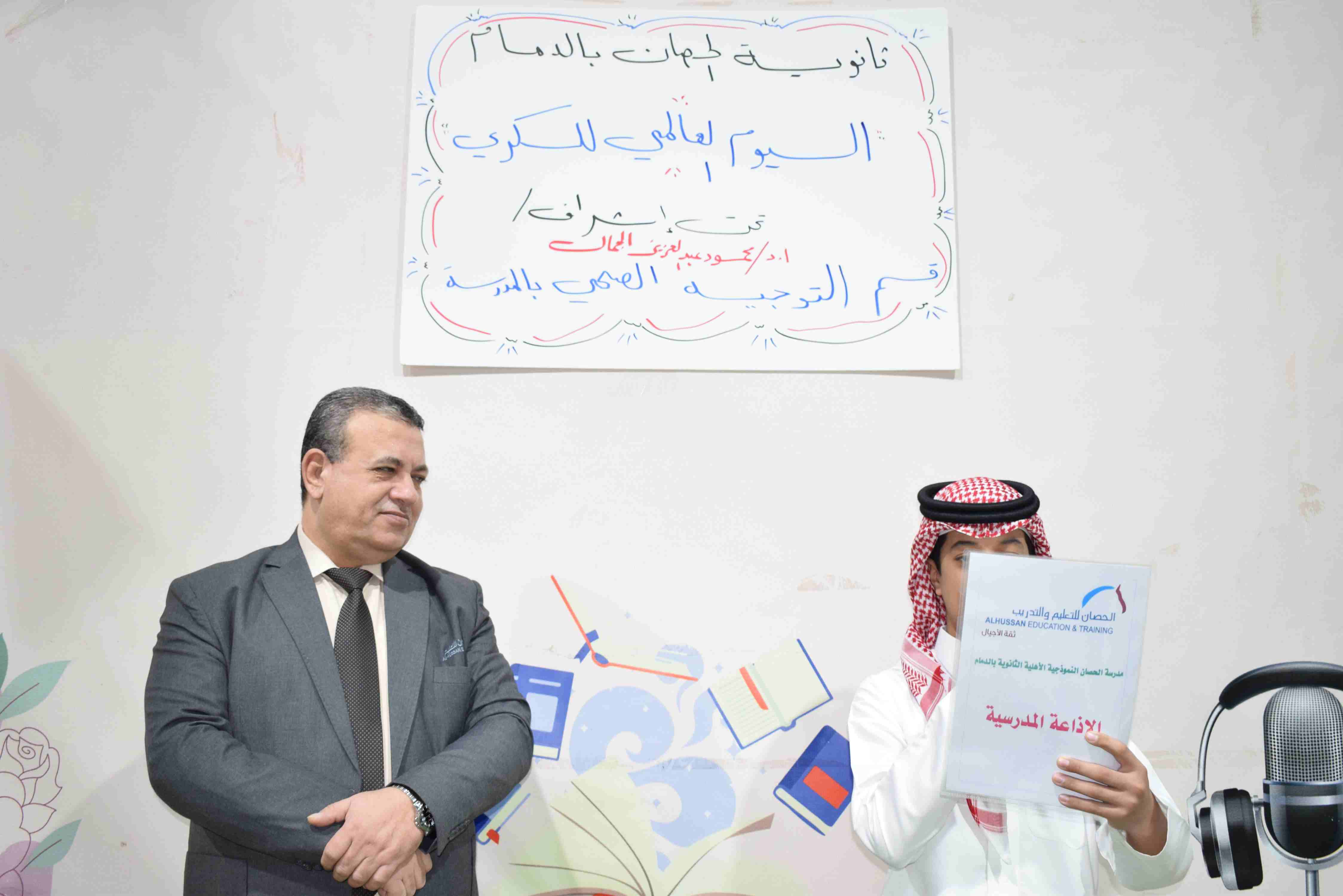 قدم قسم التوجيه الصحي بثانوية الحصان الأهلية للبنين بالدمام محاضرة مميزة بمناسبة اليوم العالمي للسكري خلال الإذاعة الصباحية وذلك يوم الإثنين 17-11-2025م ، شملت أهم المعلومات والموانع الصحية بأسلوب مبسّط وواضح للطلاب، حيث شهدت المحاضرة تفاعلاً كبيراً من الطلاب والمعلمين، مما ساهم في نشر الوعي وتعزيز ثقافة الاهتمام بالصحة داخل المدرسة.