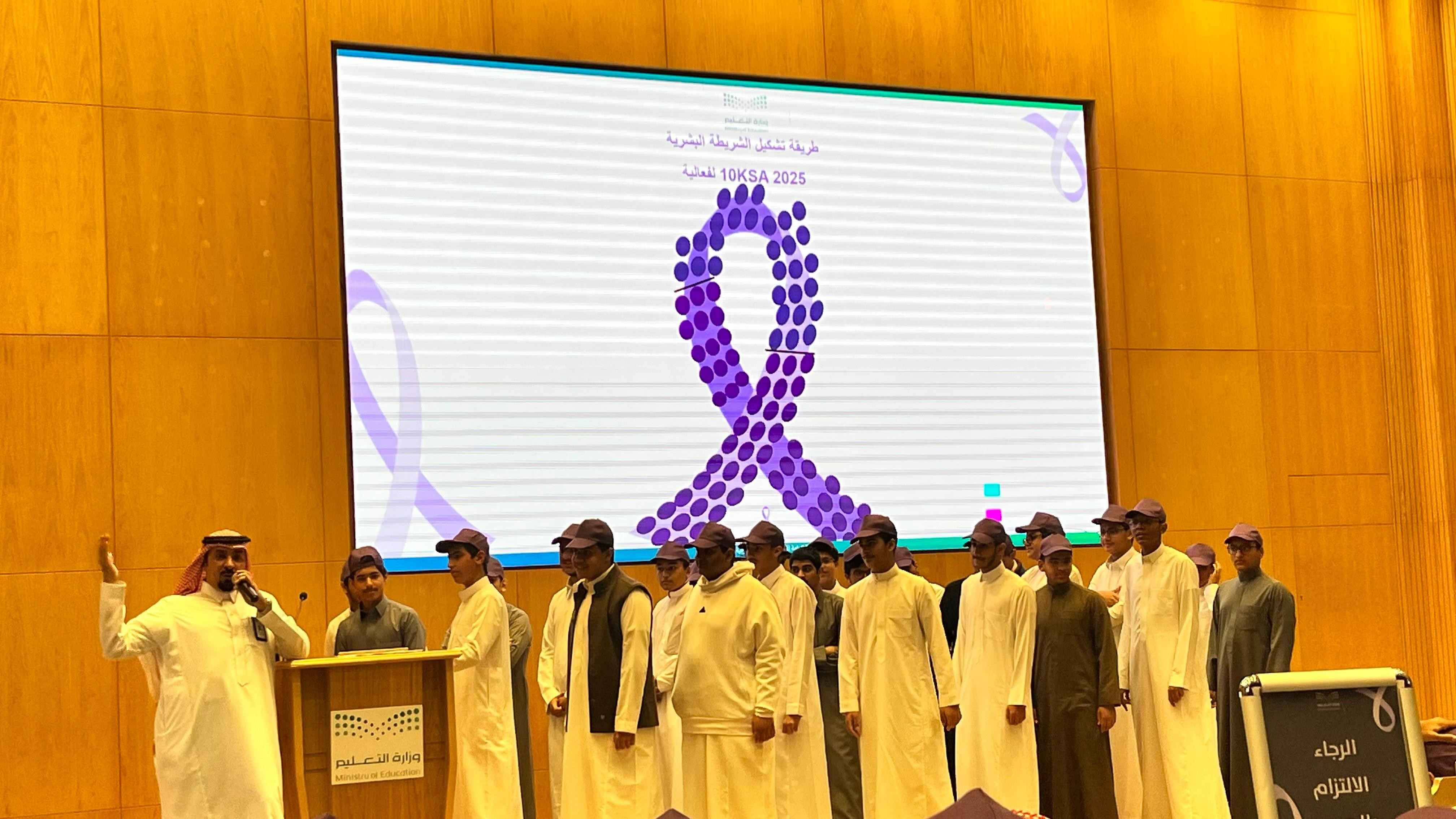 قام قسم النشاط الطلابي بثانوية الحصان الأهلية للبنين بالدمام يوم الأحد 7-12-2025م ، بتنفيذ مشاركة ميدانية متميزة، حيث تم خروج مجموعة من الطلاب إلى الإدارة العامة للتعليم بالمنطقة الشرقية، وذلك للمساهمة في تشكيل الشعار البشري للشريطة البنفسجية ضمن مبادرة 10KSA 2025، التي أقيمت برعاية سعادة المدير العام للتعليم بالمنطقة الشرقية.
