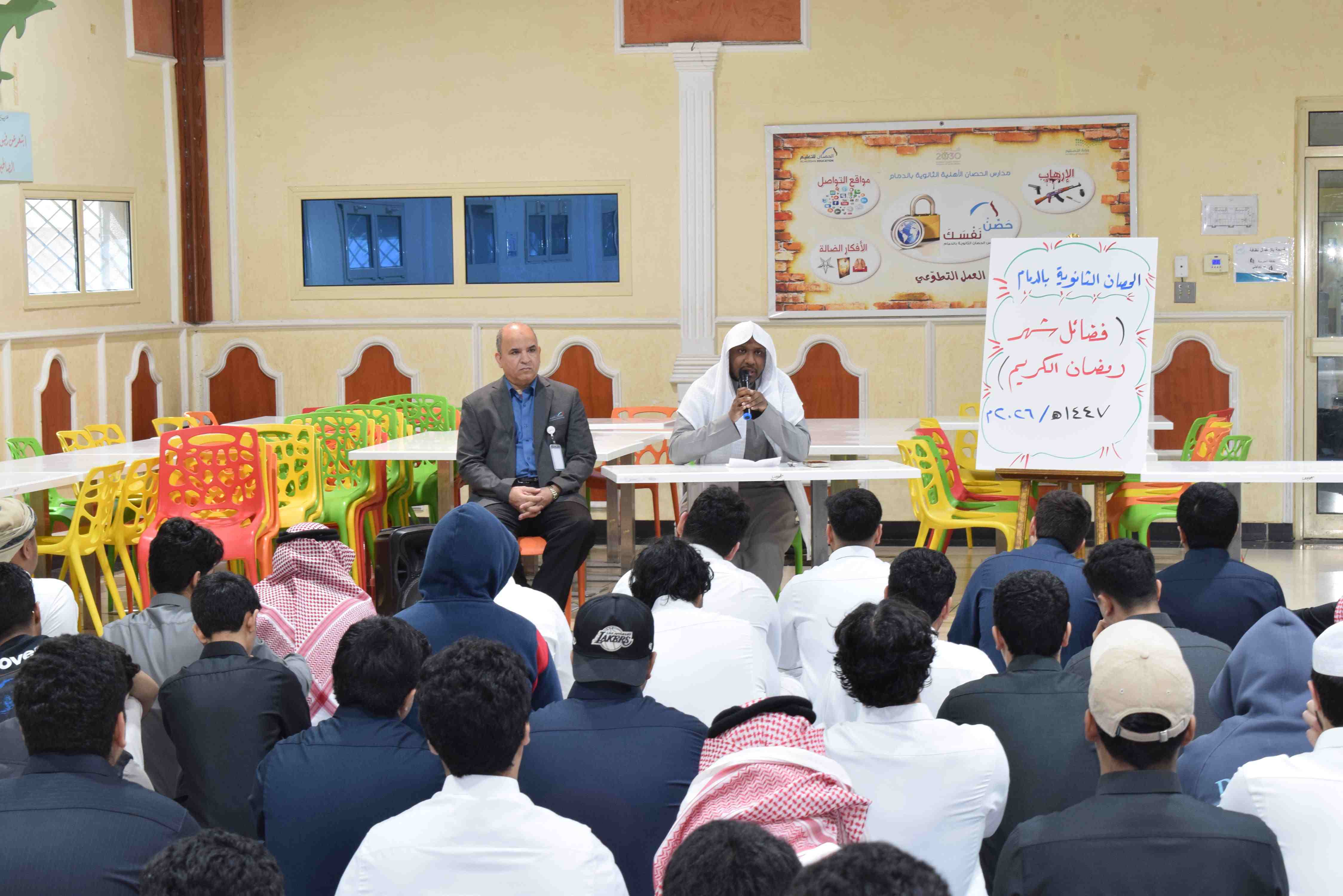 نظمت إدارة مدارس الحصان الثانوية للبنين بالدمام ندوة دينية بعنوان" فضائل شهر رمضان المبارك 2026م"، وذلك في إطار حرصها على تعزيز القيم الإسلامية وترسيخ المعاني الإيمانية في نفوس الطلاب.