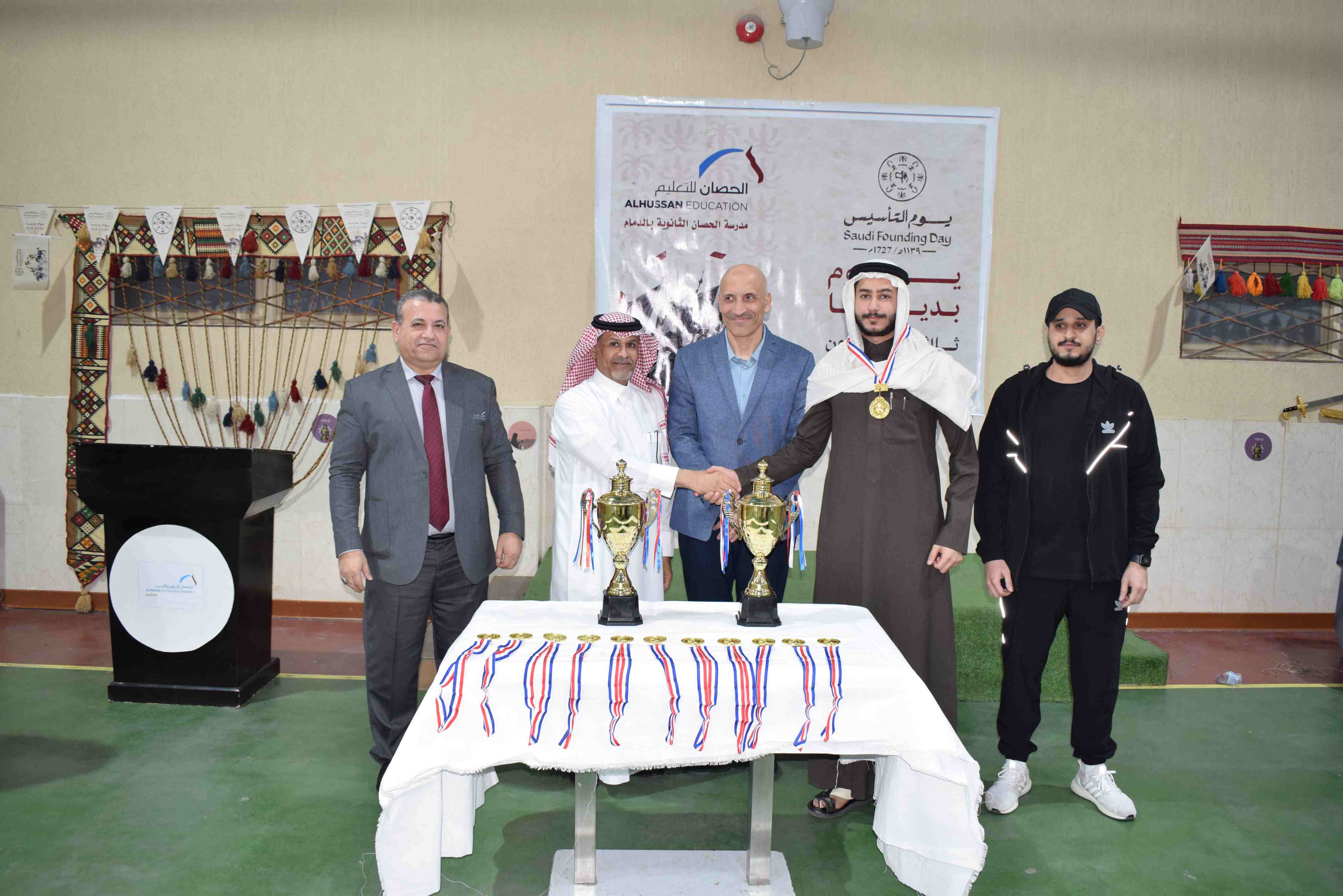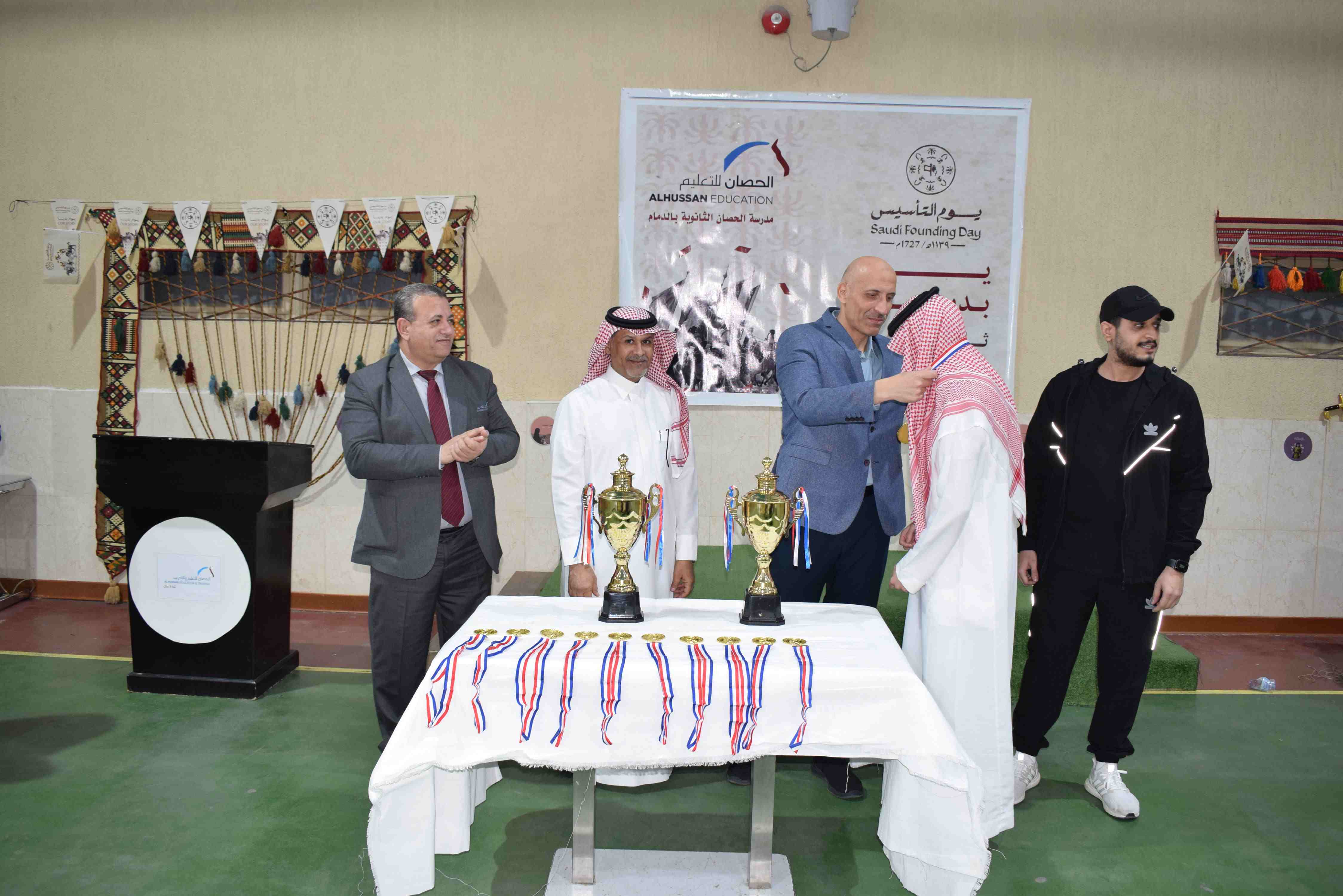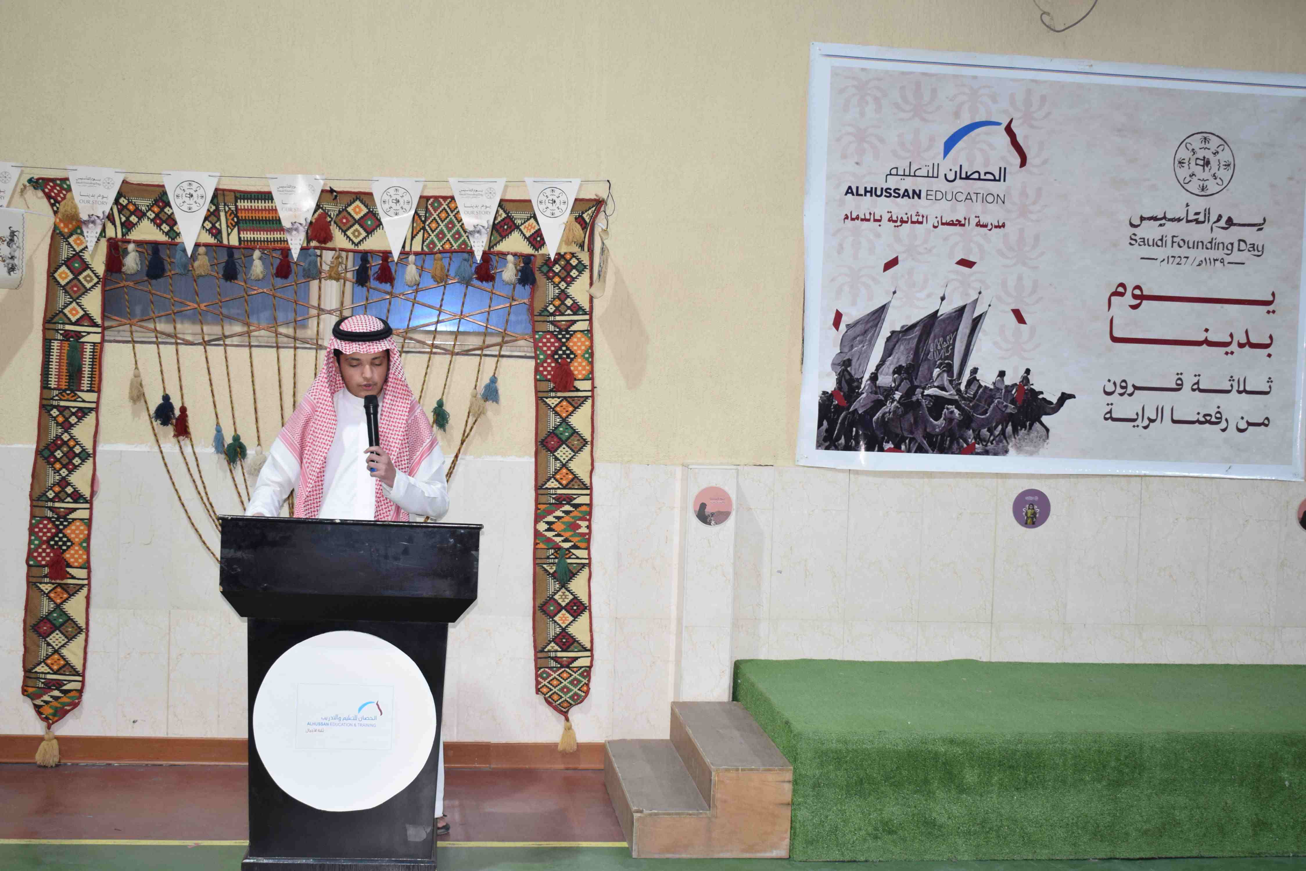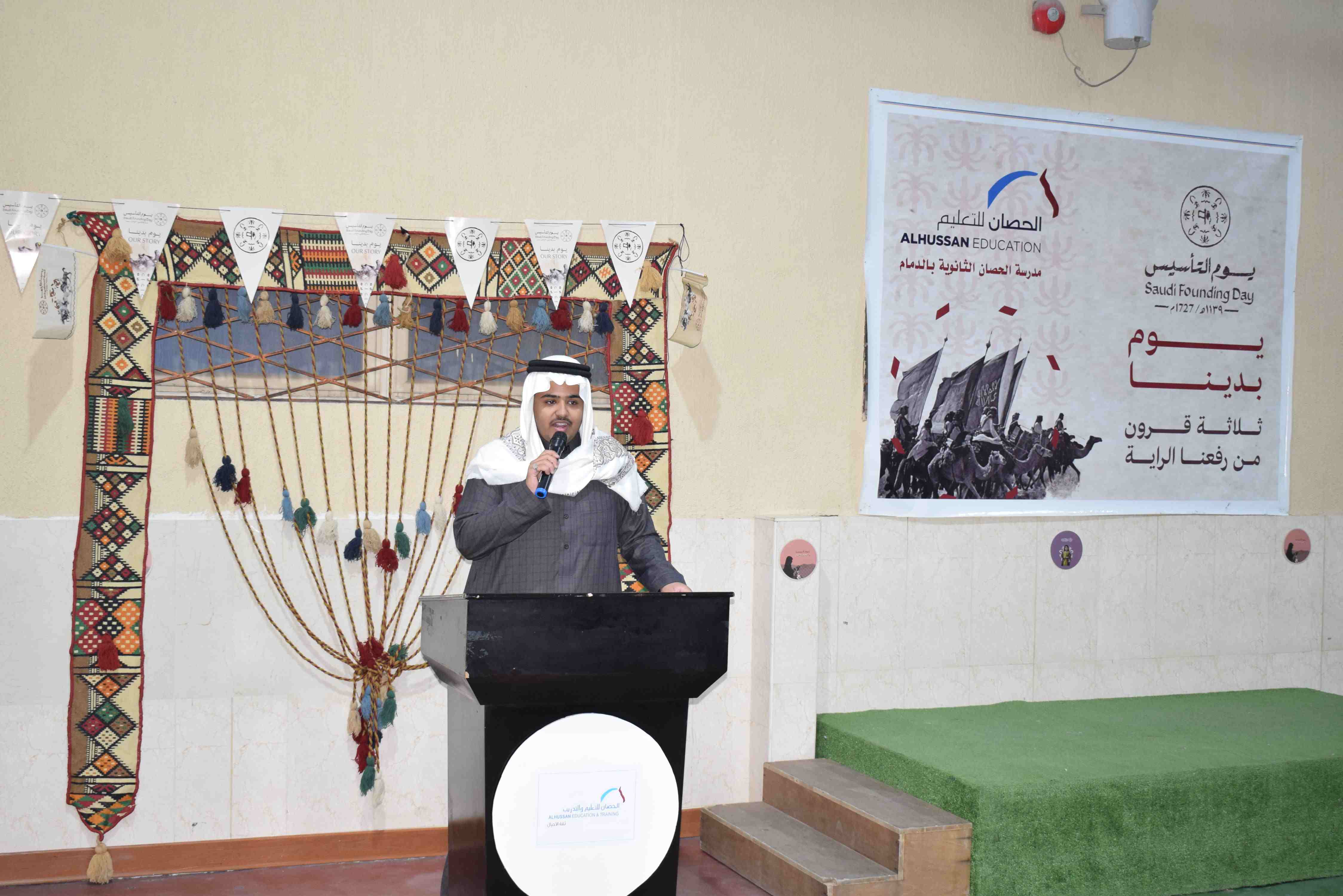 احتفت ثانوية الحصان الأهلية للبنين بالدمام يوم الثلاثاء الموافق 17-2-2026م بذكرى يوم التأسيس لـ المملكة العربية السعودية في أجواء وطنية مميزة عززت مشاعر الفخر والانتماء، حيث اشتمل الحفل على فقرات تعريفية وتوعوية أبرزت العمق التاريخي للمناسبة وأهميتها في ترسيخ الهوية الوطنية لدى الطلاب.