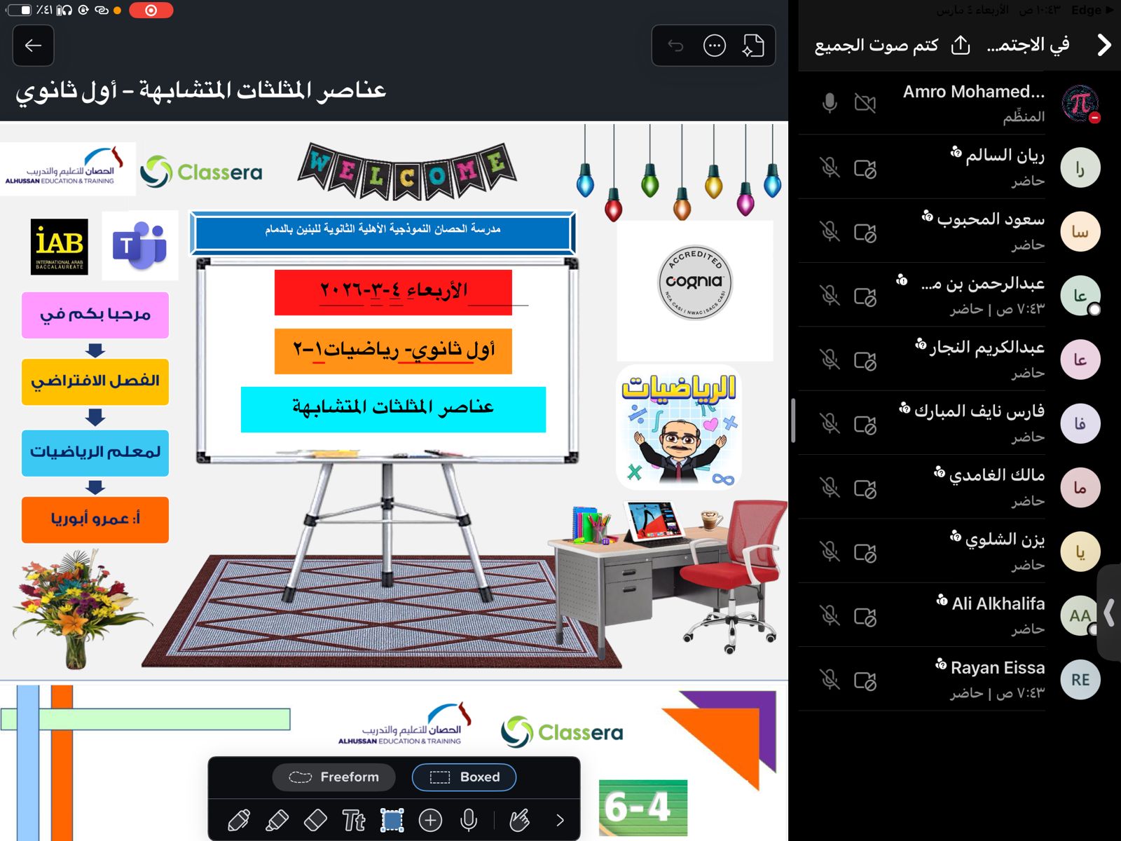 استمرارا للجهود المعطاءة في سبيل خدمة العملية التعليمية قدم معلمو ثانوية الحصان للبنين بالدمام وتزامناً مع قرار تحويل التعليم عن بعد بسبب ظروف الأحوال الجوية, أفضل الدروس التعليمية لأبنائها الطلاب عبر الفصول الافتراضية في نظام التعليم الإلكتروني – كلاسيرا.