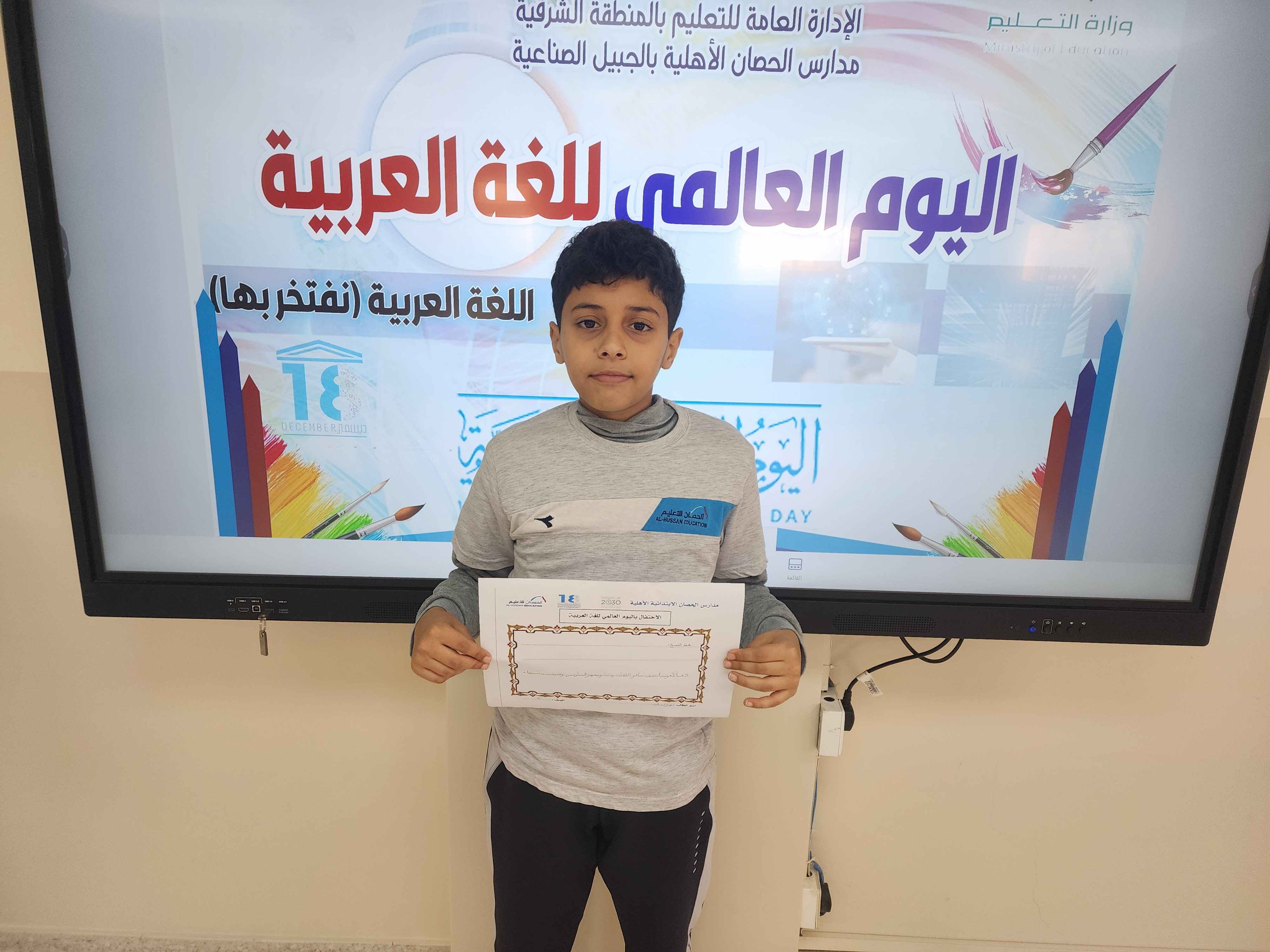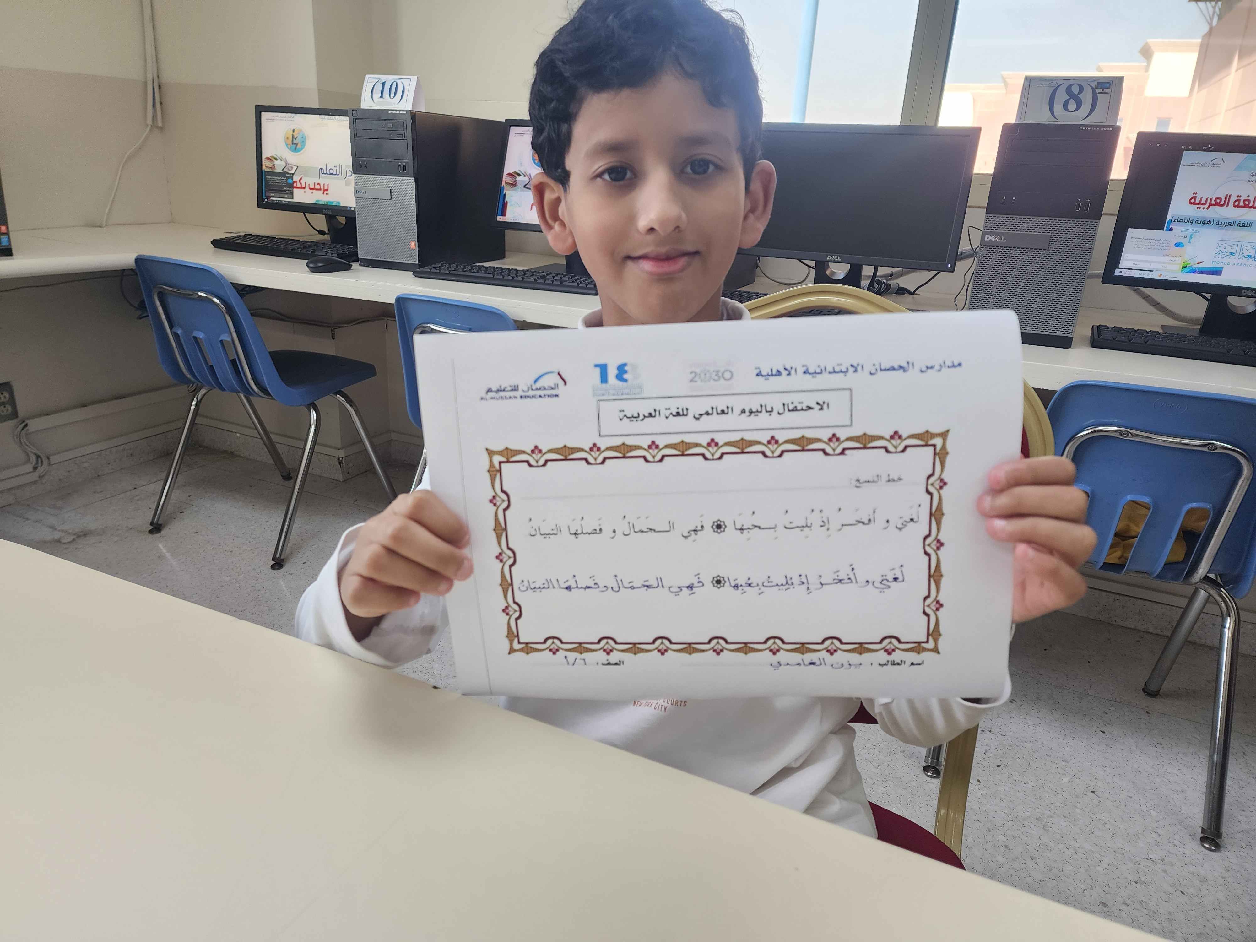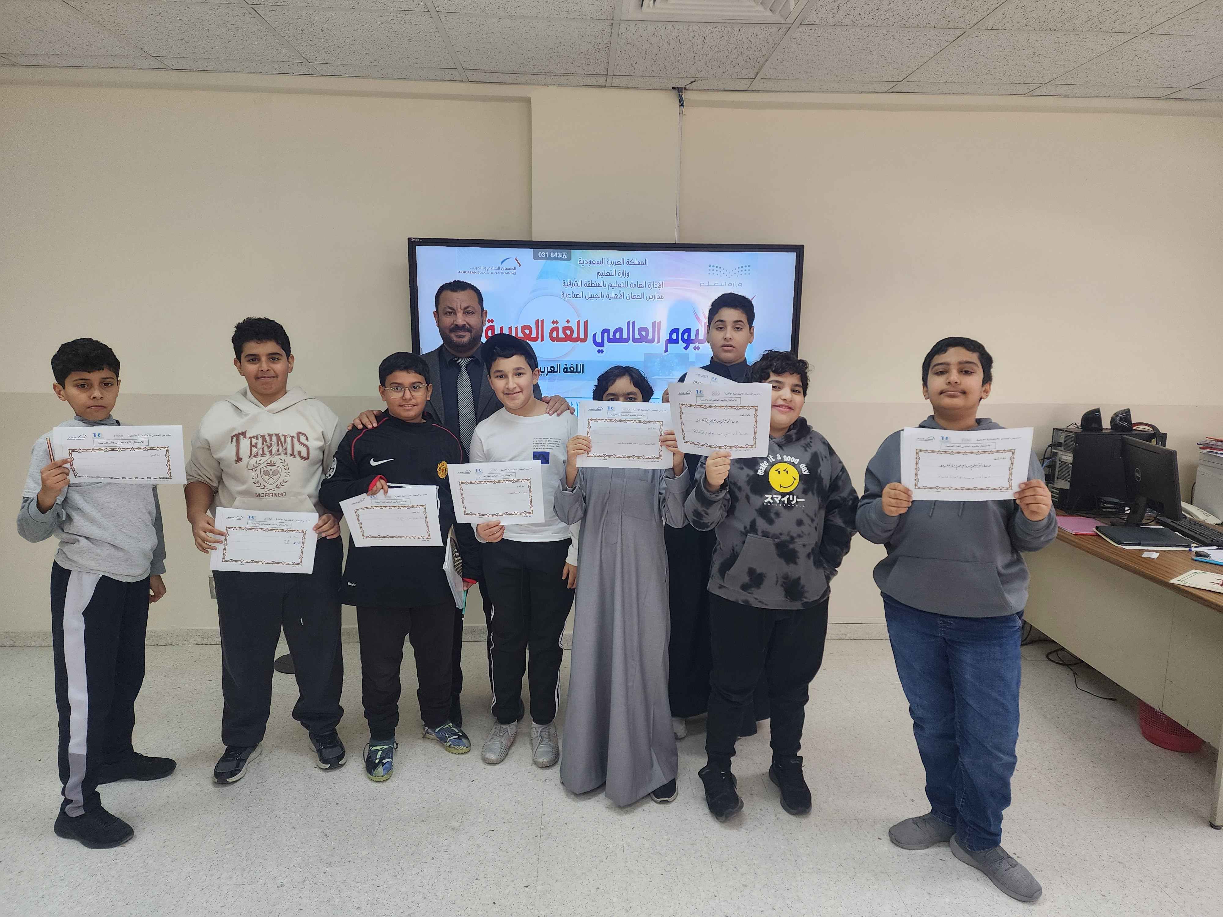 احتفلت ابتدائية الحصان بالجبيل الصناعية يوم الأحد الموافق 21/12/2025 باليوم العالمي للغة العربية، وذلك تعزيزًا لمكانة اللغة العربية وترسيخًا لقيم الاعتزاز بها لدى الطلاب.