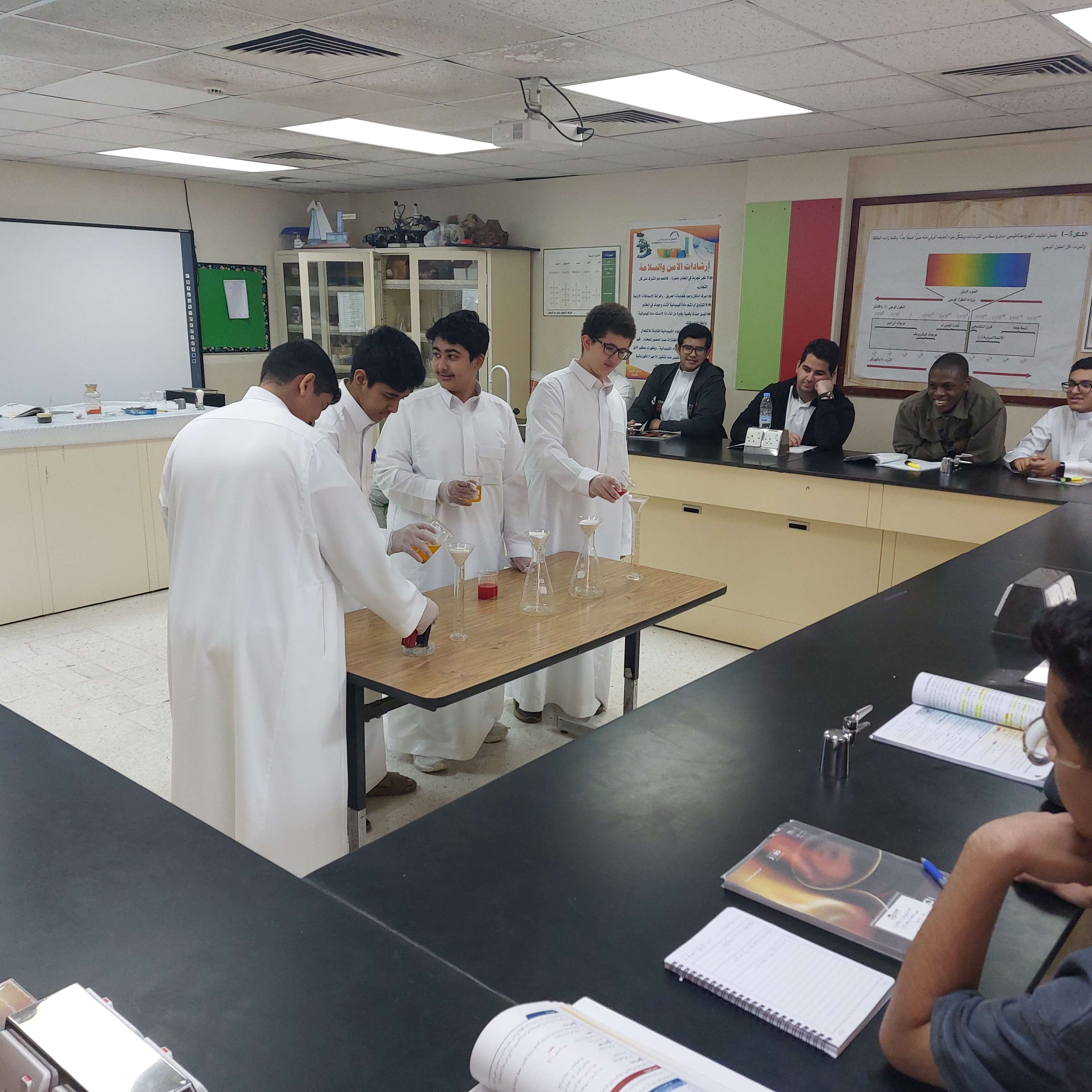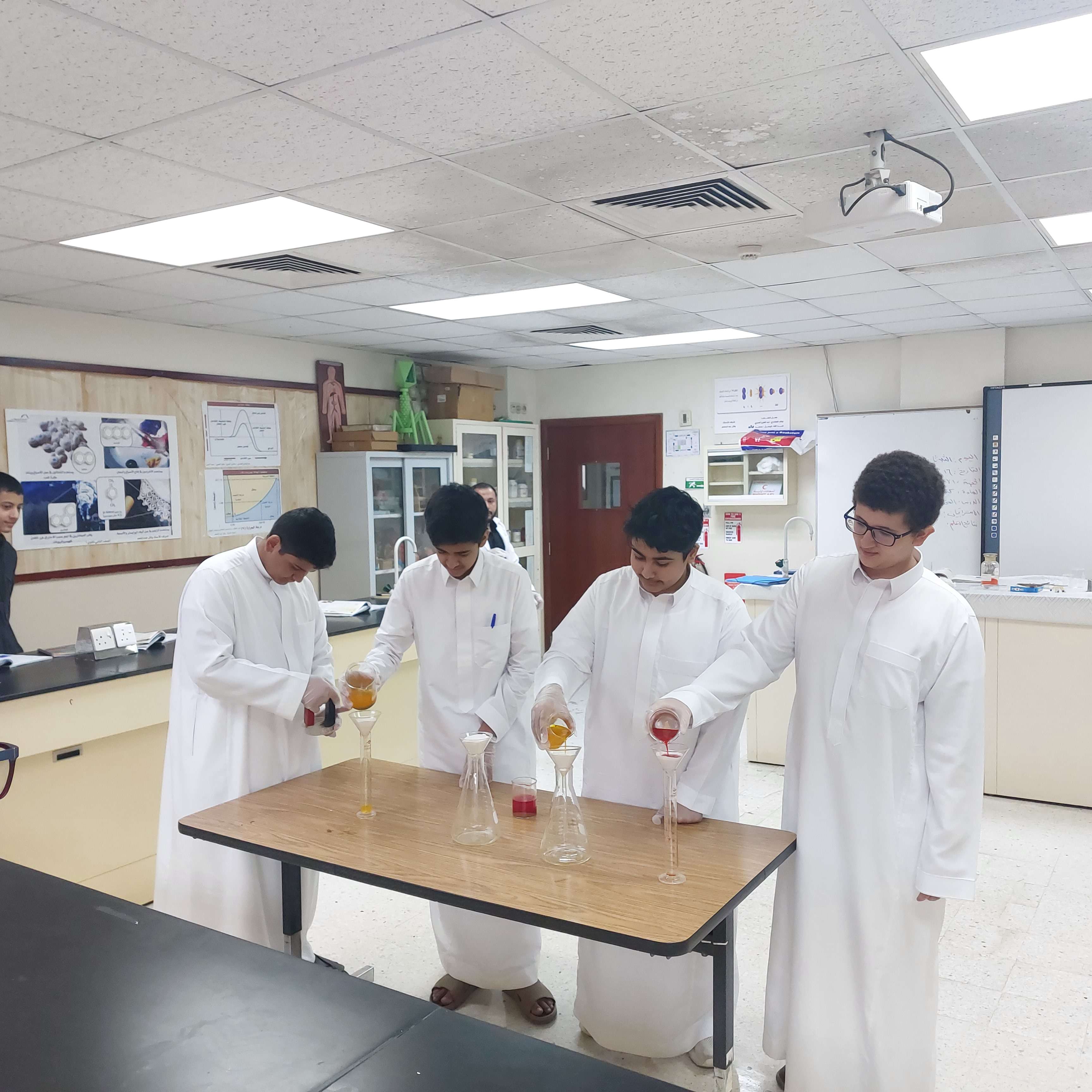 تم تنفيذ نشاط عملي لطلاب الصف الأول ثانوي بثانوية الحصان بالجبيل الصناعية يوم الثلاثاء الموافق 16/9/2025 حول طرق فصل المخاليط، حيث طبّق الطلاب طرقًا متنوعة مثل الترشيح والتبخير والتقطير. وقد أظهروا تفاعلًا مميزًا أثناء التجارب مما ساعدهم على فهم الدرس بشكل أفضل وتنمية مهاراتهم العلمية والعملية.