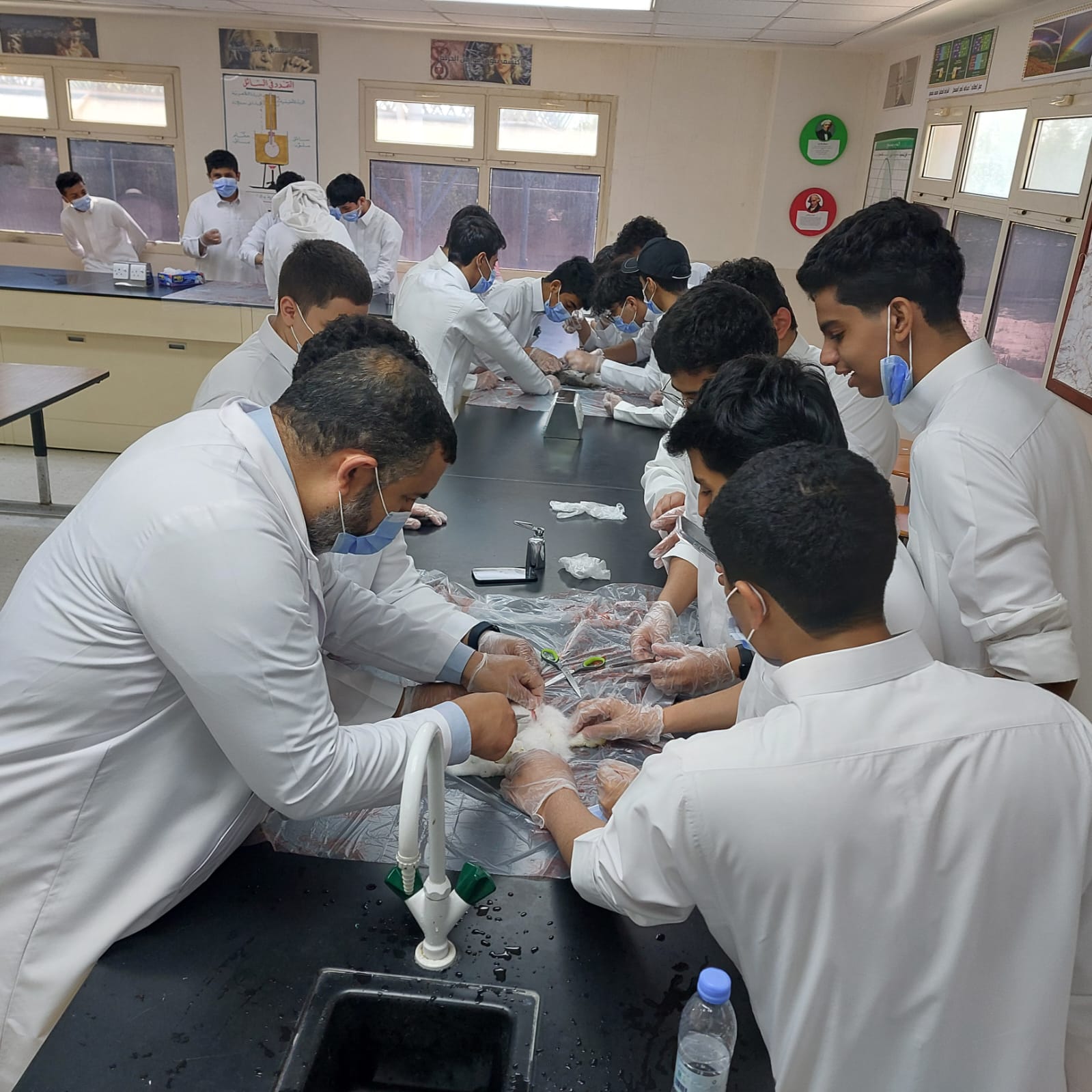 تم تنفيذ نشاط عملي لطلاب الصف الثاني الثانوي بثانوية الحصان بالجبيل الصناعية يوم الأثنين الموافق٢٠٢٥/١٠/٦ حيث قام الطلاب بتشريح الأرانب بأنفسهم تطبيقاً على درس الثدييات وقد أظهروا تفاعلاً مميزاً واستمتعوا كثيرا بعملية التشريح مما ساعدهم على فهم الدرس بشكل أفضل وكذلك تنمية مهاراتهم العلمية والعملية.
