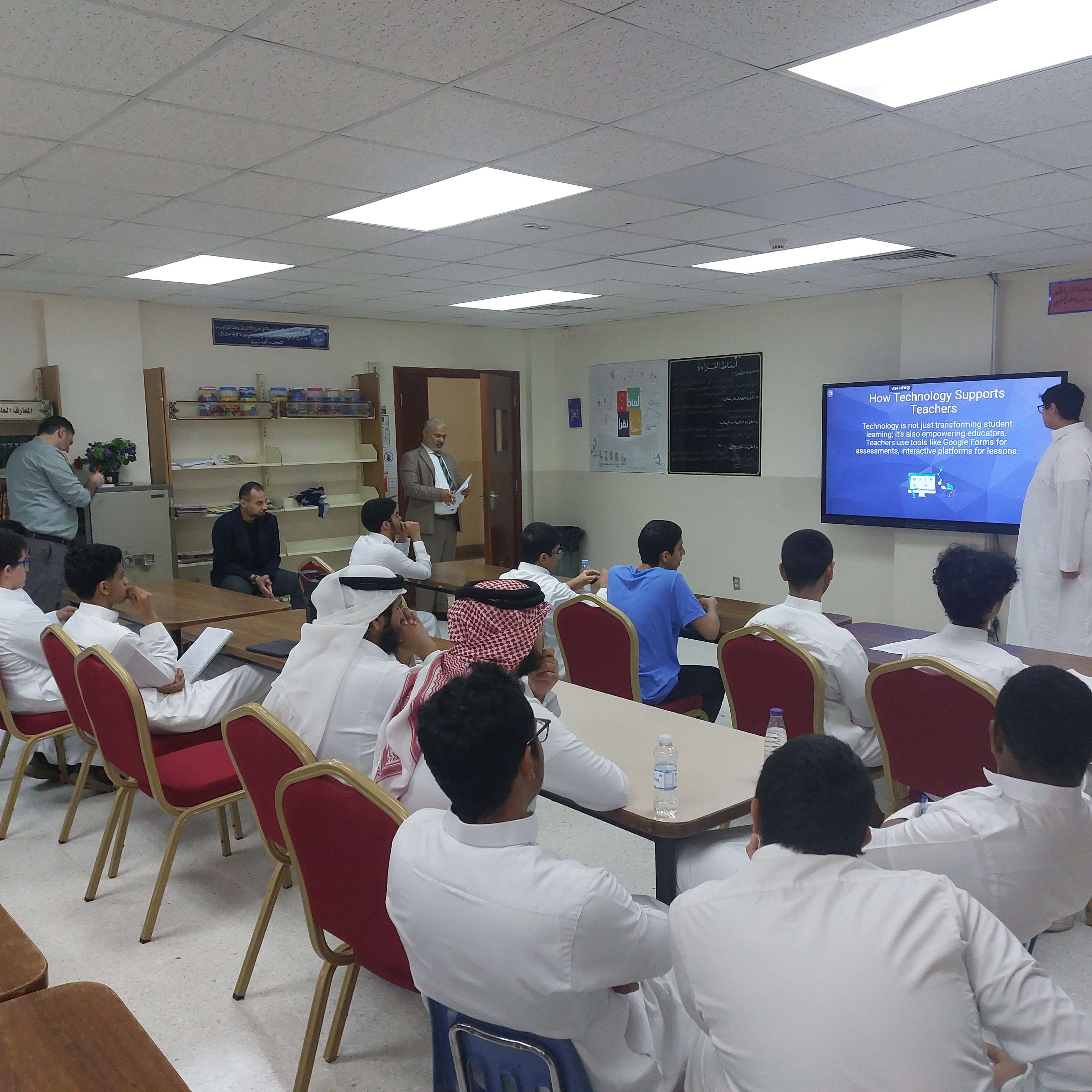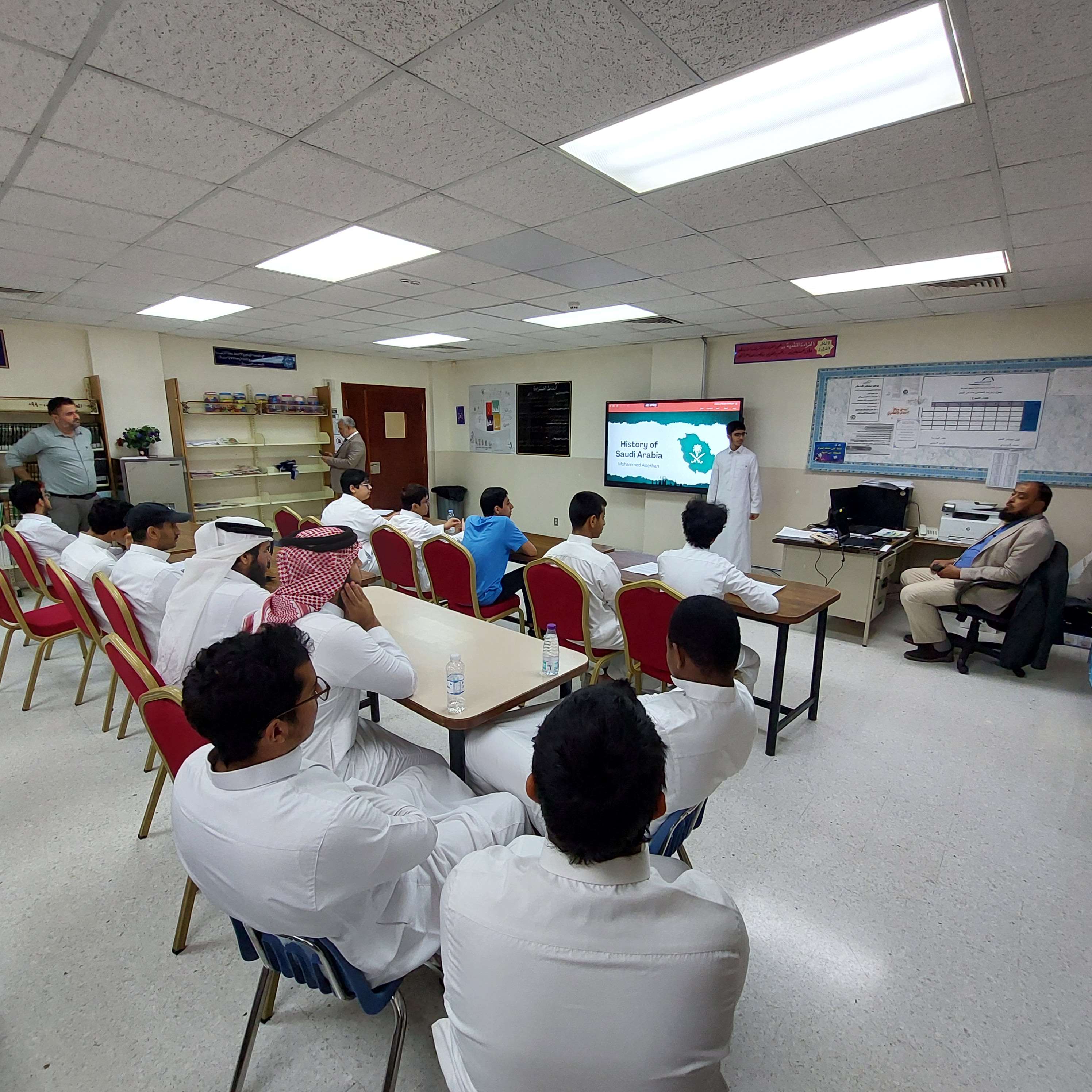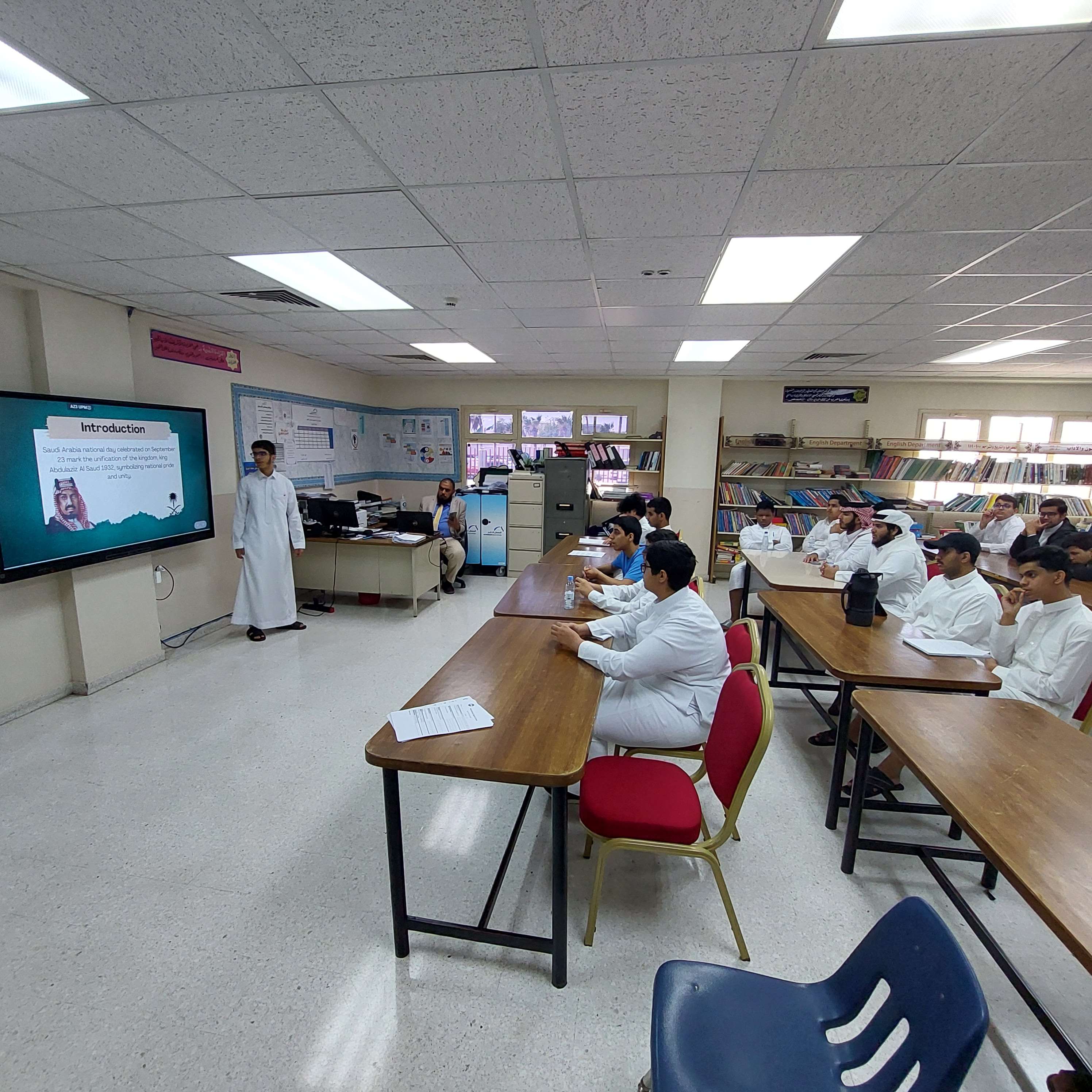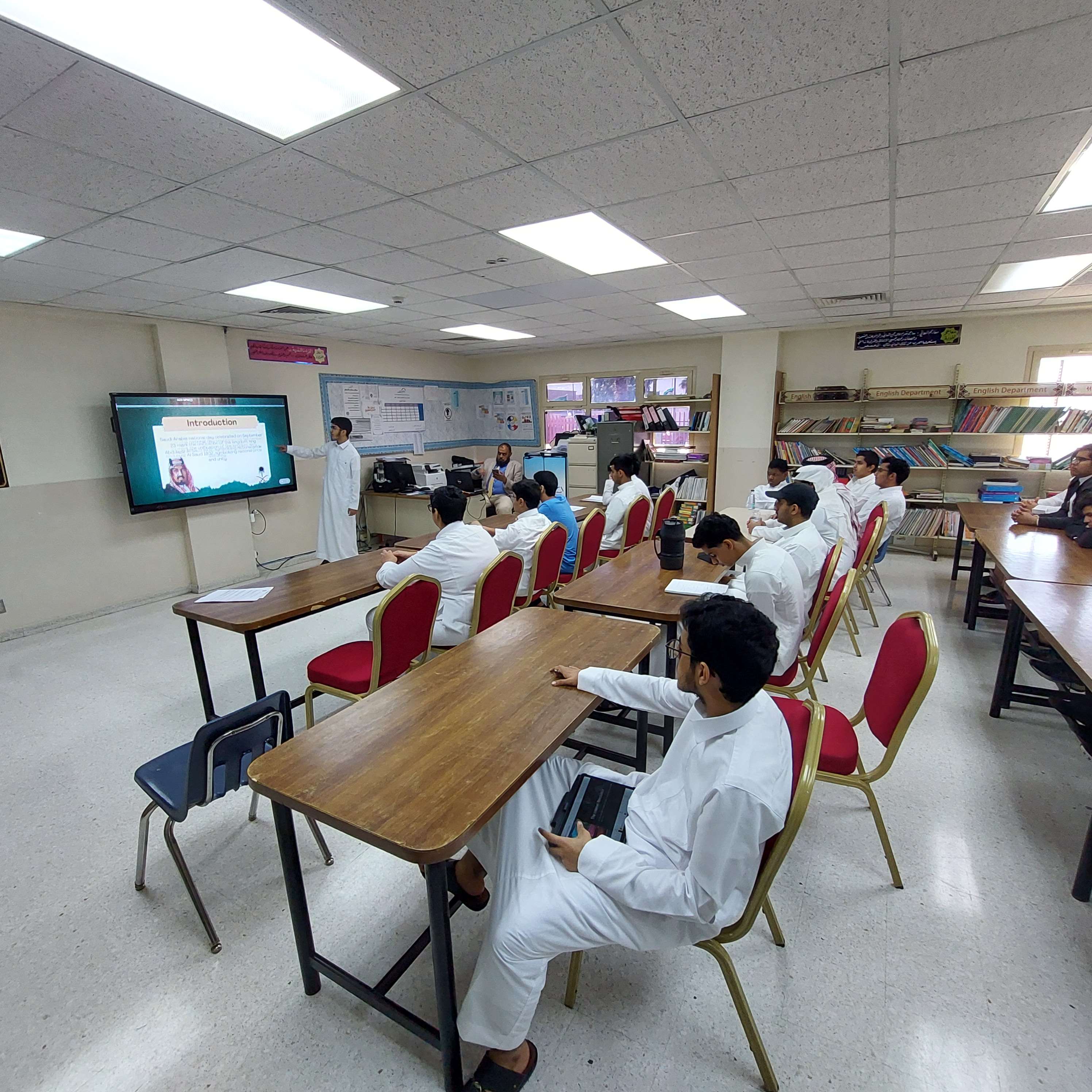 العروض التقديمية ضمن فعاليات أنشطة اللغة الإنجليزية بثانوية الحصان, تم تنفيذ مسابقة العروض التقديمية لطلاب المرحلة الثانوية. وتهدف المسابقة الى تنمية مهارات التقديم و التواصل اللفظي لدي الطلاب وكذلك تنمية مهارات استخدام عروض البوربوينت.