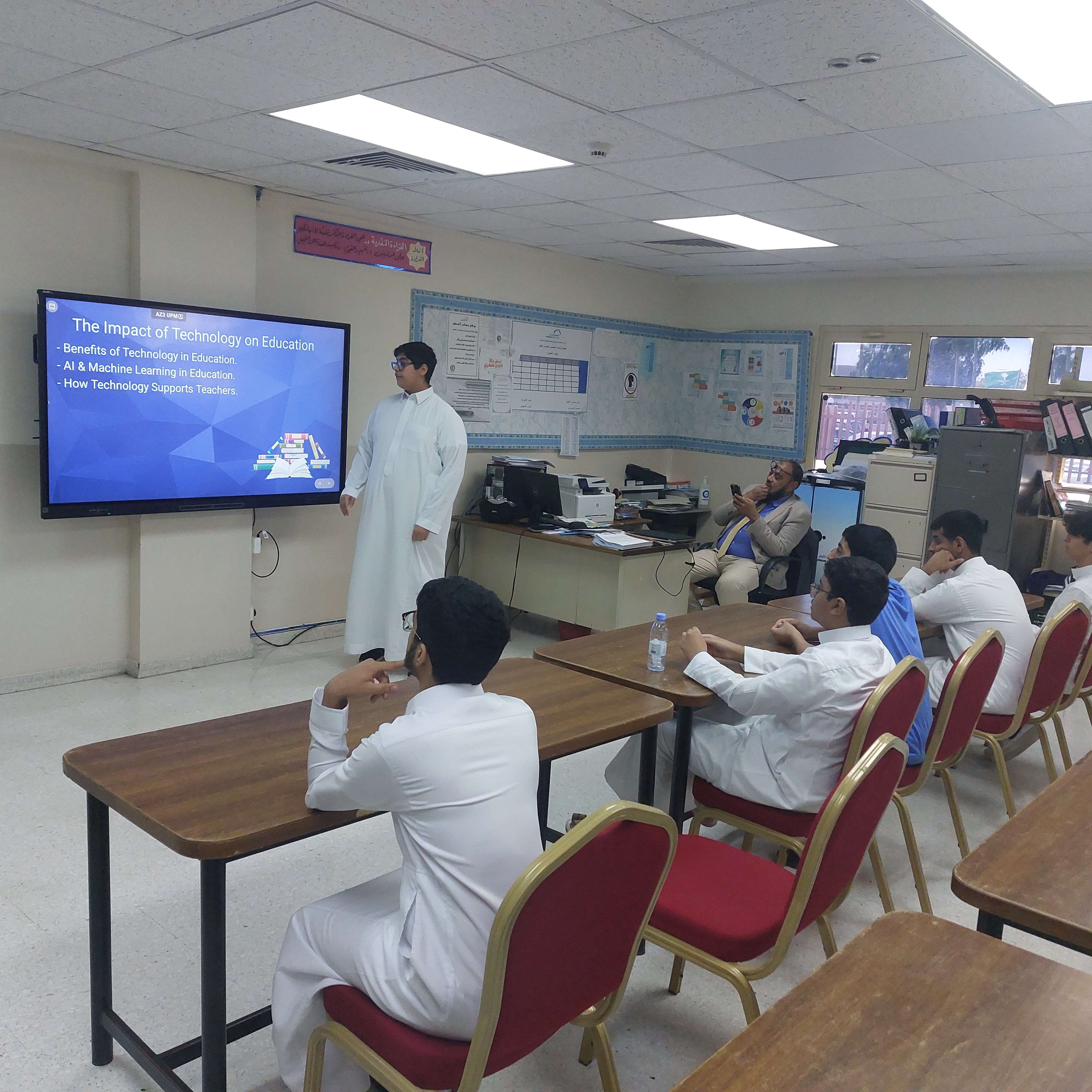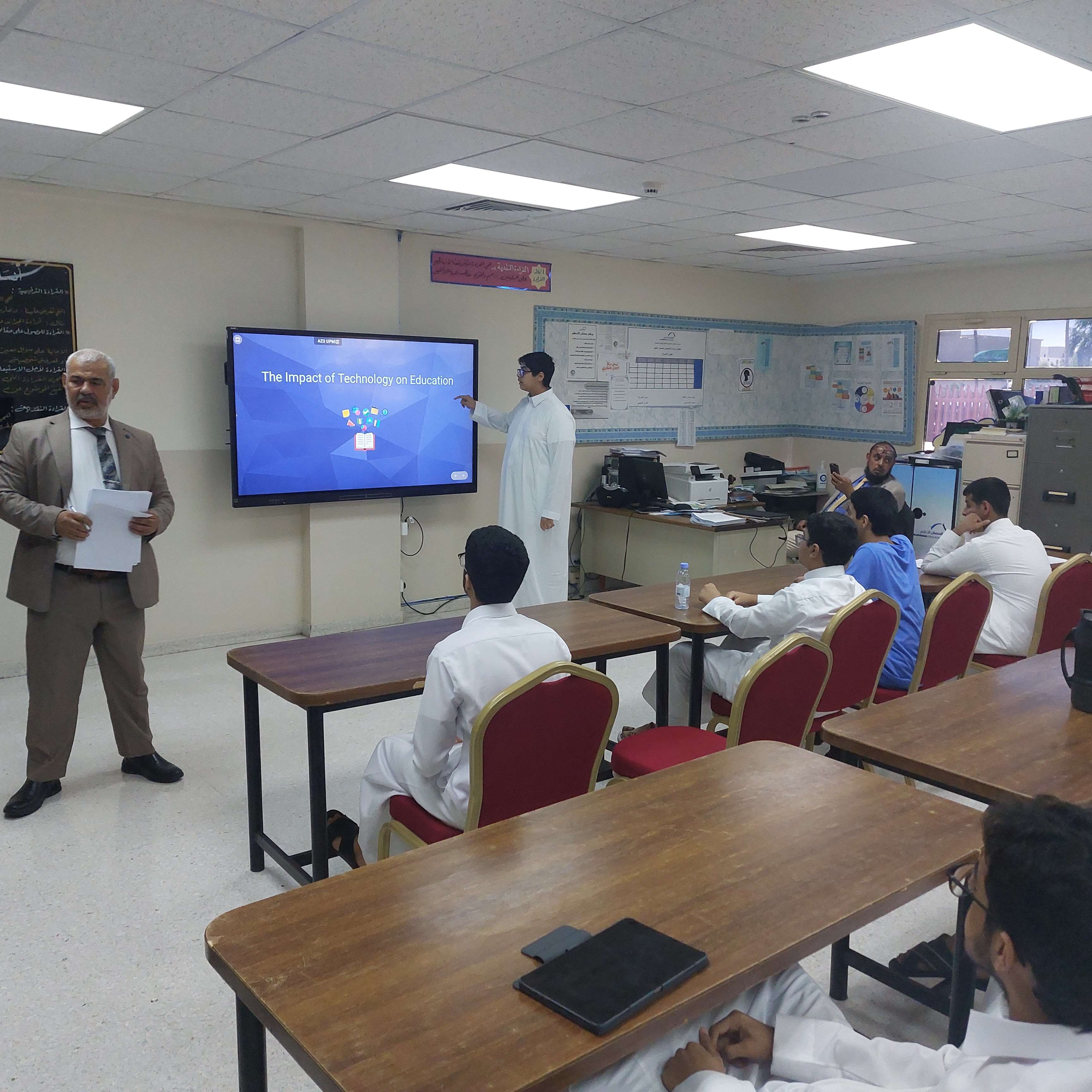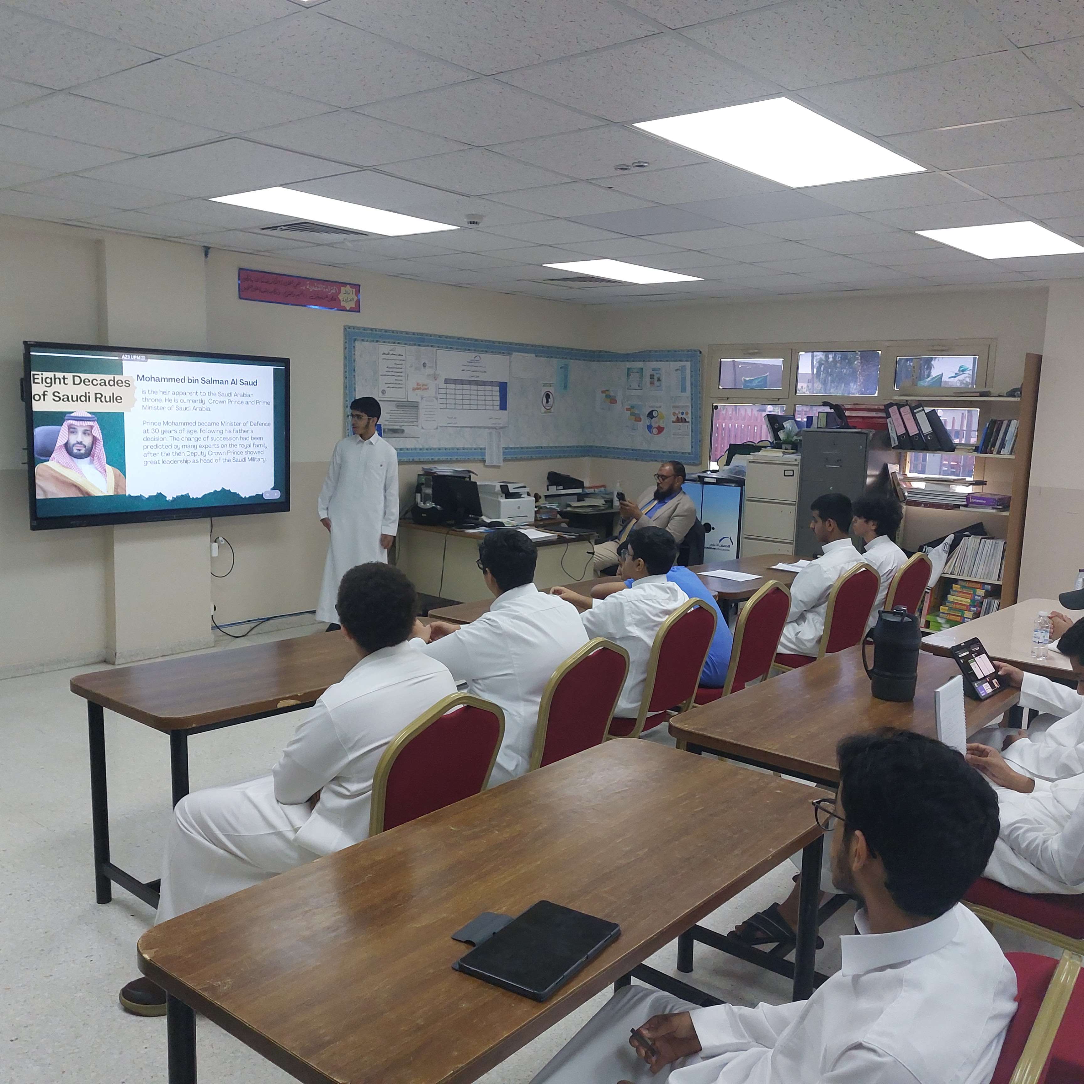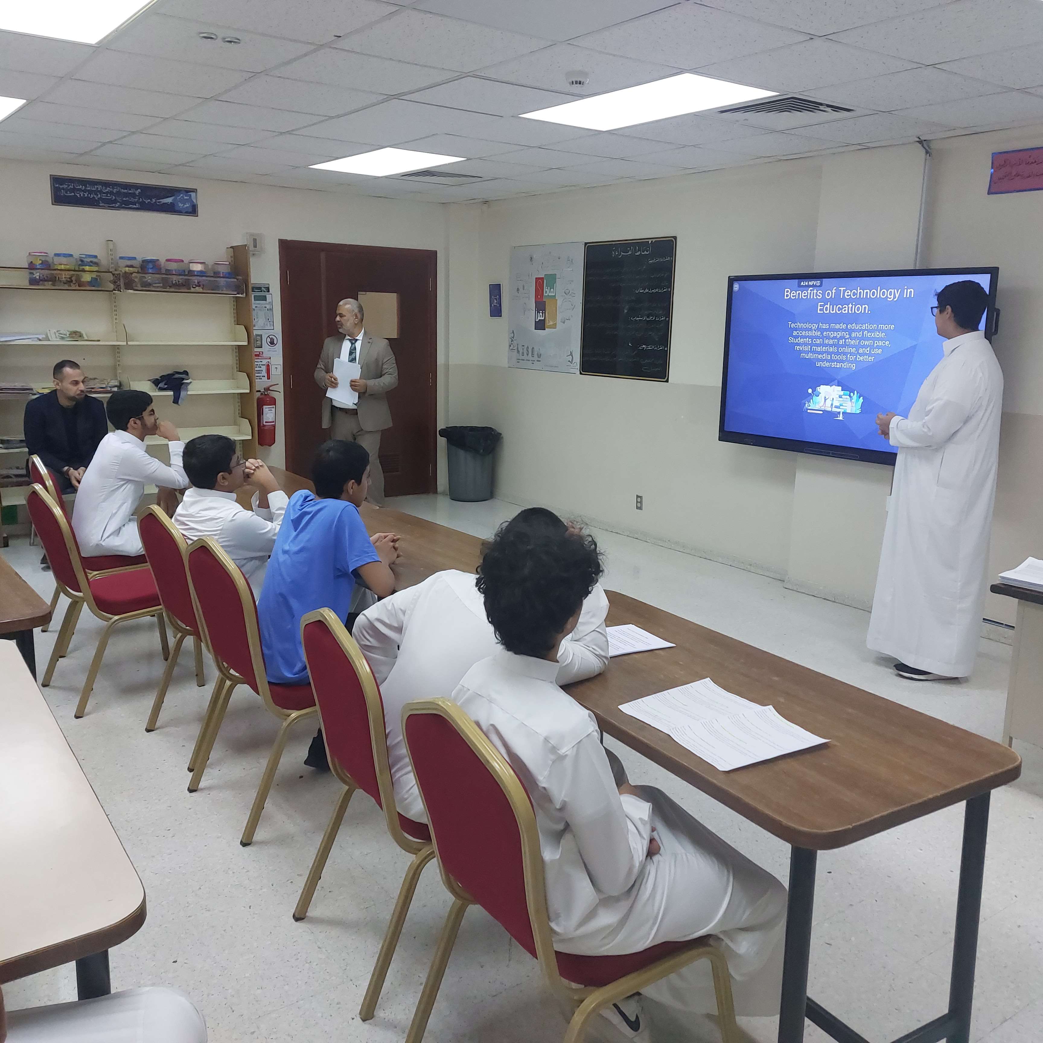 العروض التقديمية ضمن فعاليات أنشطة اللغة الإنجليزية بثانوية الحصان, تم تنفيذ مسابقة العروض التقديمية لطلاب المرحلة الثانوية. وتهدف المسابقة الى تنمية مهارات التقديم و التواصل اللفظي لدي الطلاب وكذلك تنمية مهارات استخدام عروض البوربوينت.