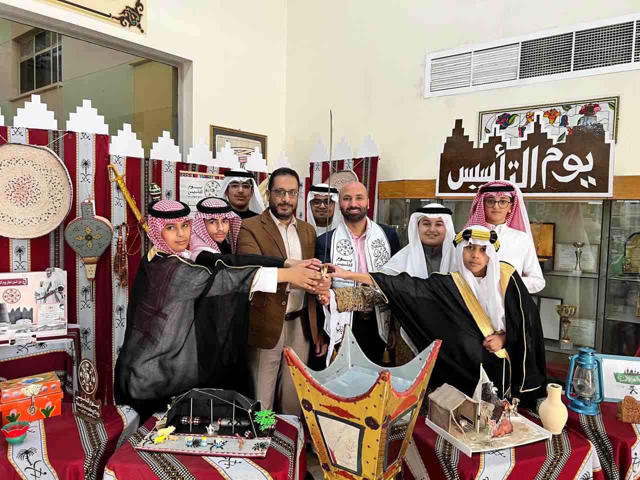 احتفت متوسطة الحصان الأهلية للبنين بالجبيل يوم الثلاثاء الموافق 24-2-2026م بذكرى يوم التأسيس للمملكة العربية السعودية في أجواء وطنية مميزة عززت مشاعر الفخر والانتماء، حيث المعرض الفني للتراث والذي أبرز العمق التاريخي للمناسبة وأهميتها في ترسيخ الهوية الوطنية لدى الطلاب, وغيره من الفعاليات التي أبرزت قيم التلاحم والانتماء والعطاء المستمر والاعتزاز بتاريخ وطننا المجيد.