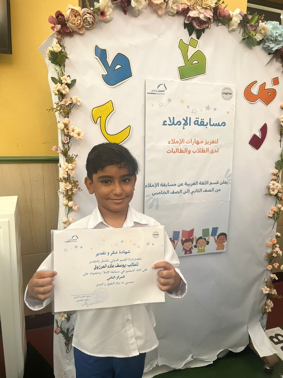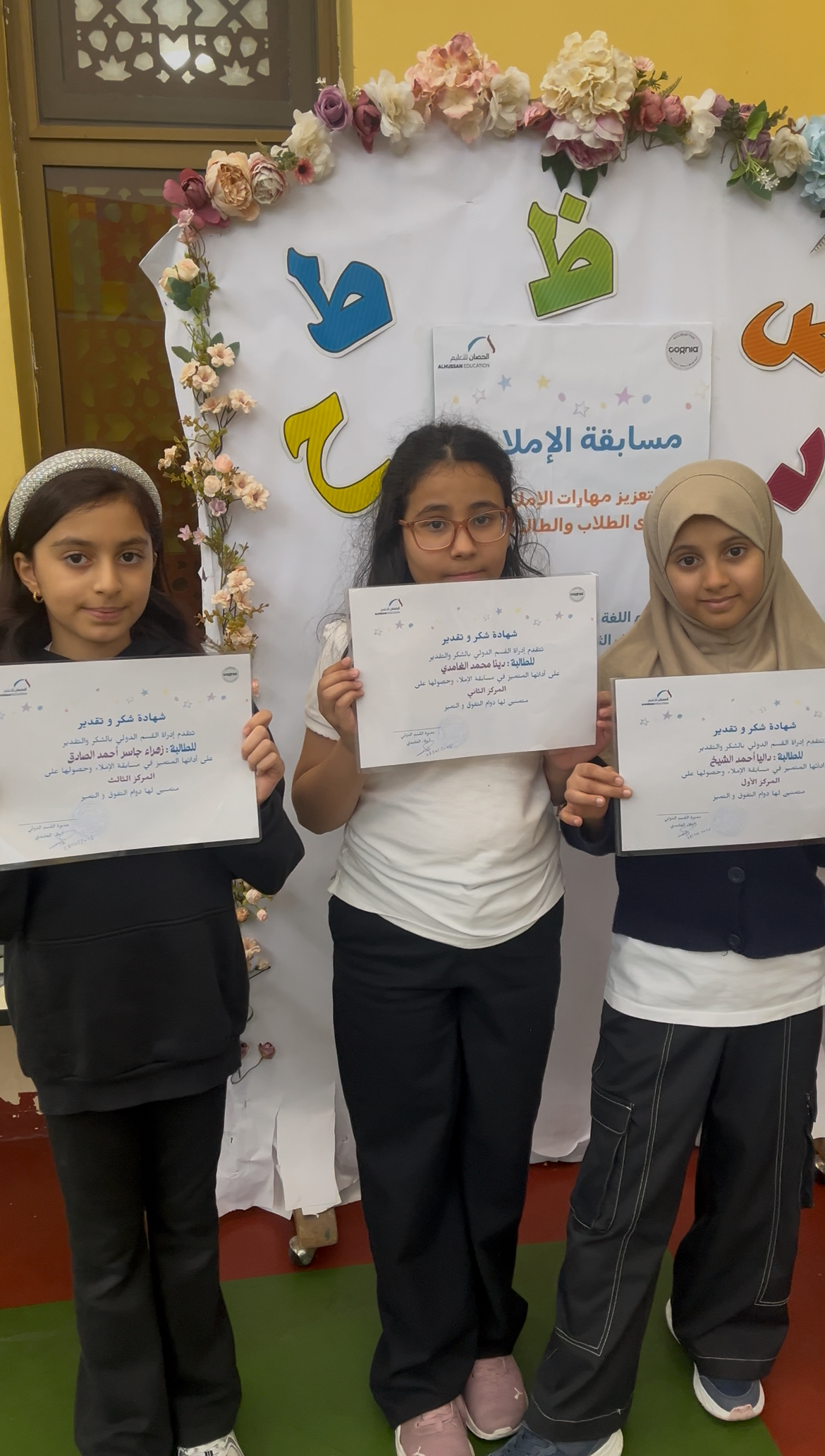 The Spelling competition in Arabic At Al-Hussan Girls School, International Section, Dammam, the Spelling Competition aims to enhance the Arabic spelling skills of students from Grades 2 to 5 in the Elementary Section.