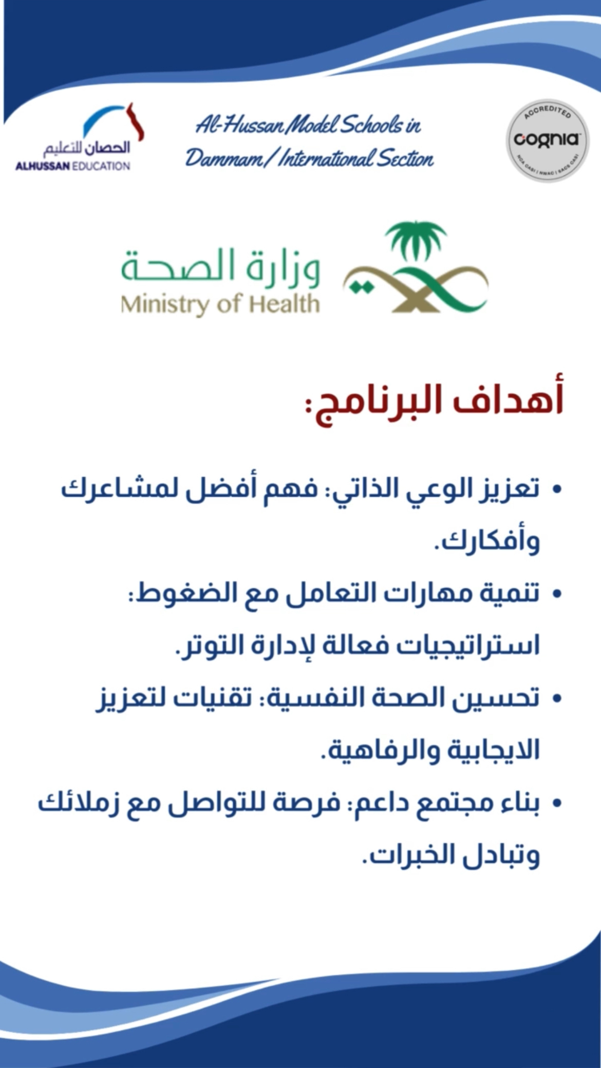 Al Hussan National Schools for Girls, the International Section in Dammam.