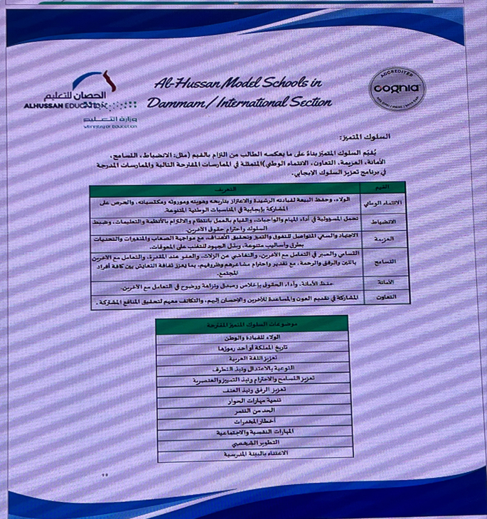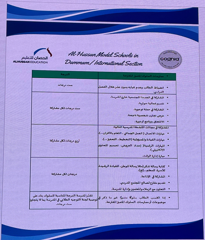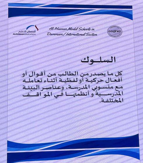 Al Hussan National Schools for Girls, the International Section in Dammam held an introductory meeting on exemplary behaviour within the 1447 Code of Conduct