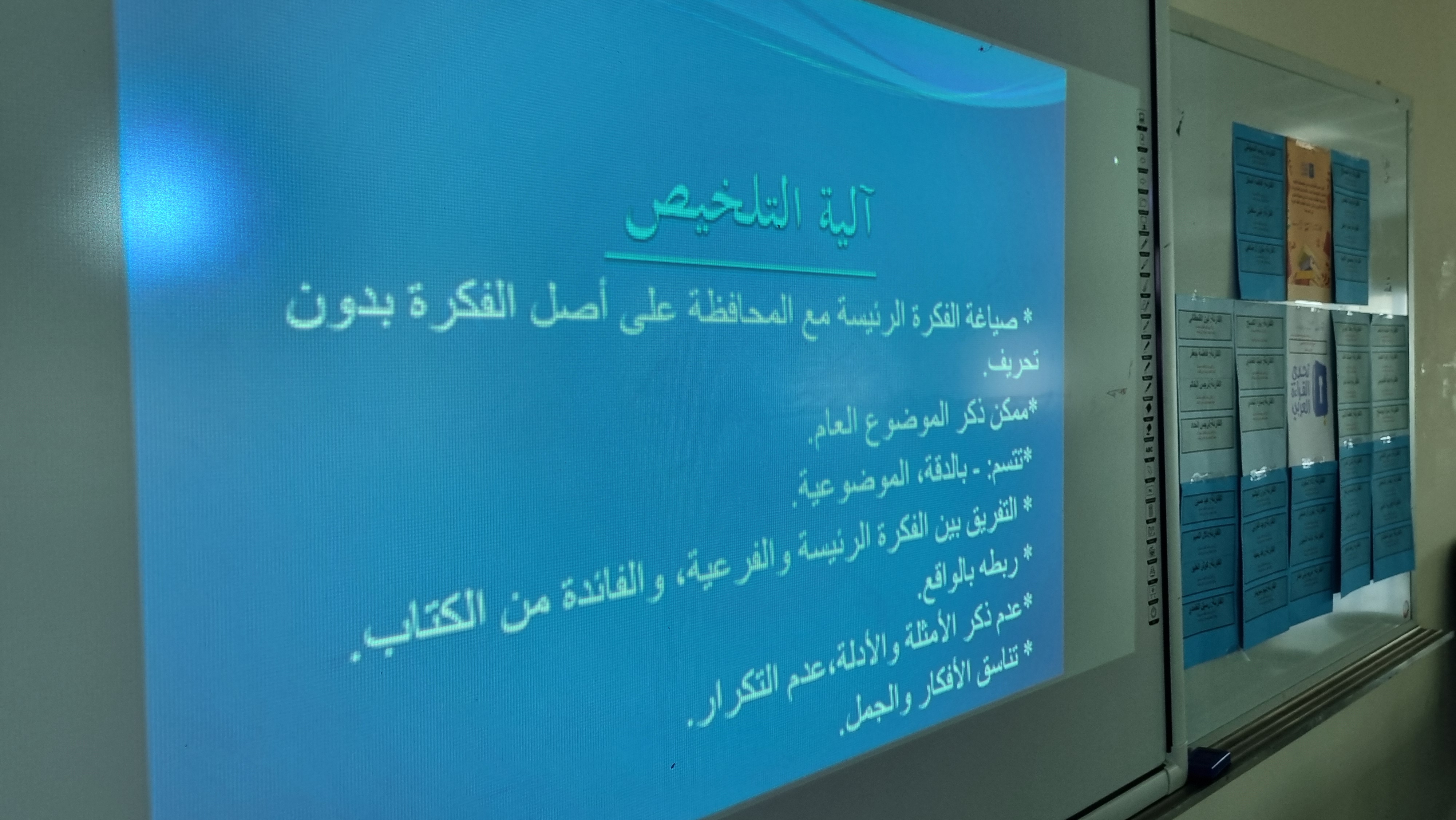 هدفت الورشة إلى تعريف الطالبات بآلية المسابقة وخطوات التسجيل والمشاركة إضافة إلى شرح معايير التقييم وأساليب تلخيص الكتب وتوضيح كيفية اختيار الكتب المناسبة التي تسهم في تطوير مهارات التفكير والتحليل والفهم القرائي.
