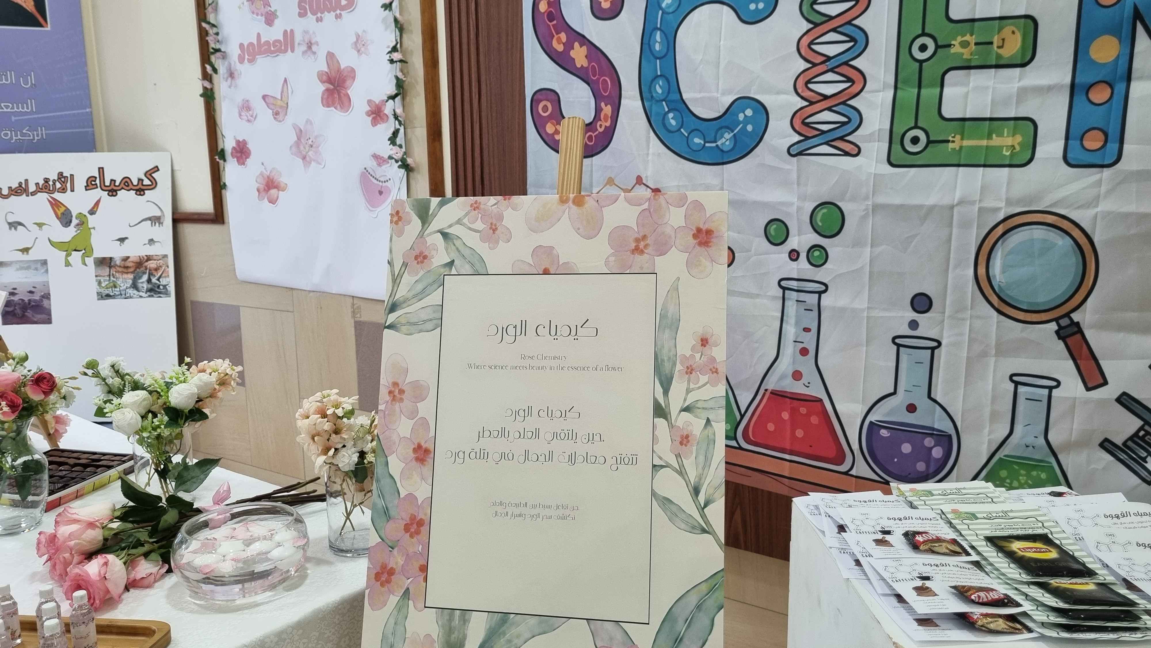 - قسم الكيمياء في العطور: قدّمت الطالبات شرحًا عن تركيب العطور، وكيف يتم مزج الروائح الأساسية لإنتاج عطور مختلفة.