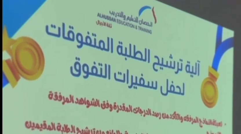 عقدت مدارس الحصان النموذجية الأهلية للبنات بالدمام اجتماعا مشتركا ضم لجنة التوجيه الطلابي ولجنة التحكيم وذلك بهدف مناقشة آلية ترشيح الطالبات المتفوقات للمشاركة في حفل "سفيرات التفوق" المقرر إقامته لاحقا تكريما لإنجازات الطالبات الأكاديمية.