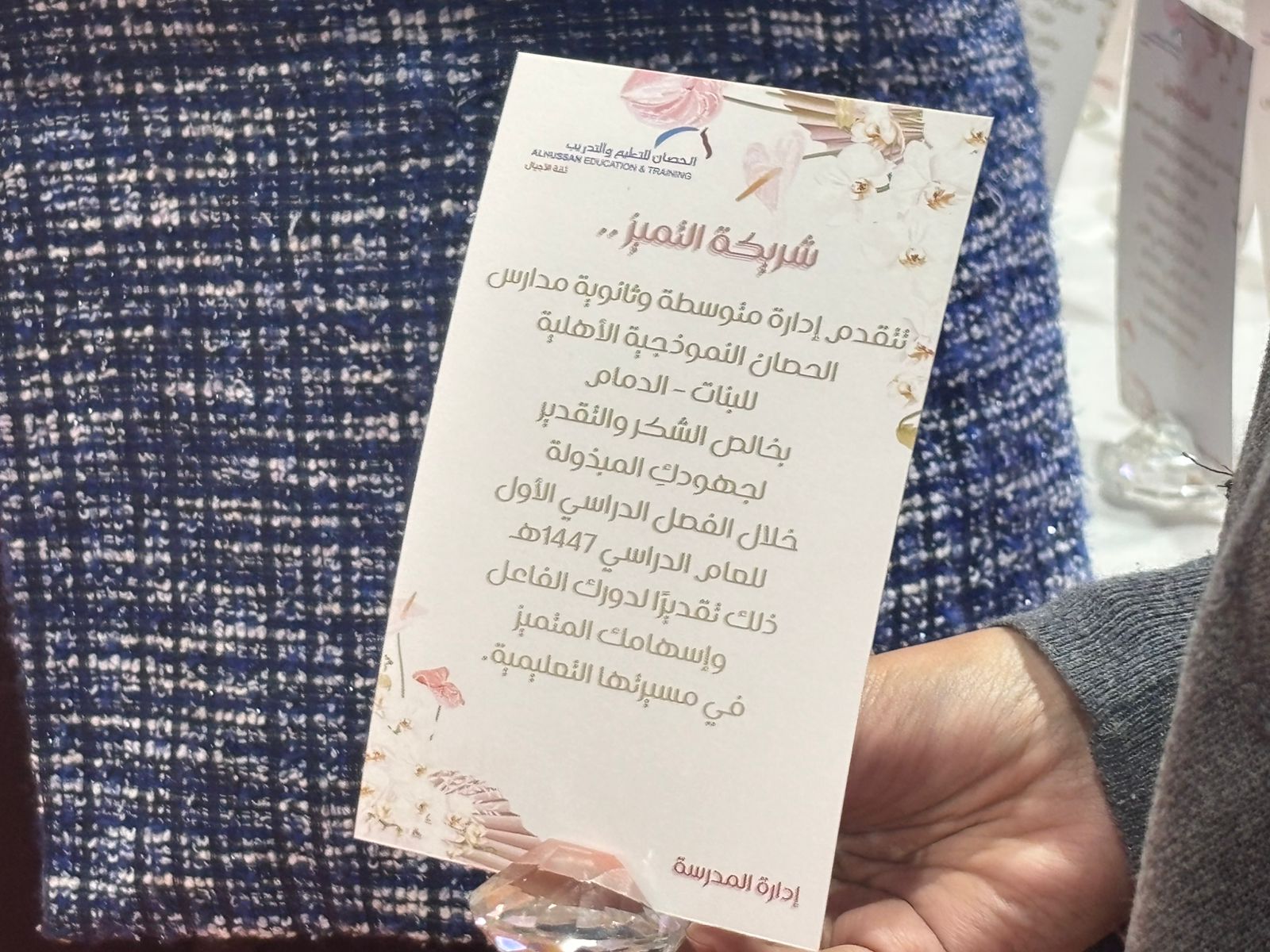 في إطار حرص مدارس الحصان النموذجية الأهلية للبنات بالدمام على ثقافة التميز ودعم التفوق الدراسي وتحفيز الطالبات، أقامت المدرسة حفلاً لتكريم الطالبات المتفوقات وإبراز إنجازتهن في المجالات العلمية والثقافية والمهارية خلال الفصل الدراسي الأول من العام 1447 هـ ، وذلك لطالبات المرحلتين المتوسطة والثانوية وبحضور أمهات الطالبات.