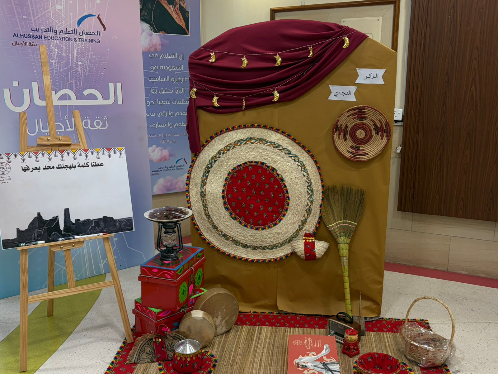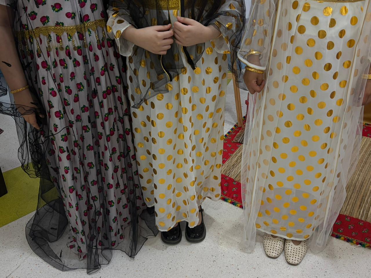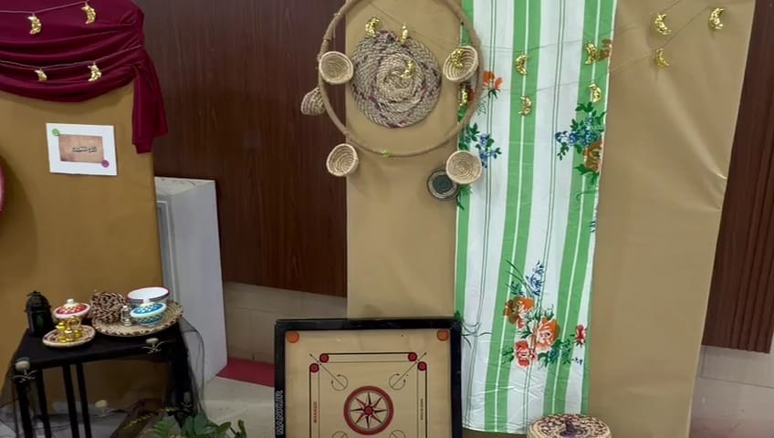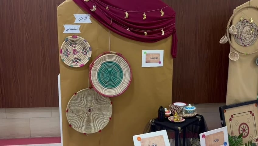 كما شاركت الطالبات في أركان وأنشطة تراثية جسدت مظاهر الحياة في تلك الحقبة التاريخية وارتدين الأزياء التقليدية التي تعبر عن الموروث الثقافي للمملكة.