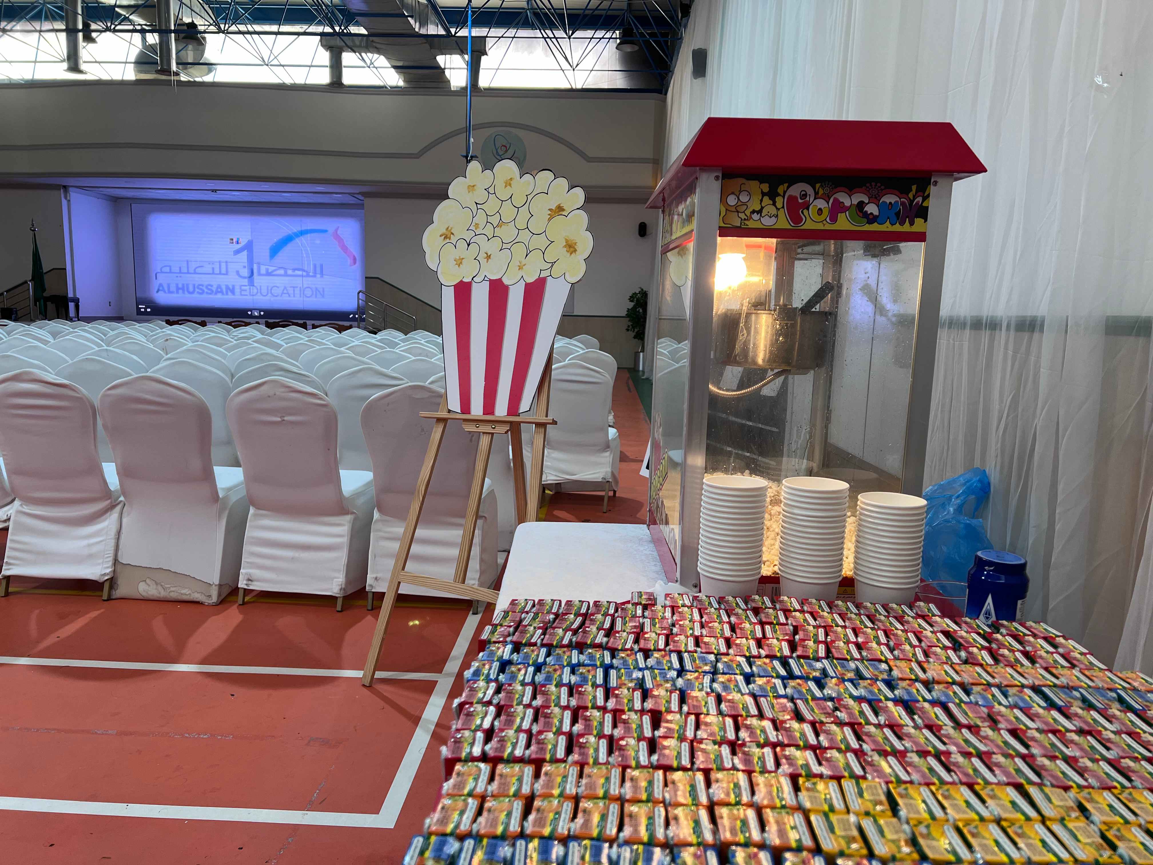 سادت القاعة أجواء مليئة بالحماس والضحك، مع توفير الفشار اللذيذ والعصائر المنعشة للجميع، مما أضفى على النشاط مزيداً من المتعة.