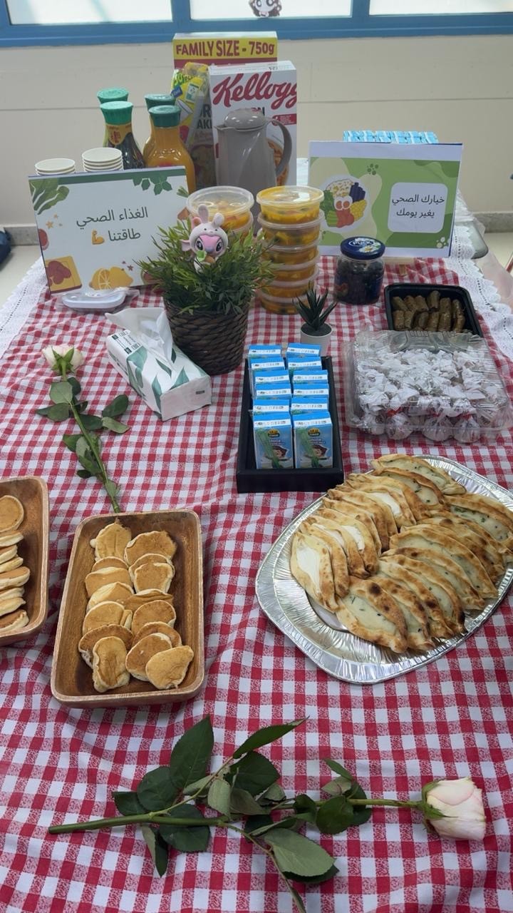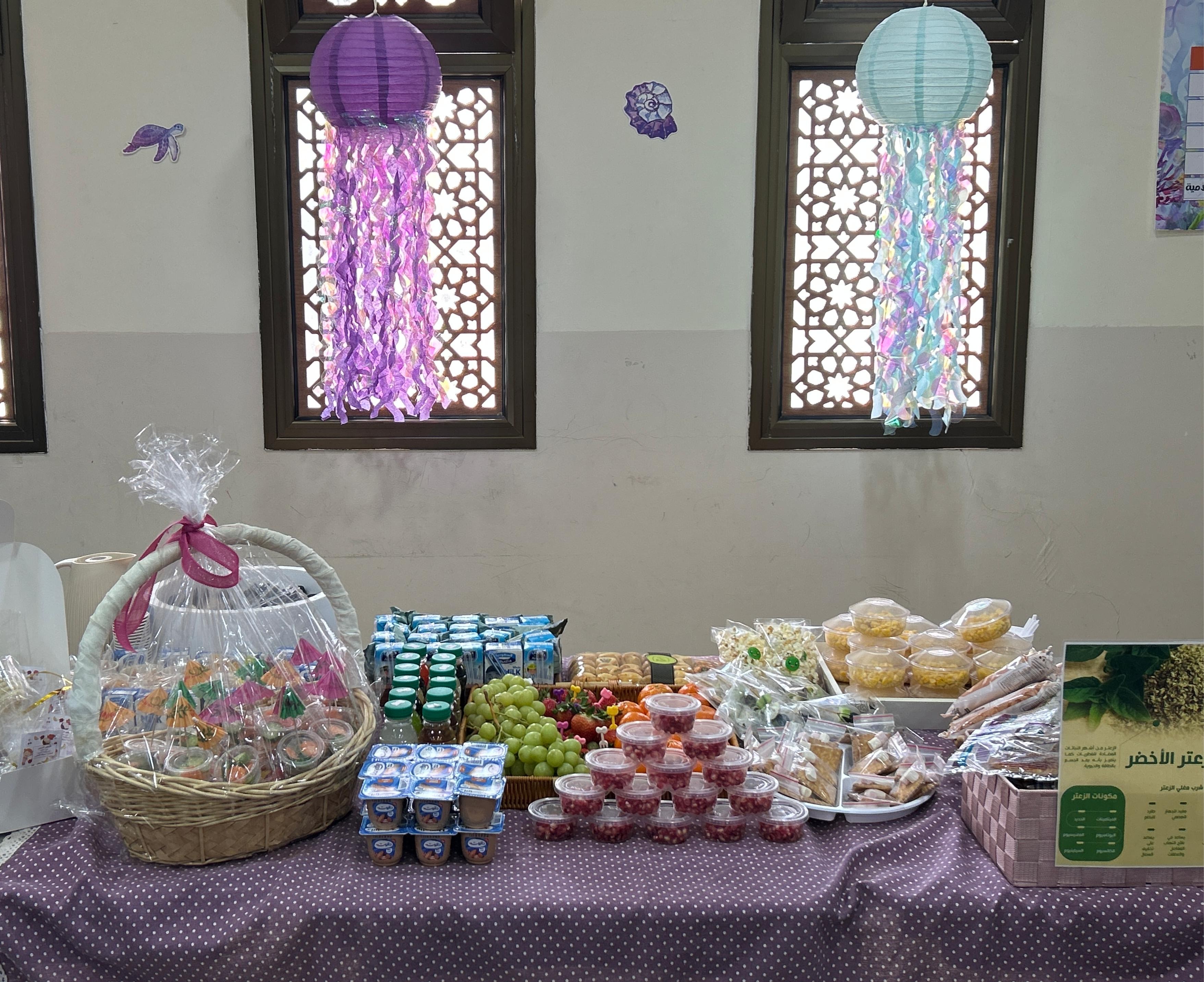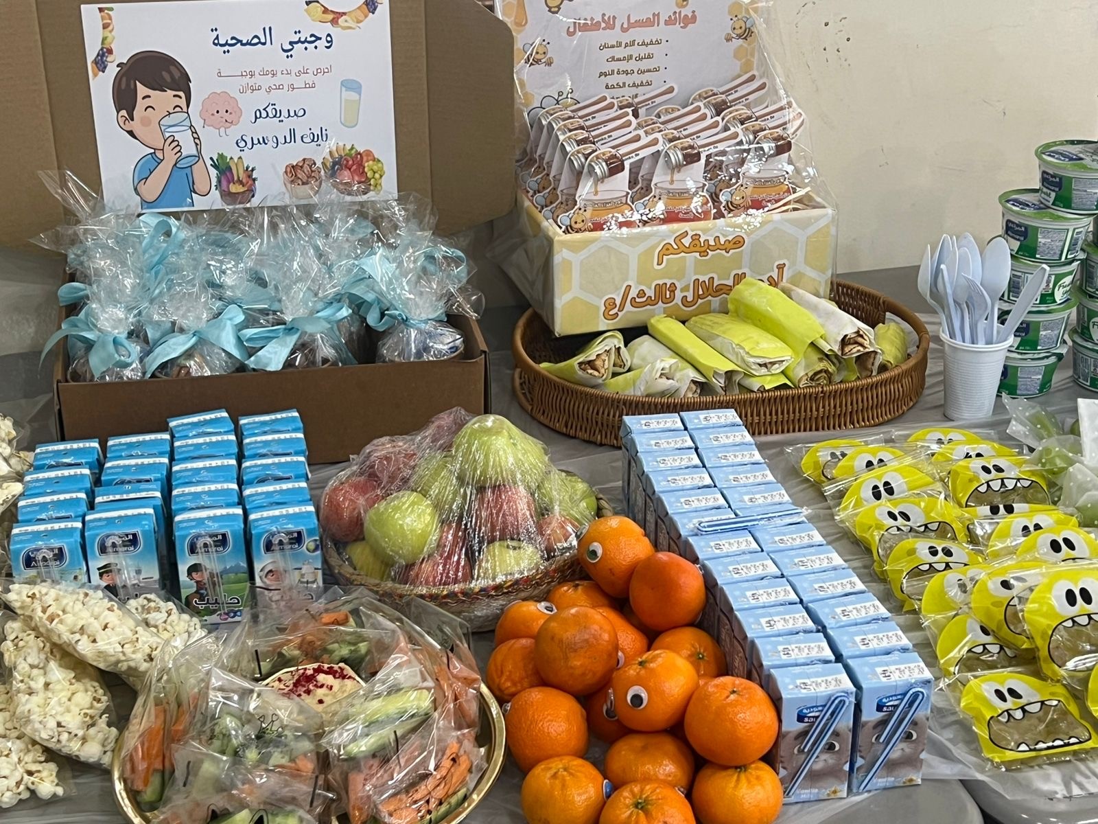 تضمّن اليوم أنشطة ممتعة، وأركانًا متنوعة للتعرّف على المجموعات الغذائية، وأكلات صحية من إعداد الطالبات.