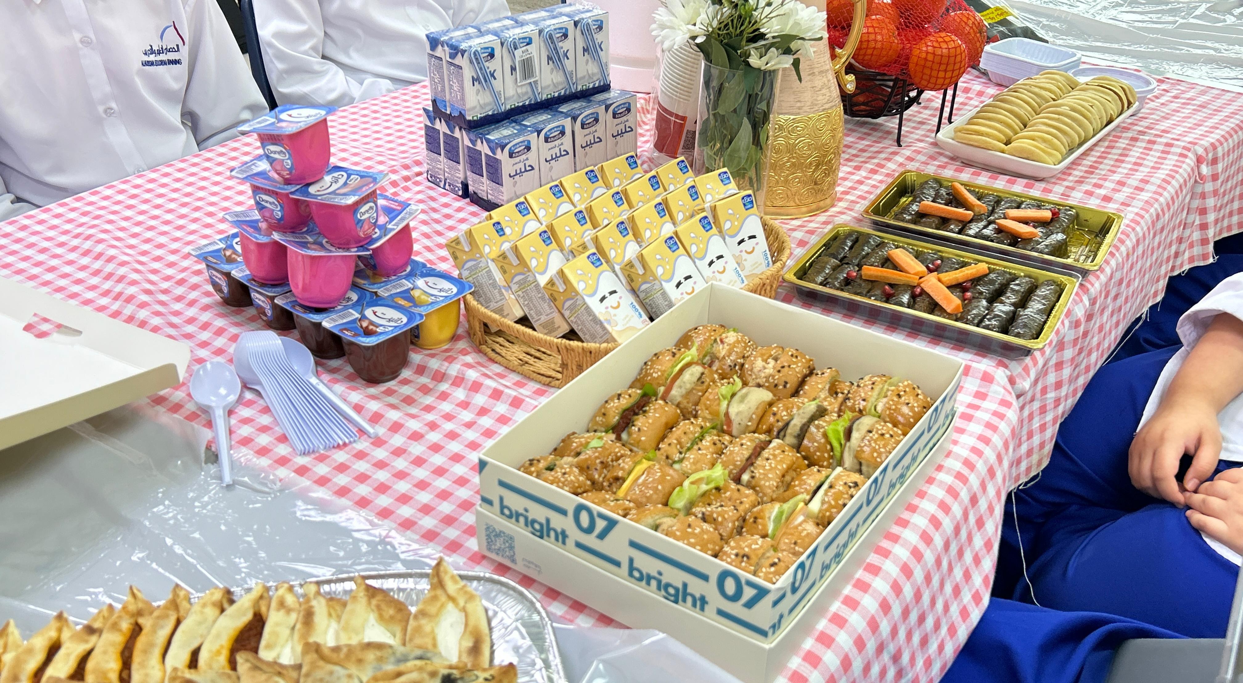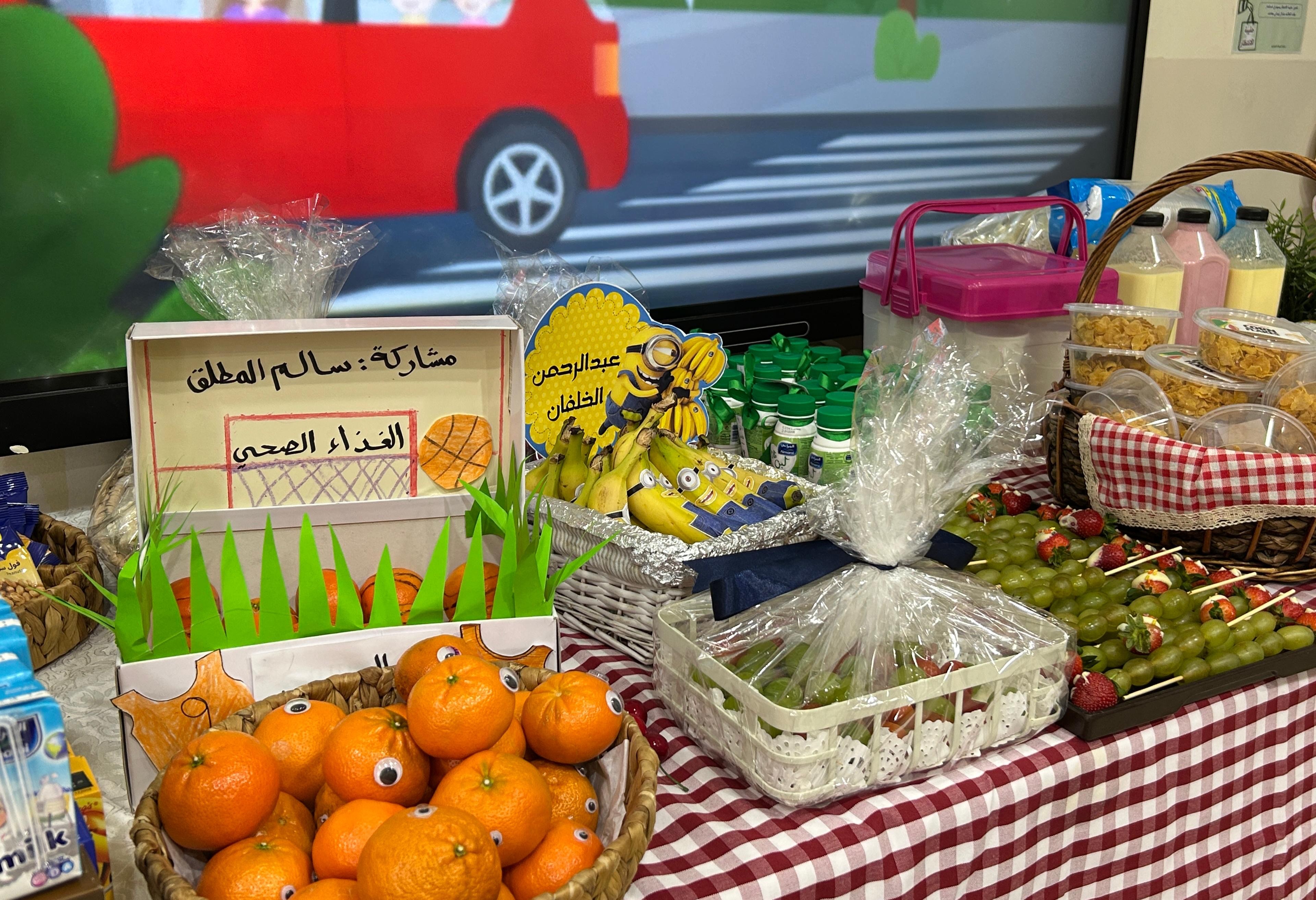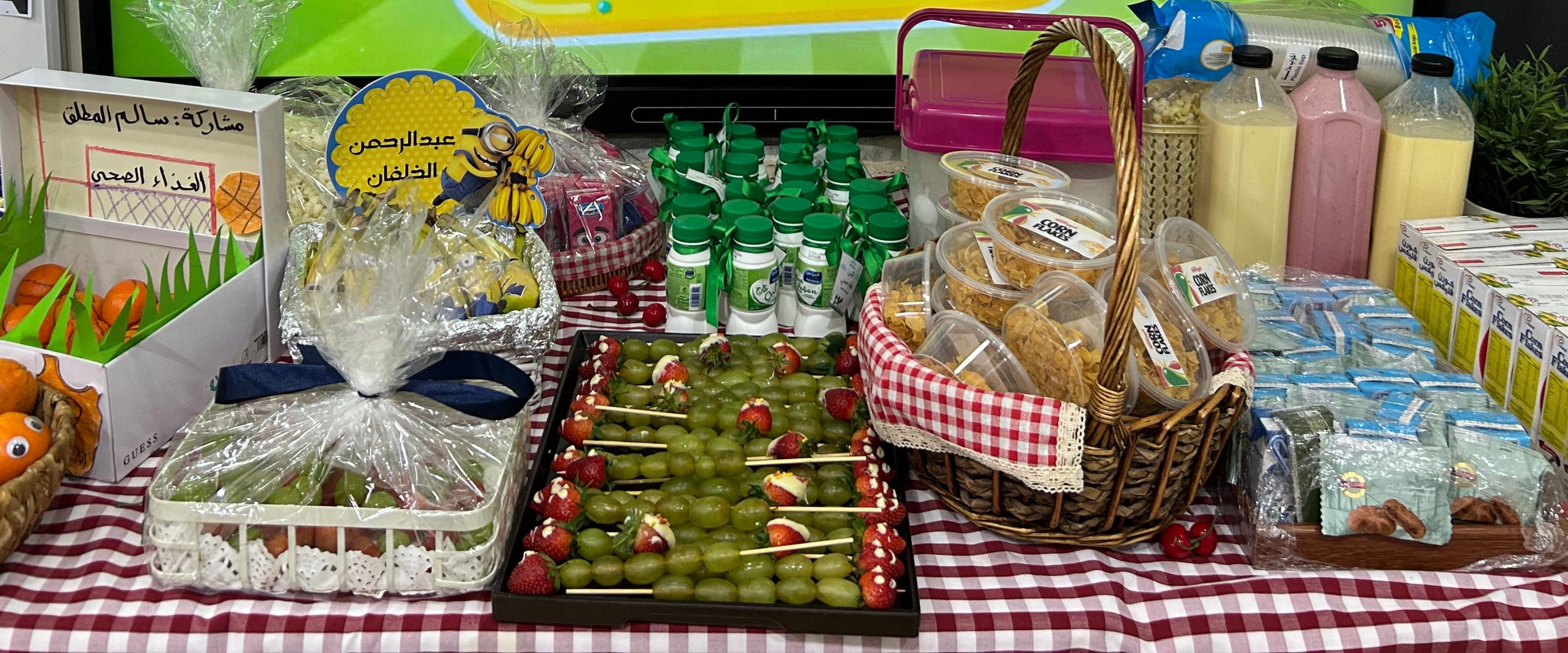 تضمّن اليوم أنشطة ممتعة، وأركانًا متنوعة للتعرّف على المجموعات الغذائية، وأكلات صحية من إعداد الطالبات.