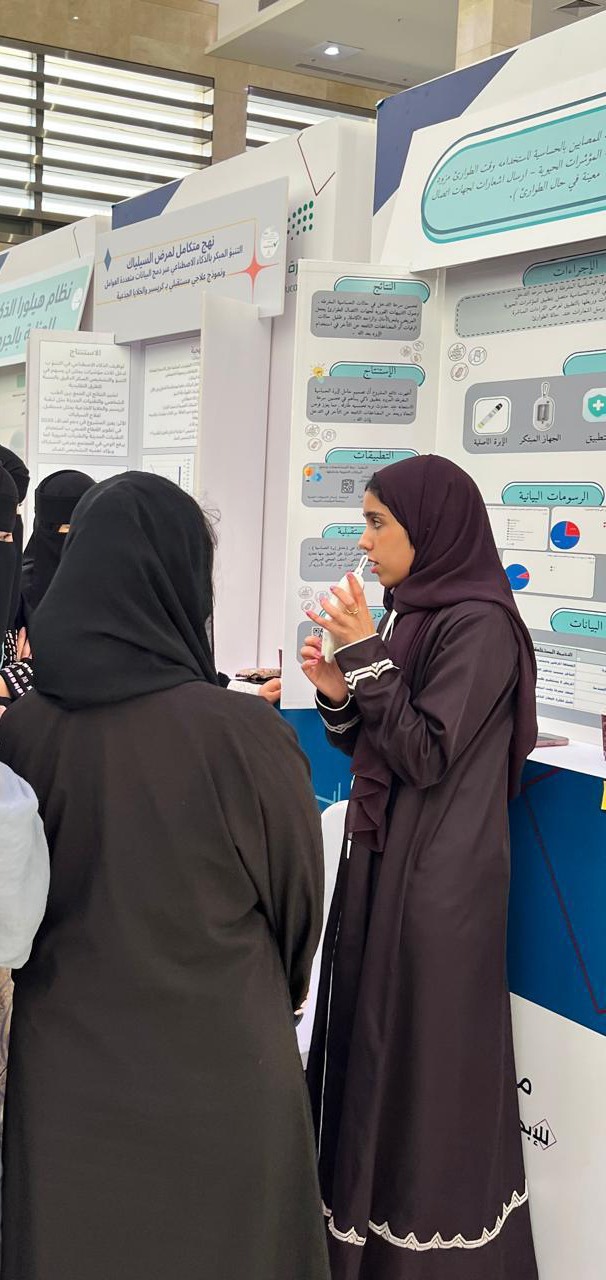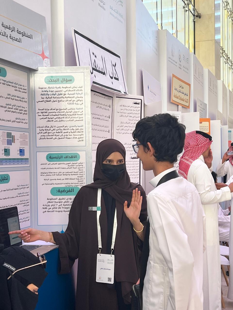 Students Sadeem Khalid Al-Maliki (11th grade) and Jorey Mohammed Al-Bathi (10th grade) were selected by the Ibdaa – Mawhiba program to present their scientific innovations at the expo.