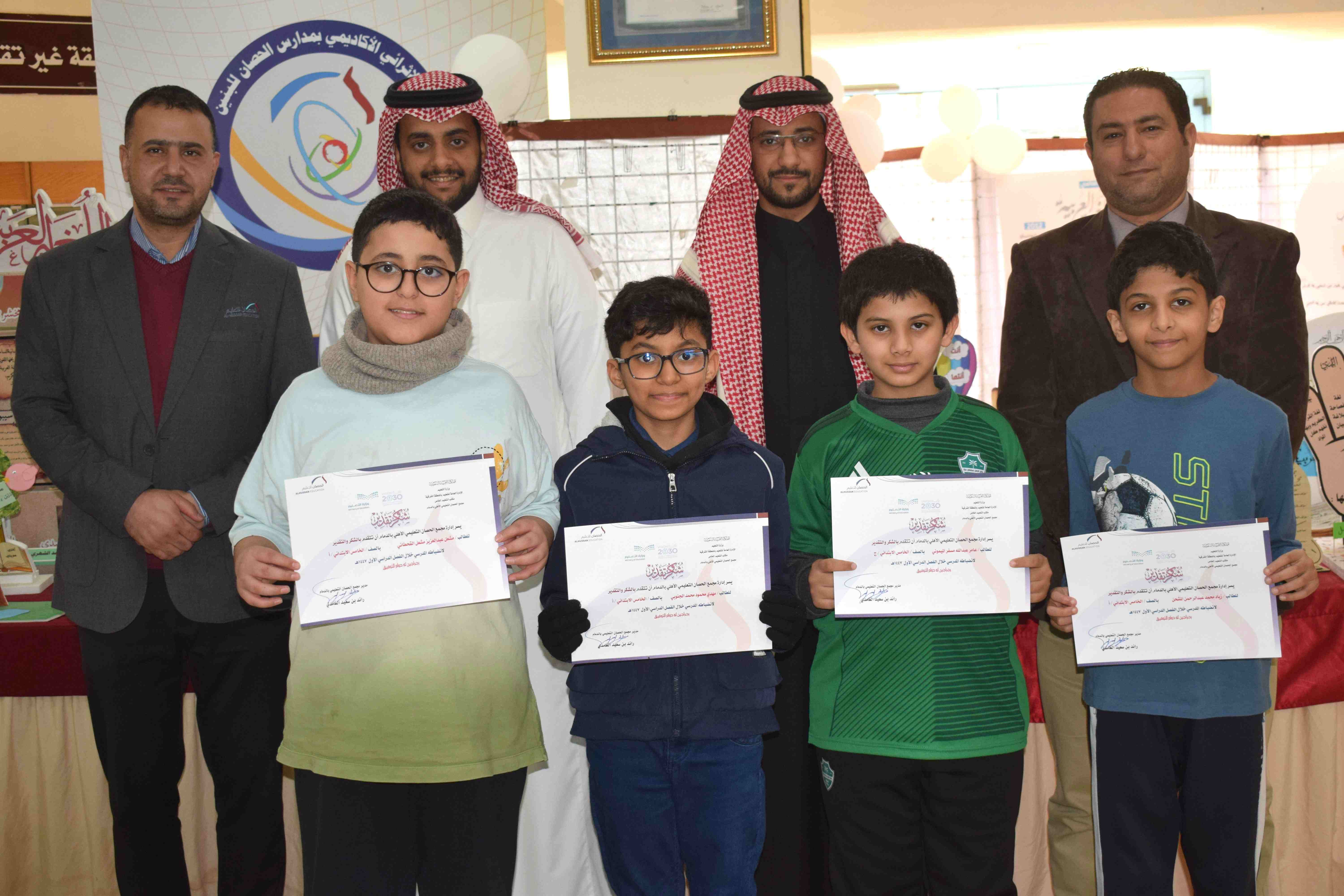 انطلاقاً من رؤية المدرسة في بناء جيل واعد يجمع بين العلم والأدب، وفي إطار تعزيز القيم الإيجابية وتحفيز الطلاب على الالتزام بالأنظمة المدرسية، قام قسم التوجيه والإرشاد الطلابي بمجمع الحصان التعليمي للبنين بالدمام بتكريم الطلاب أصحاب الانضباط المدرسي والخلق الرفيع خلال الفصل الدراسي الأول.