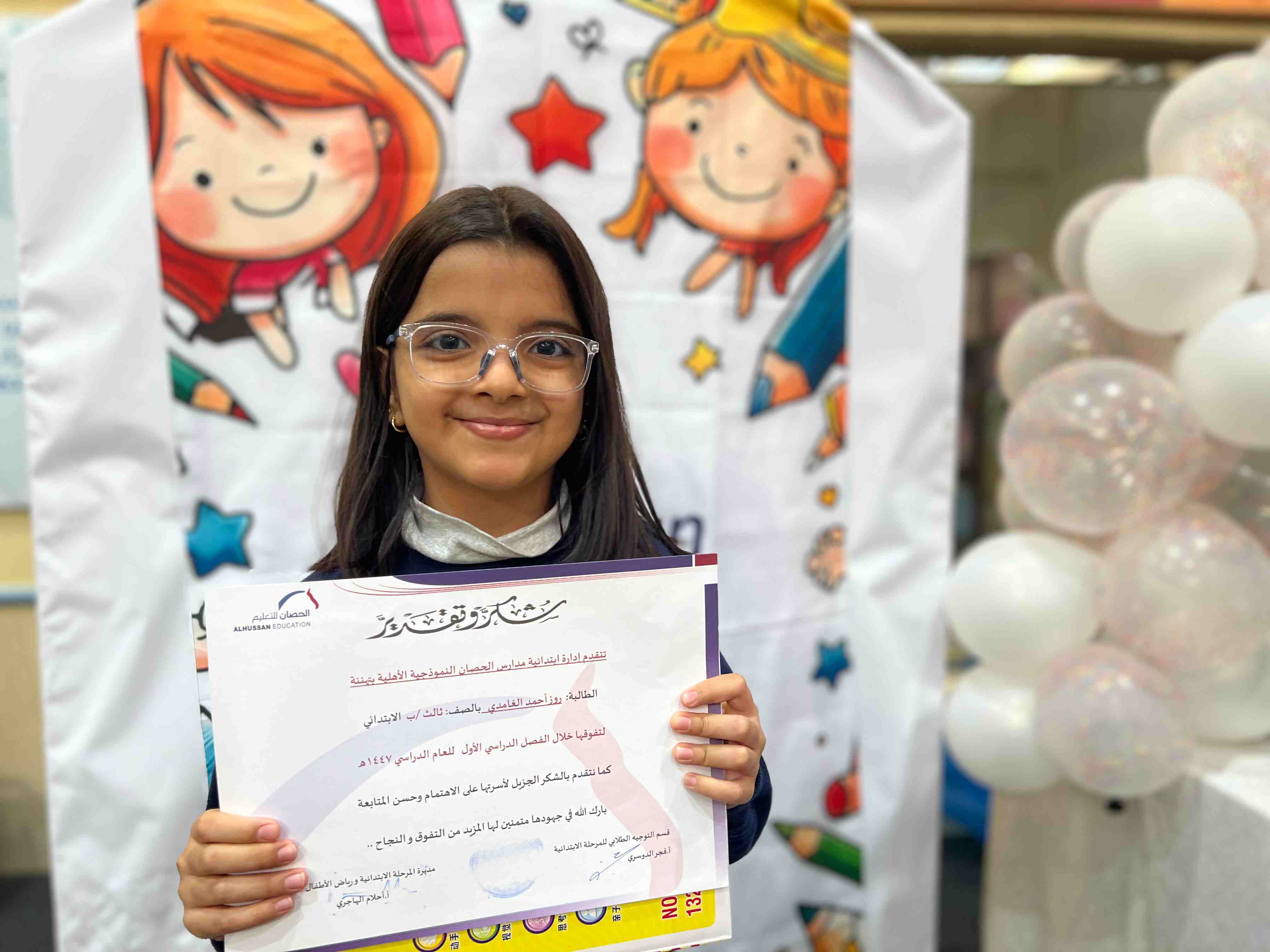 كرّمت مدرسة الحصان النموذجية الأهلية للبنات بالدمام طلاب وطالبات المرحلة الابتدائية (الصفوف الأولية) المتميزين، الذين أثبتوا أن الاجتهاد والطموح هما طريق النجاح منذ الصغر.